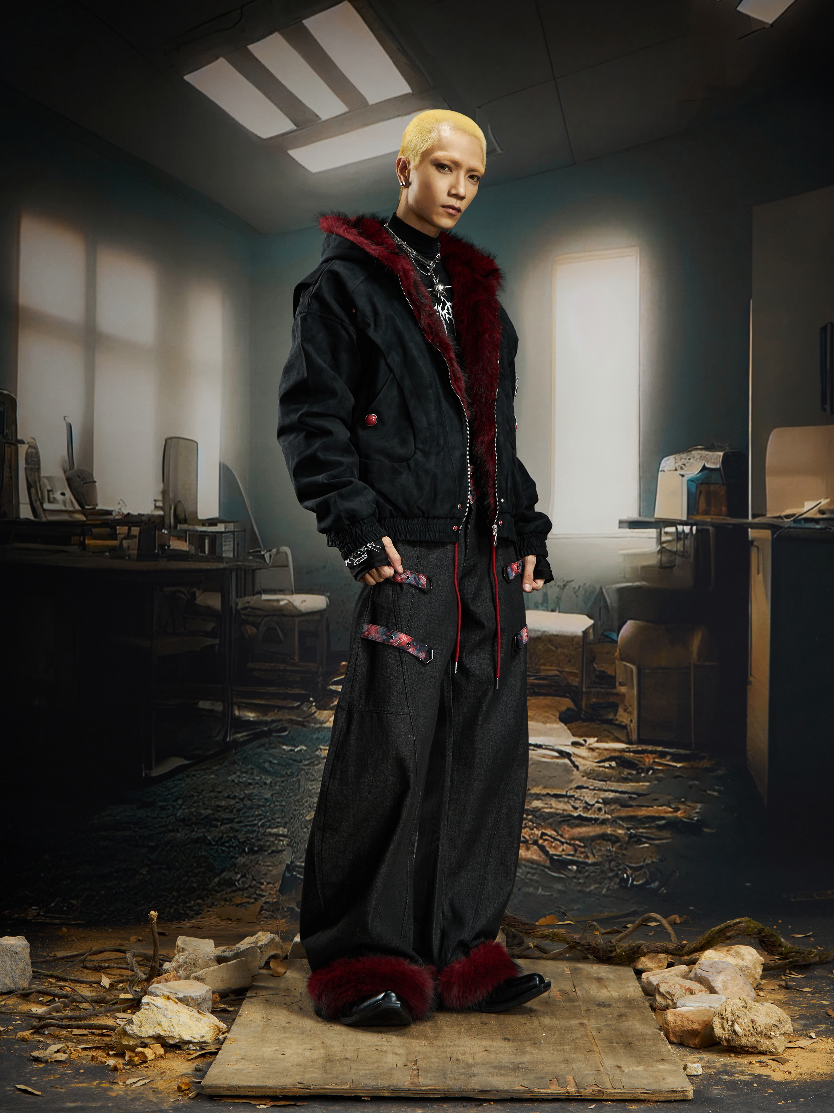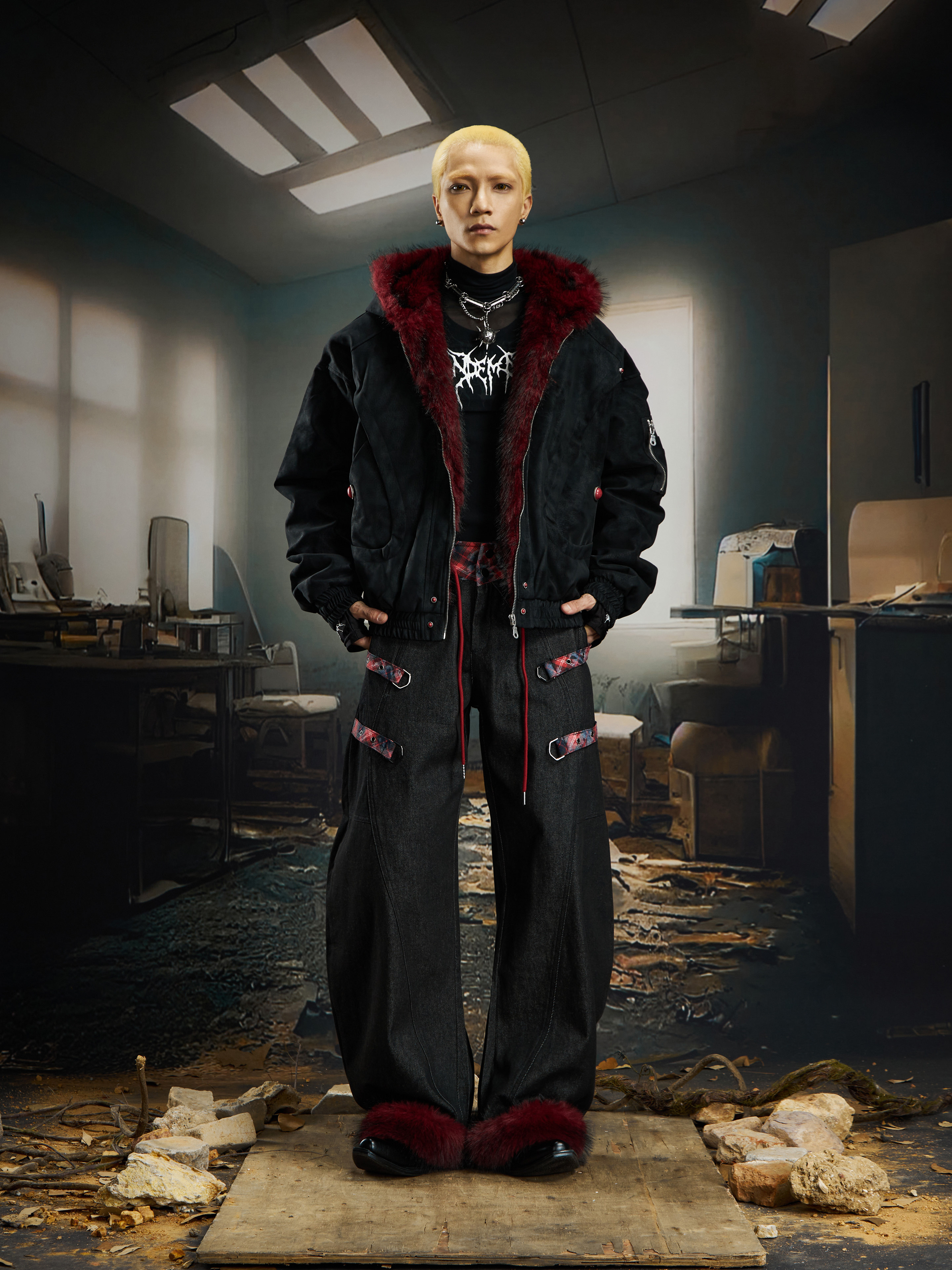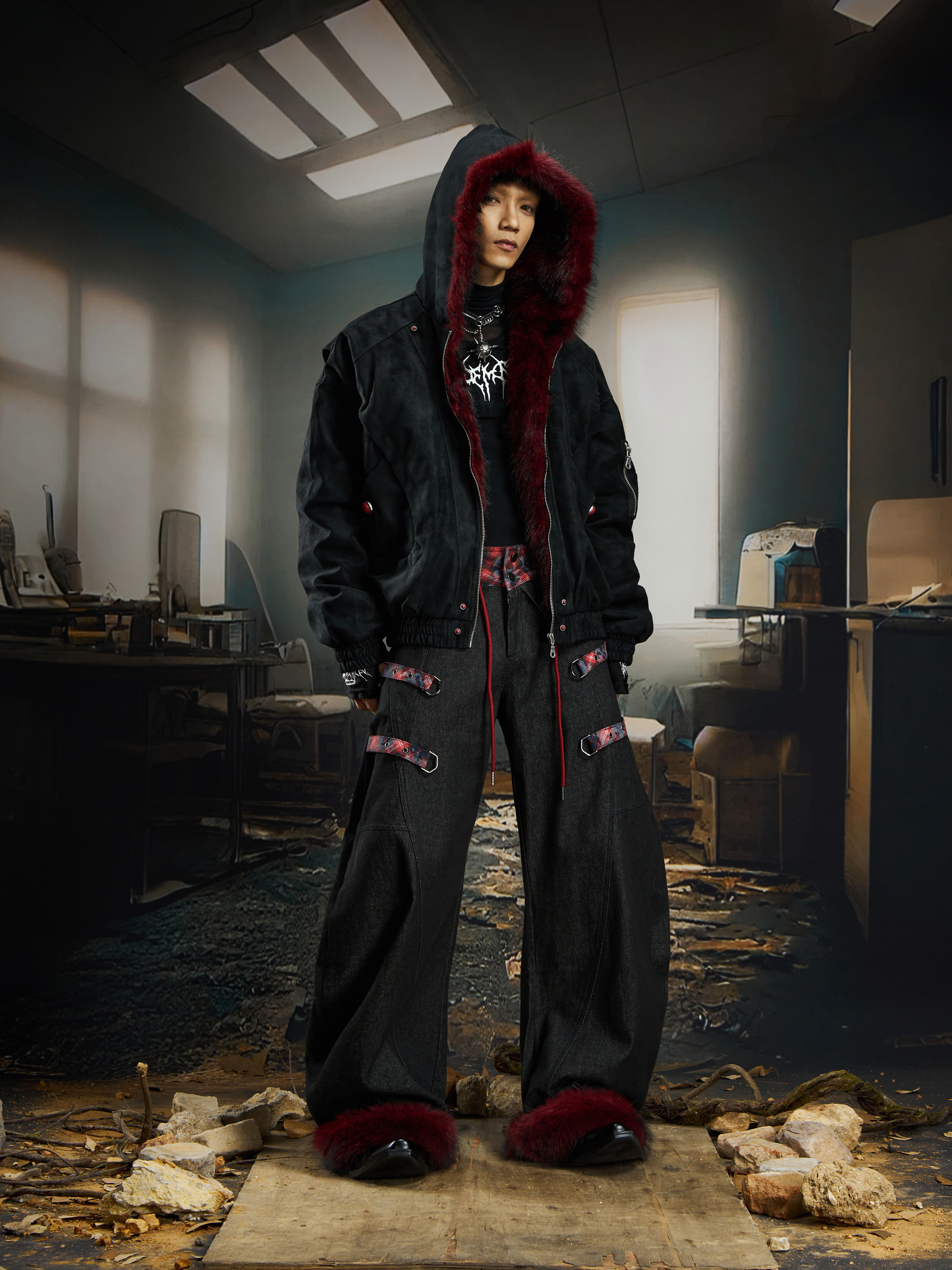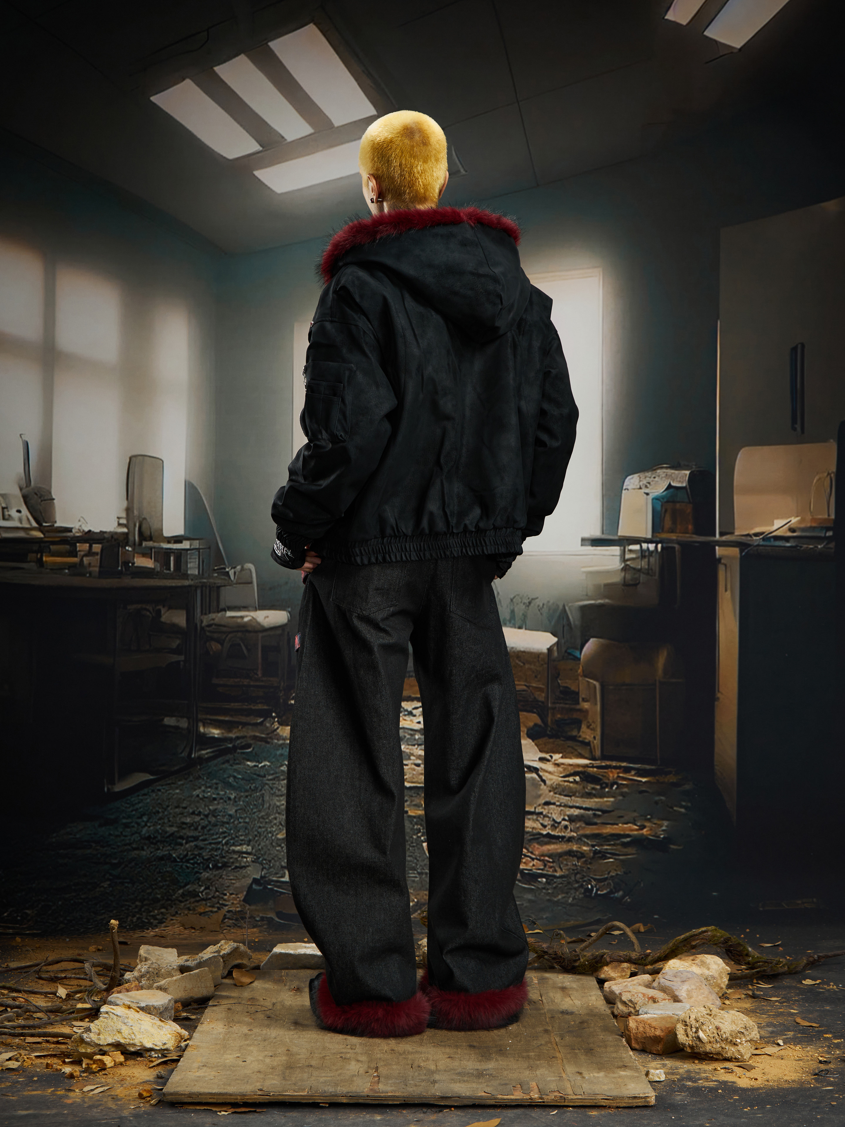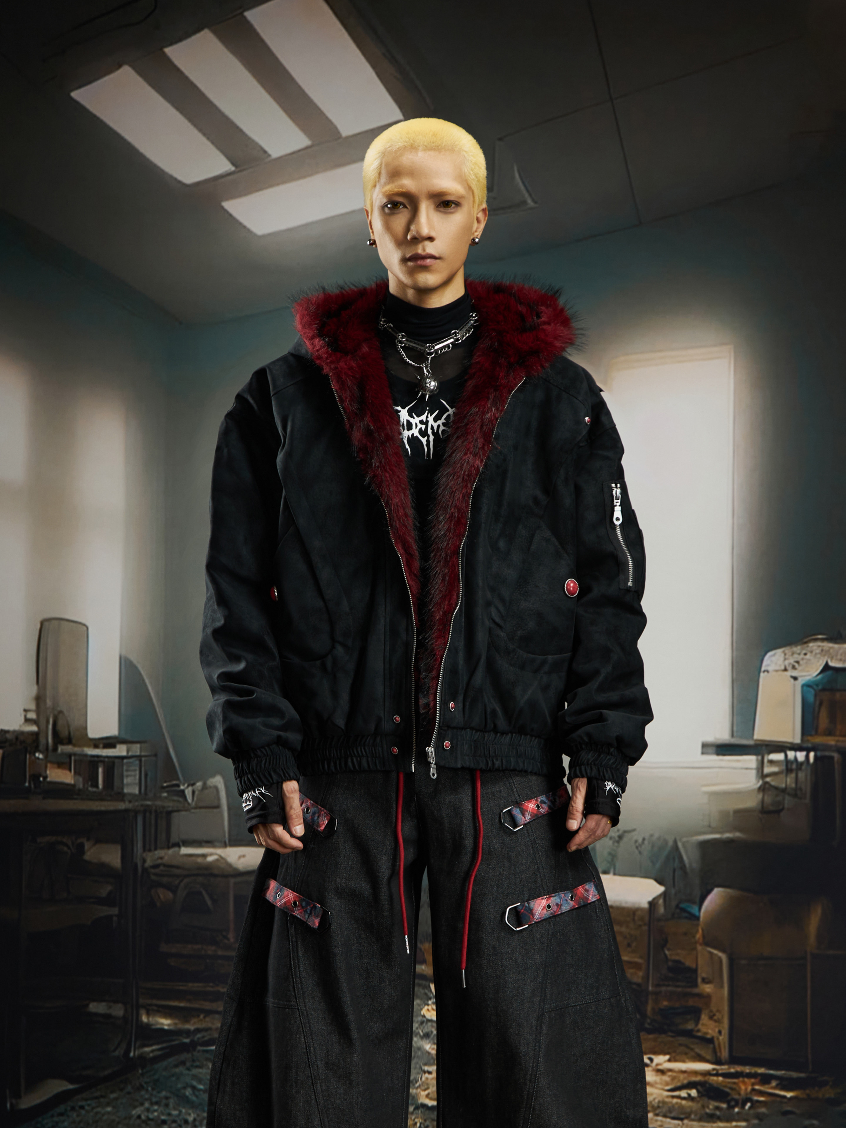 No Man's Land Original Red Mountain Eagle Texture Pu Dark Short Loose Furry Thickened Cotton Jacket