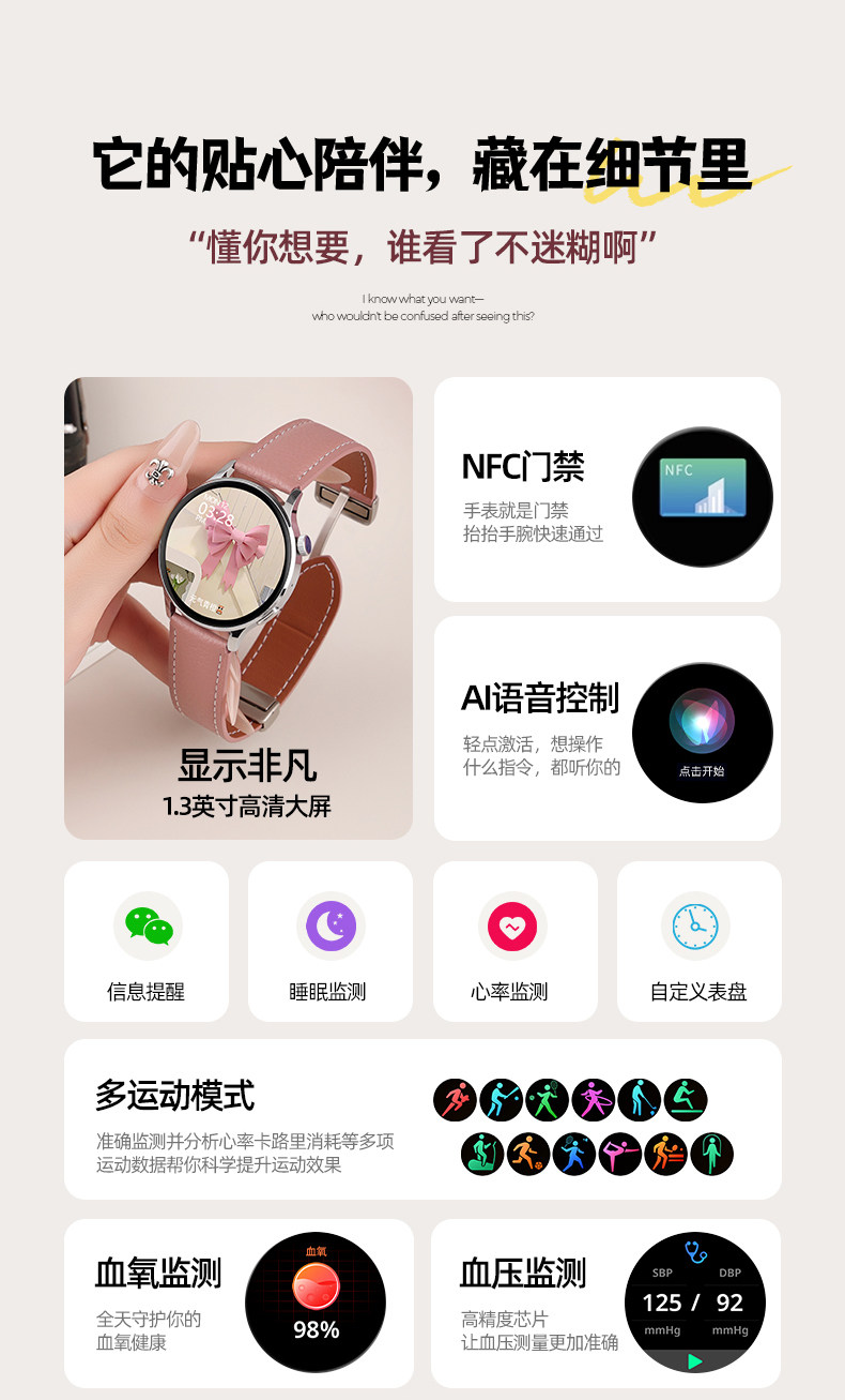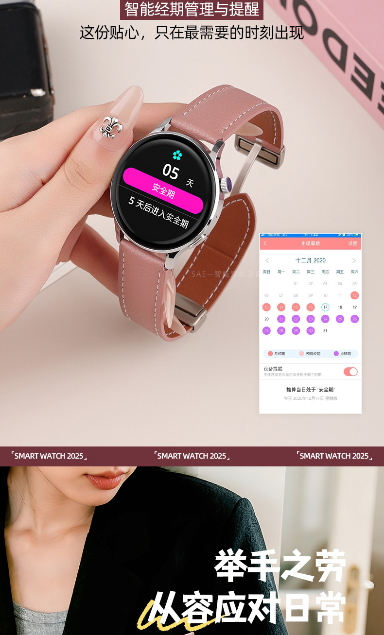 Smart Watch for Women 2025 Bluetooth Calling Multi-Function Nfc Health Payment Lychee Leather Magnetic Sports Bracelet 8