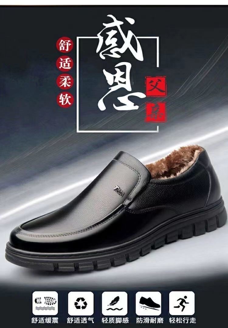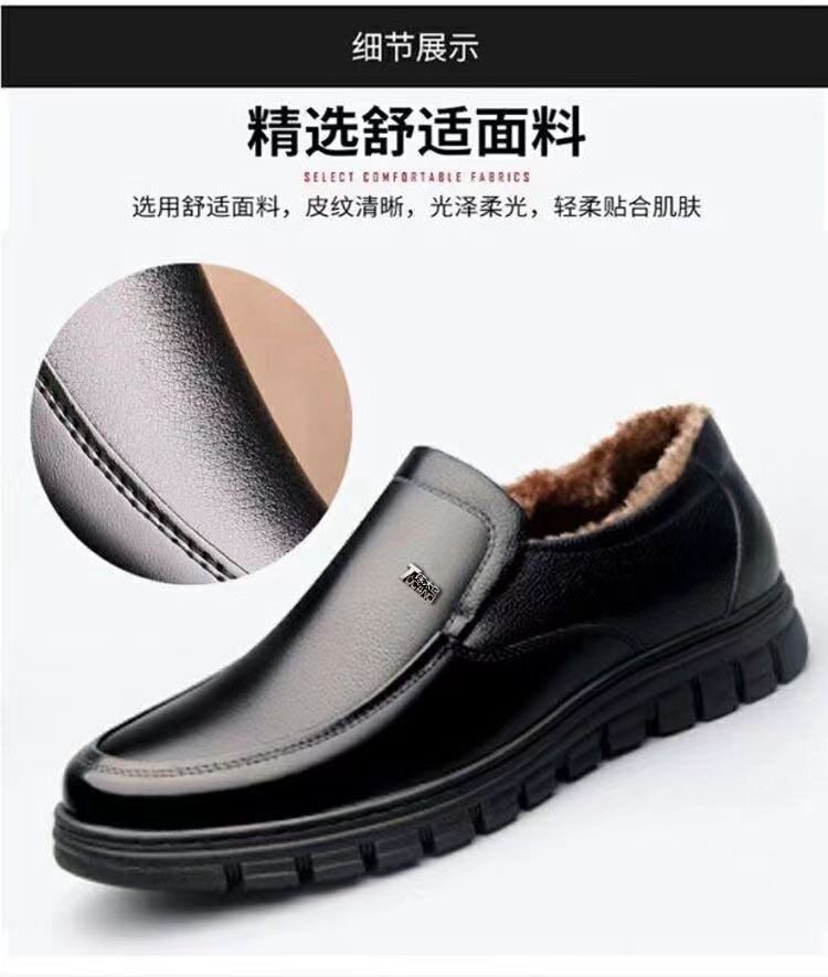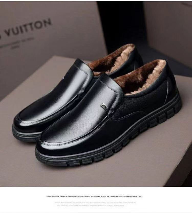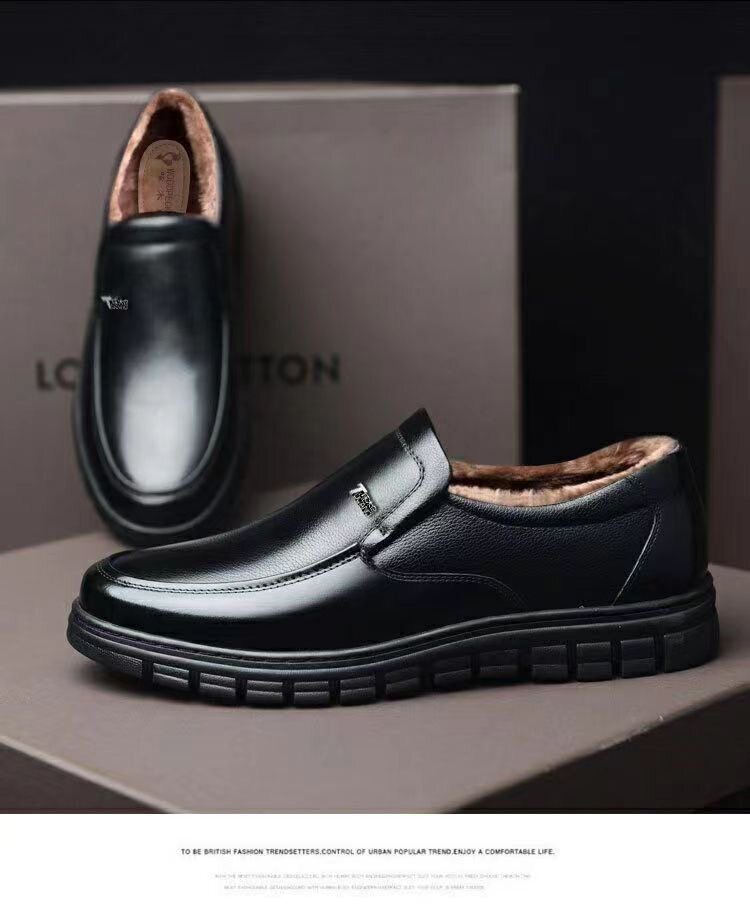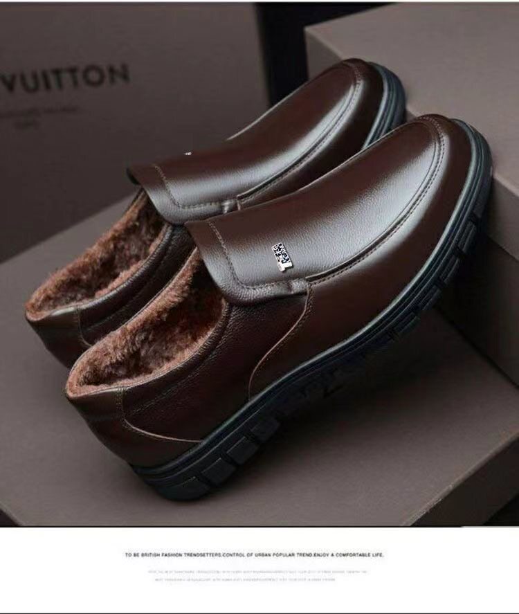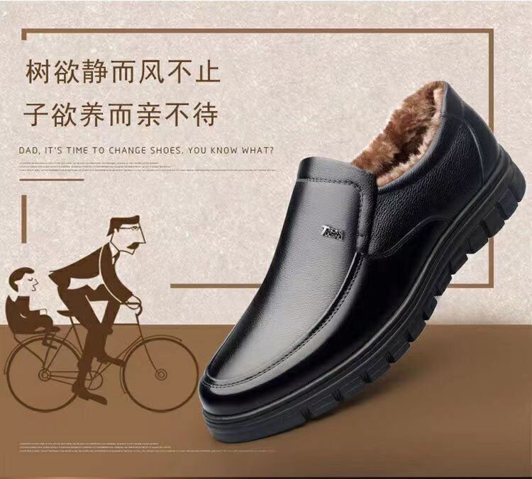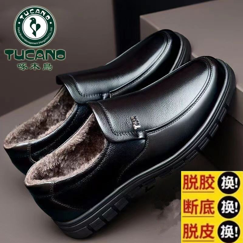 Woodpecker Men's Shoes Genuine Leather 2025 Winter New Style Fleece-Lined Warm Cotton Shoes Men's Soft-Soled Non-Slip Cotton Leather Shoes for Dad