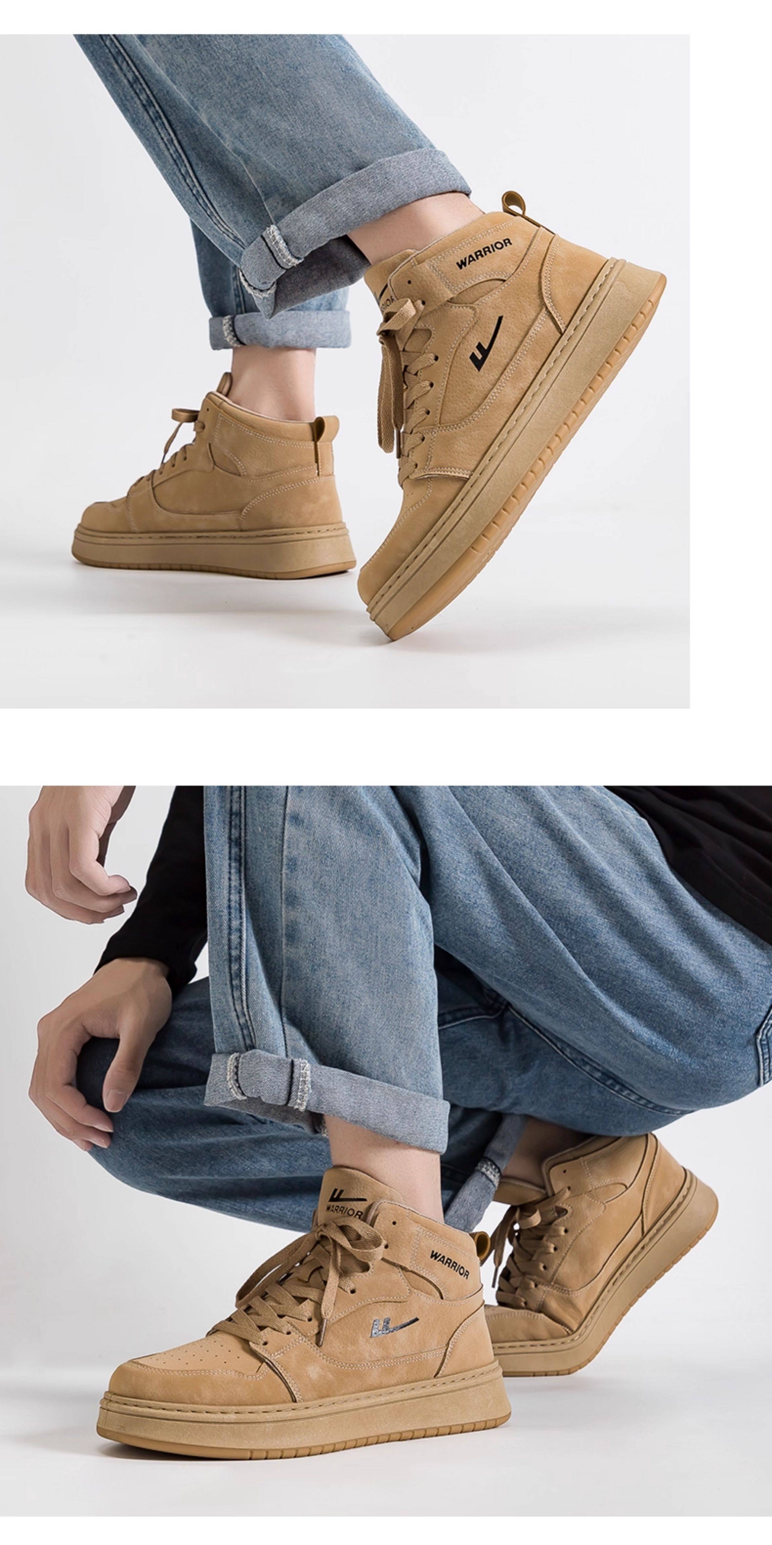 Pull-Back High-Top Shoes for Men, 2026 Winter New Style, Wheat-Colored Sports Casual Men's Shoes, Retro Fleece-Lined Popular Sneakers
