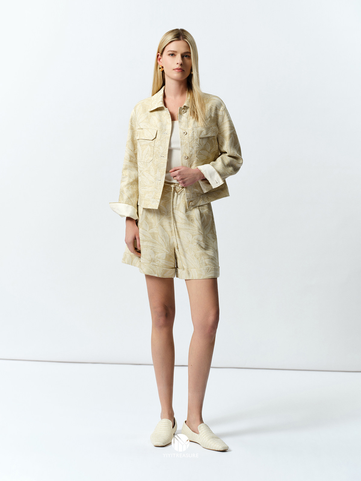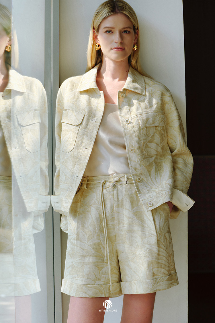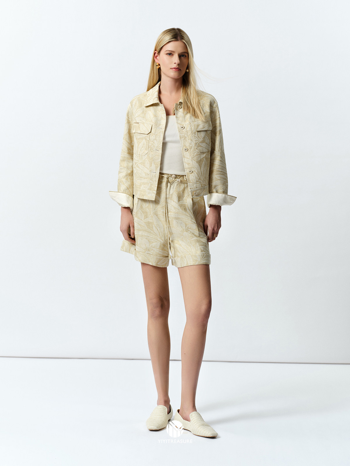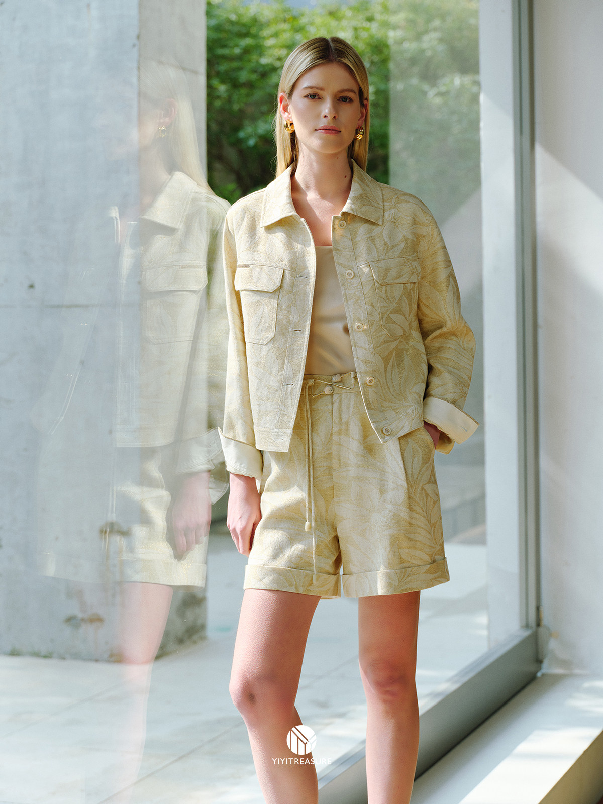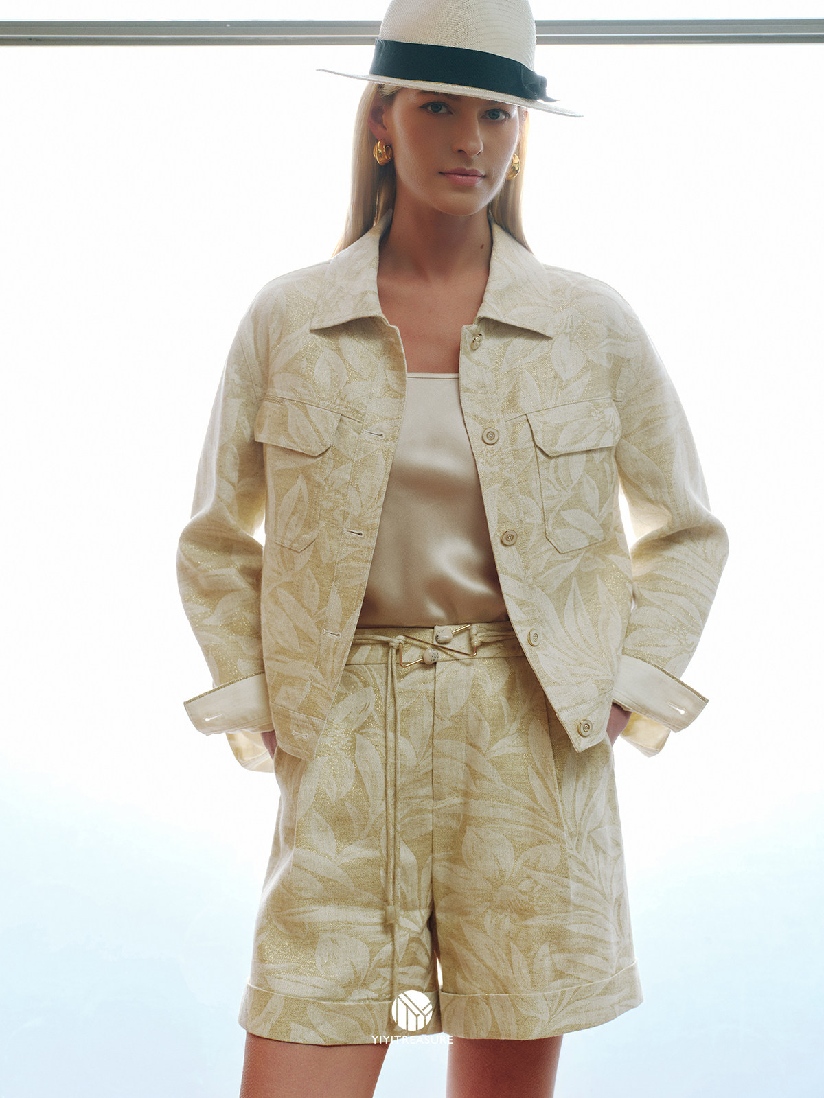 Yiyi Sicilian Sunset Old Money Vacation Style Glitter Linen Jacquard Jacket & Shorts & Skirt