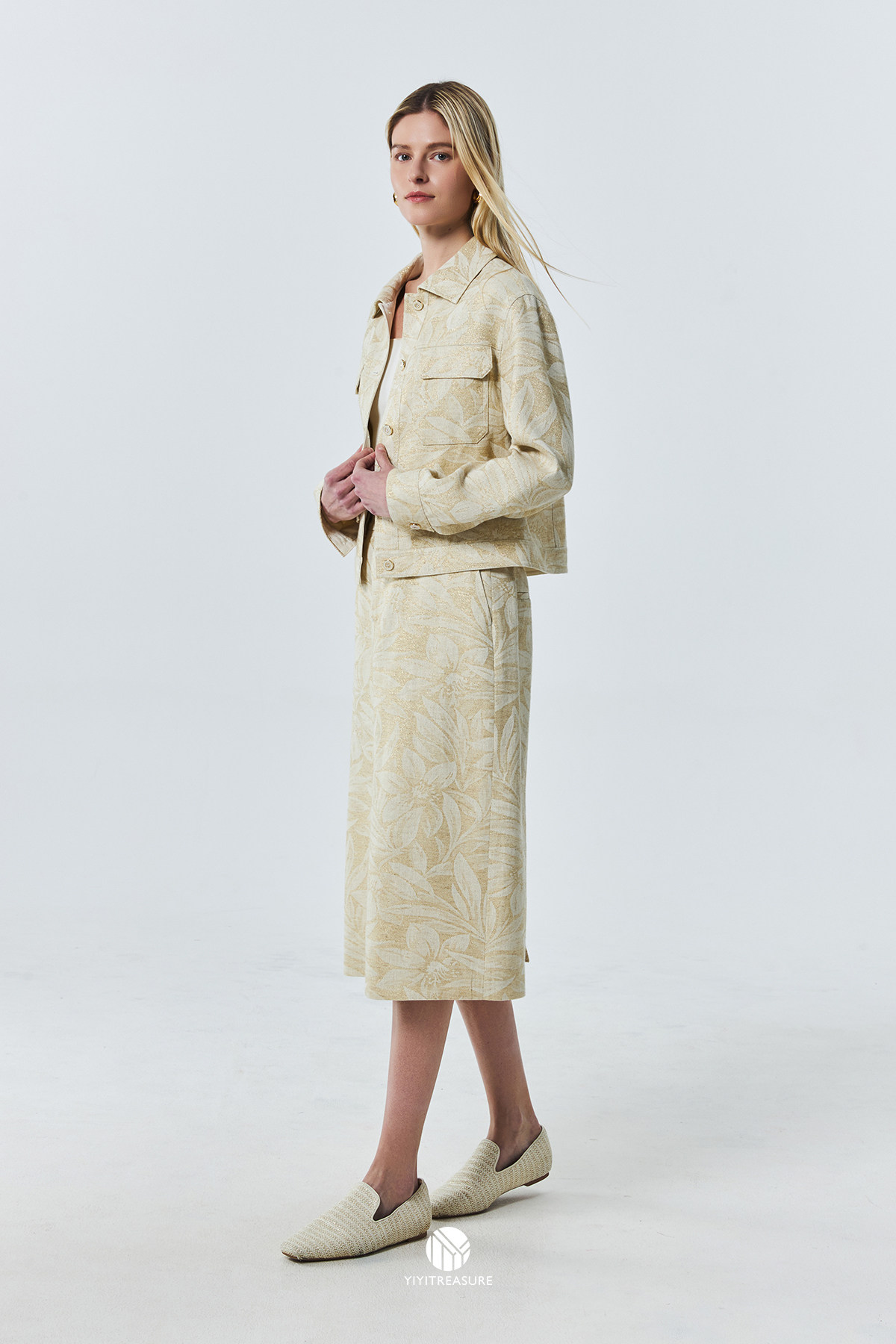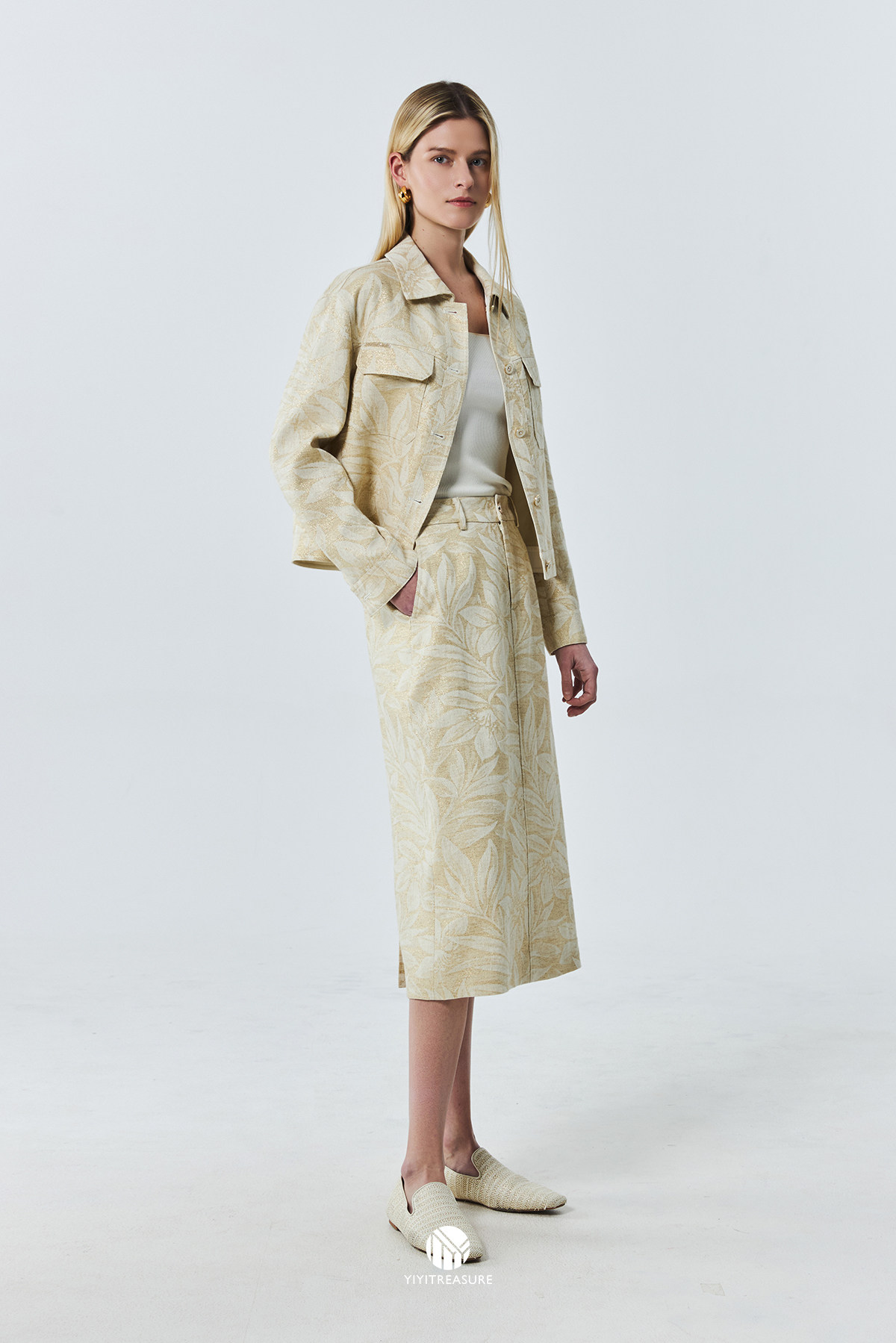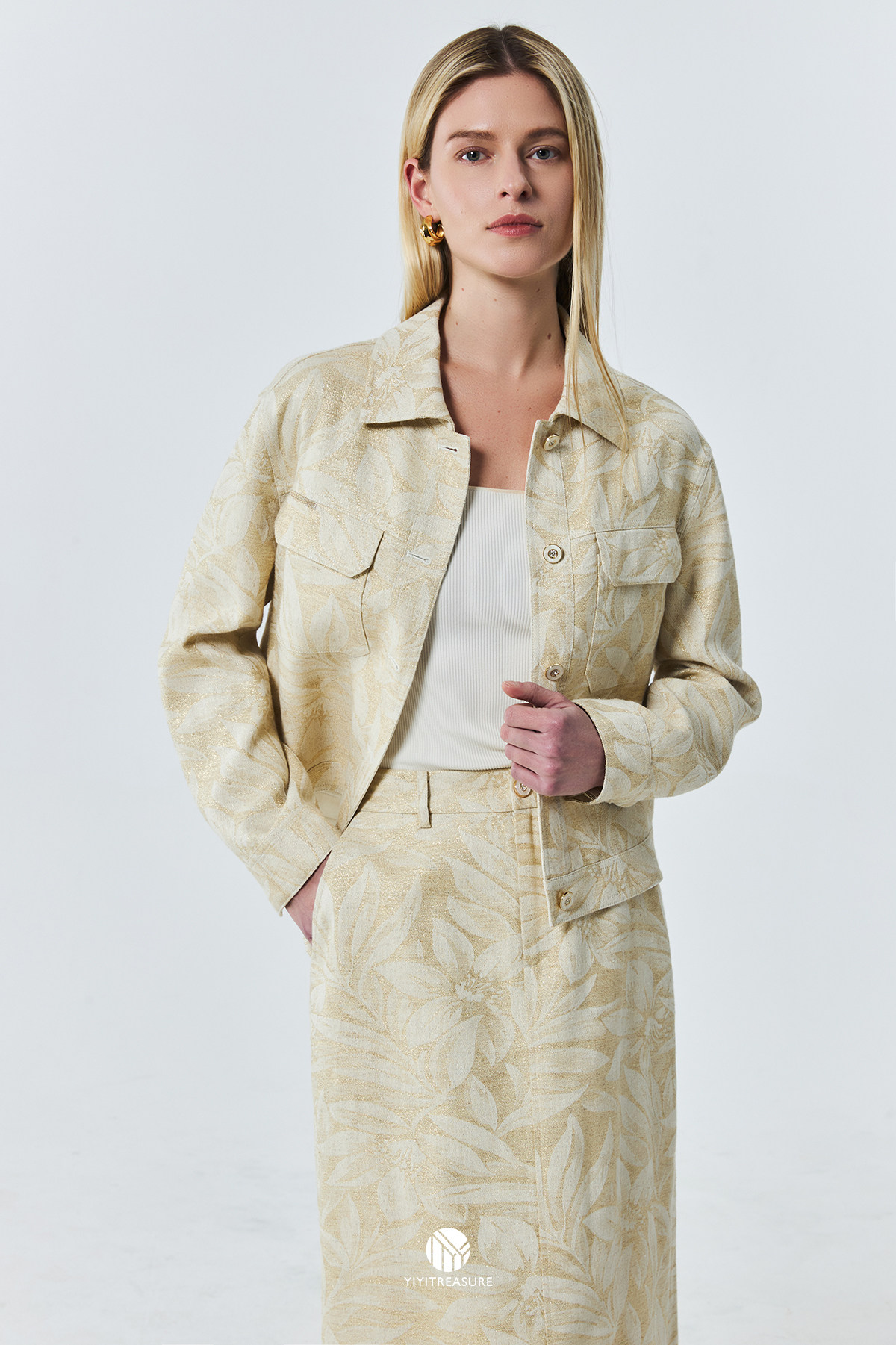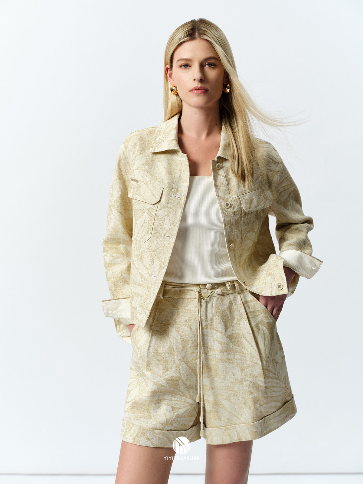 Yiyi Sicilian Sunset Old Money Vacation Style Glitter Linen Jacquard Jacket & Shorts & Skirt