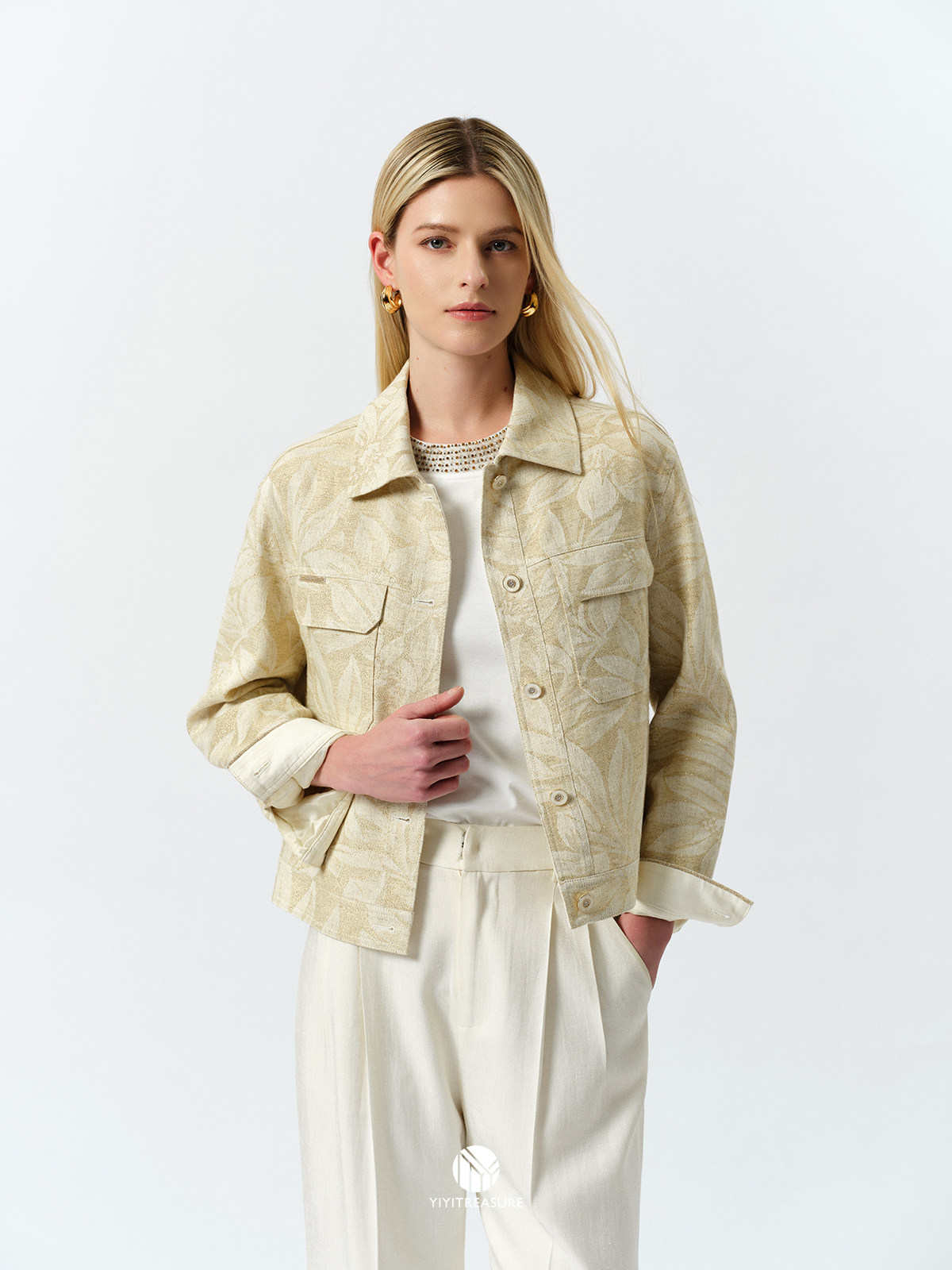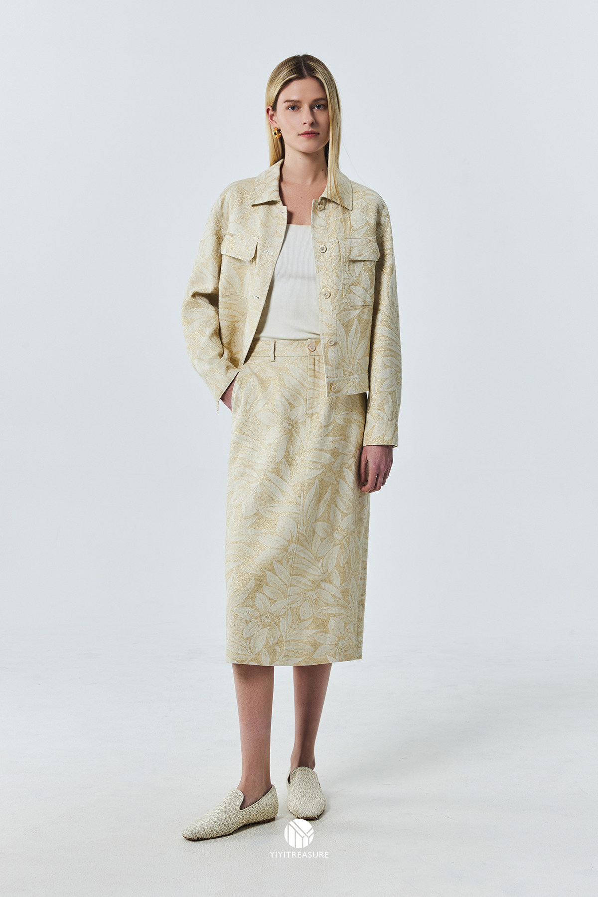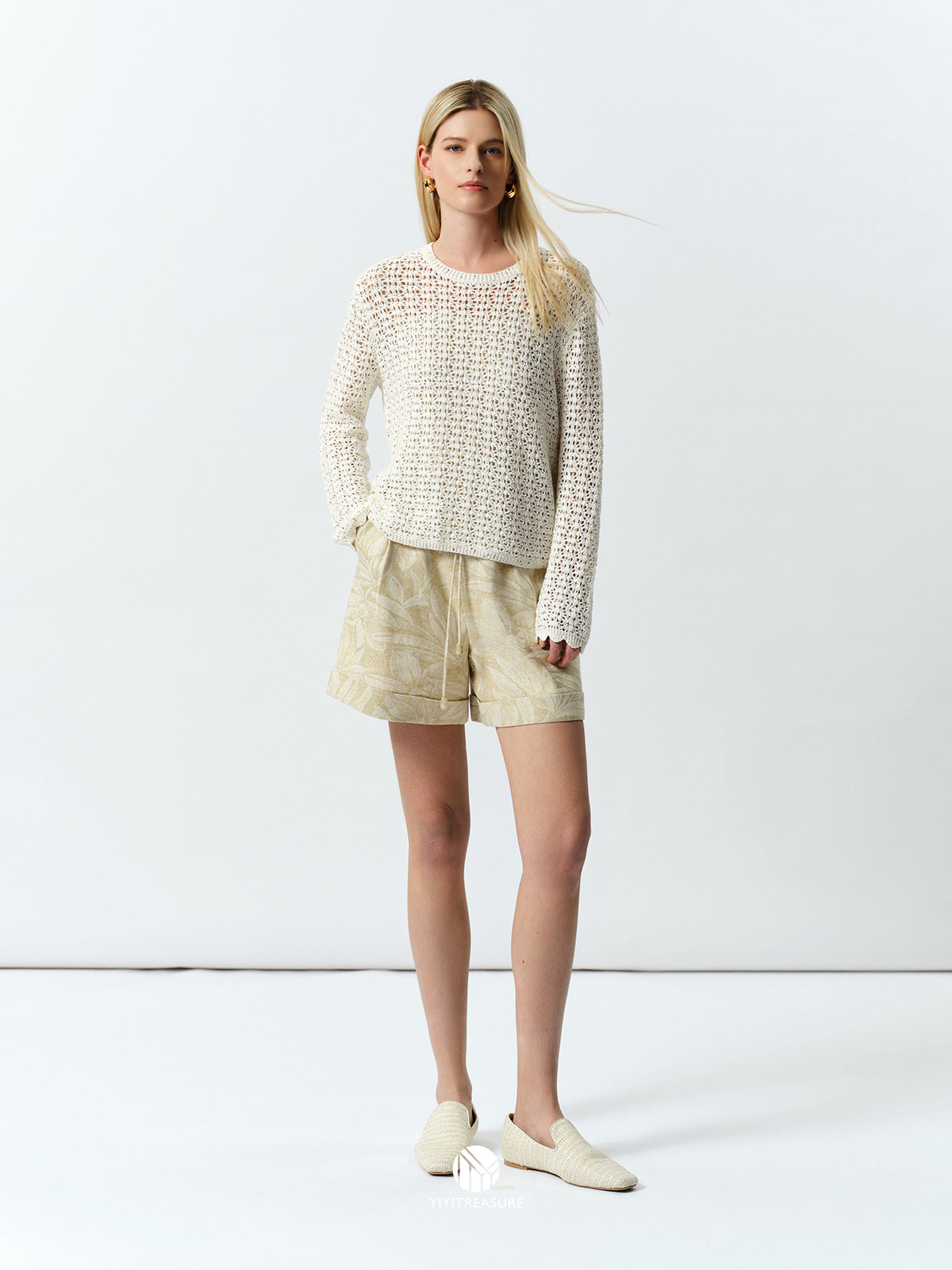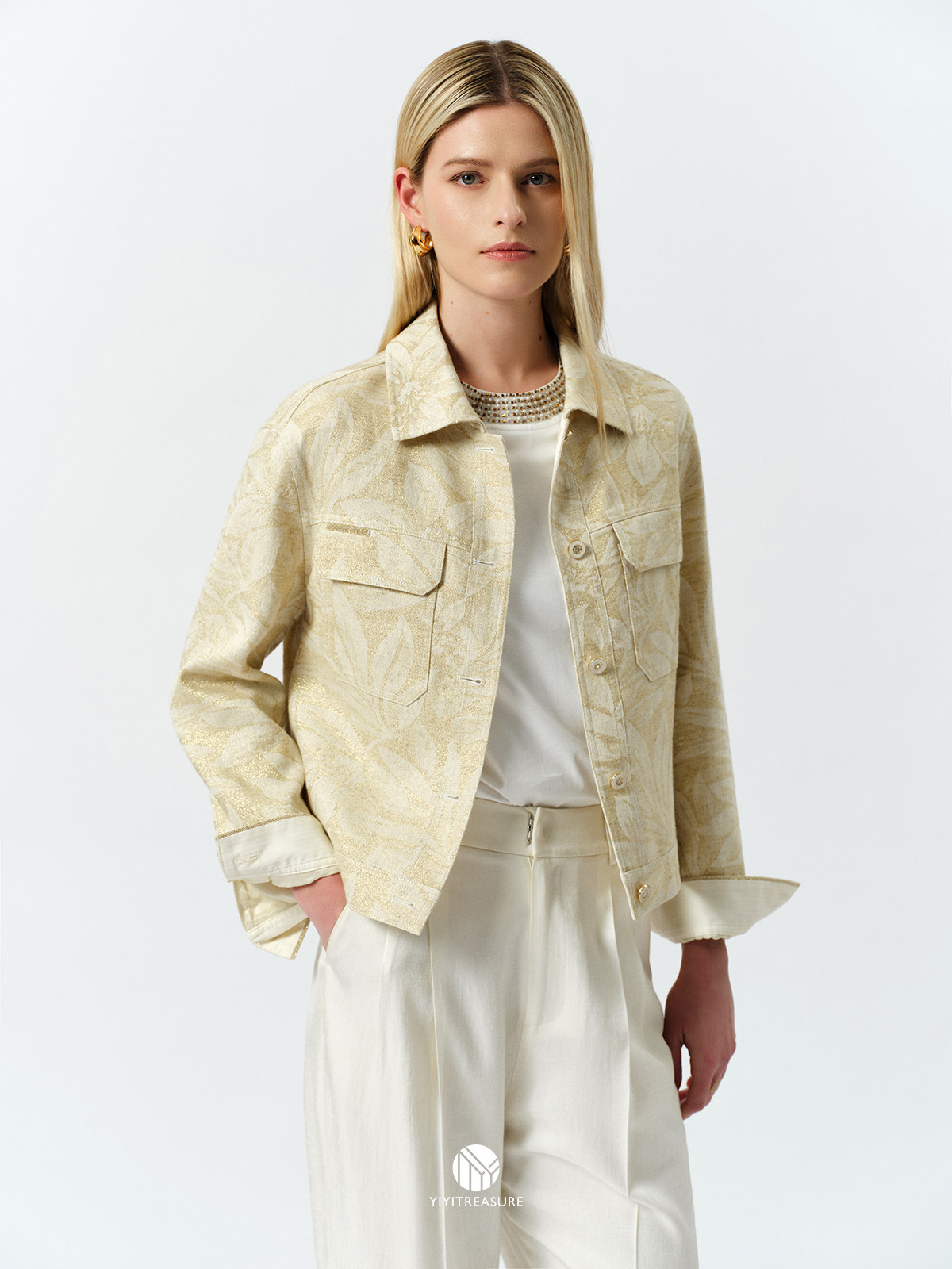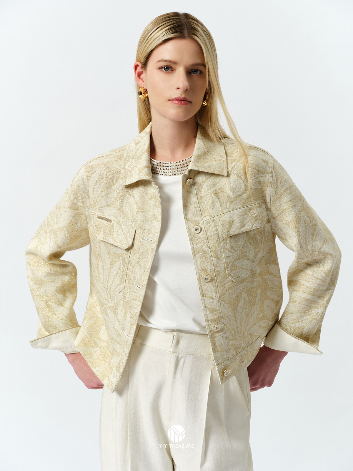 Yiyi Sicilian Sunset Old Money Vacation Style Glitter Linen Jacquard Jacket & Shorts & Skirt