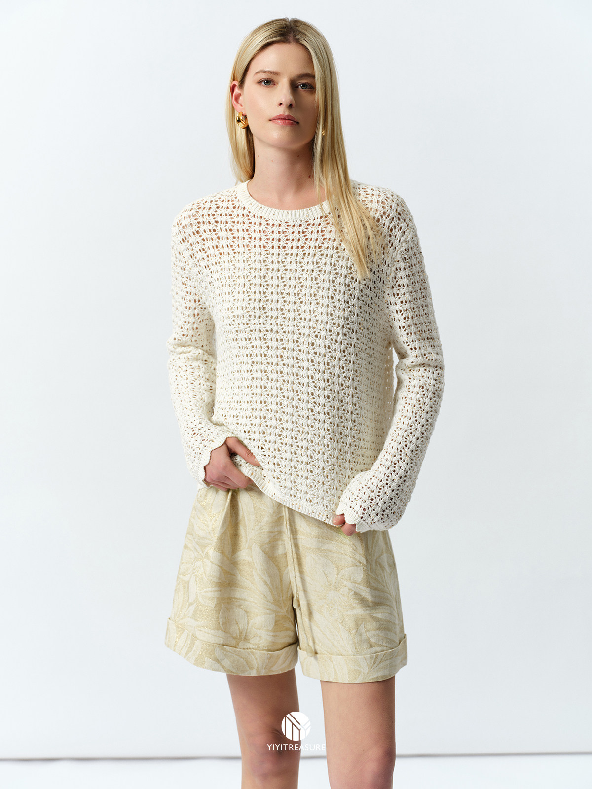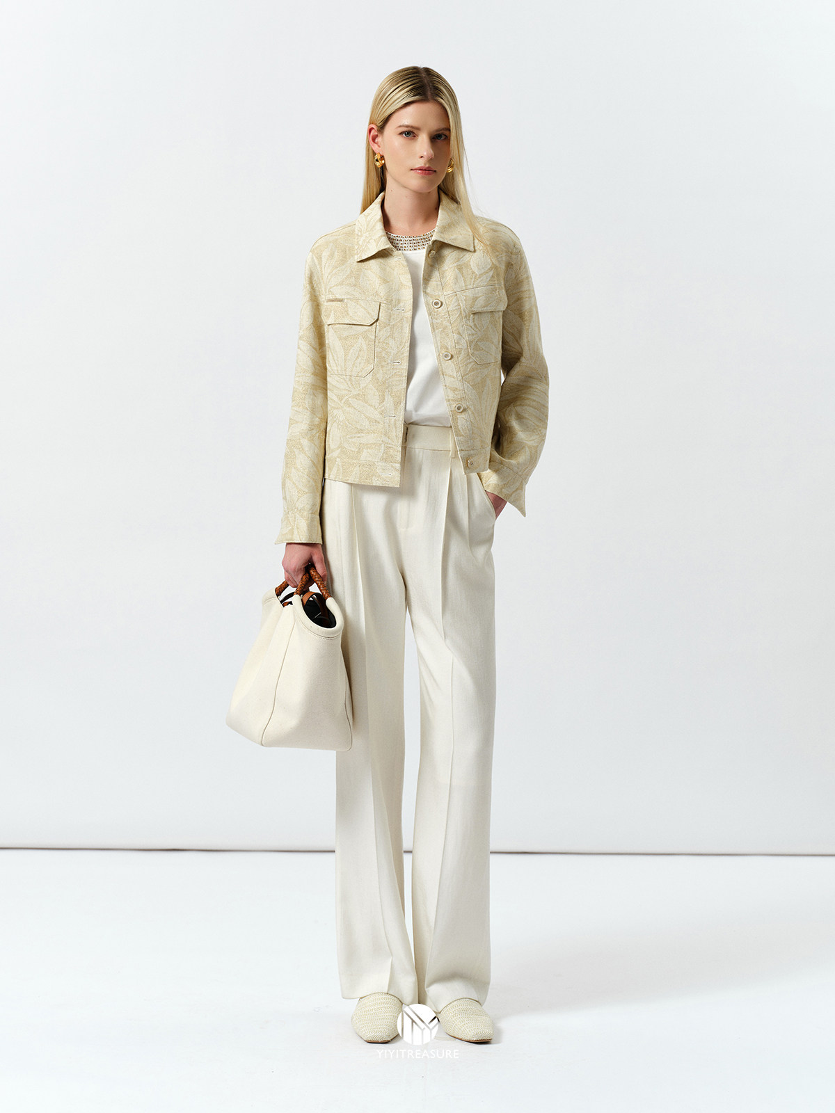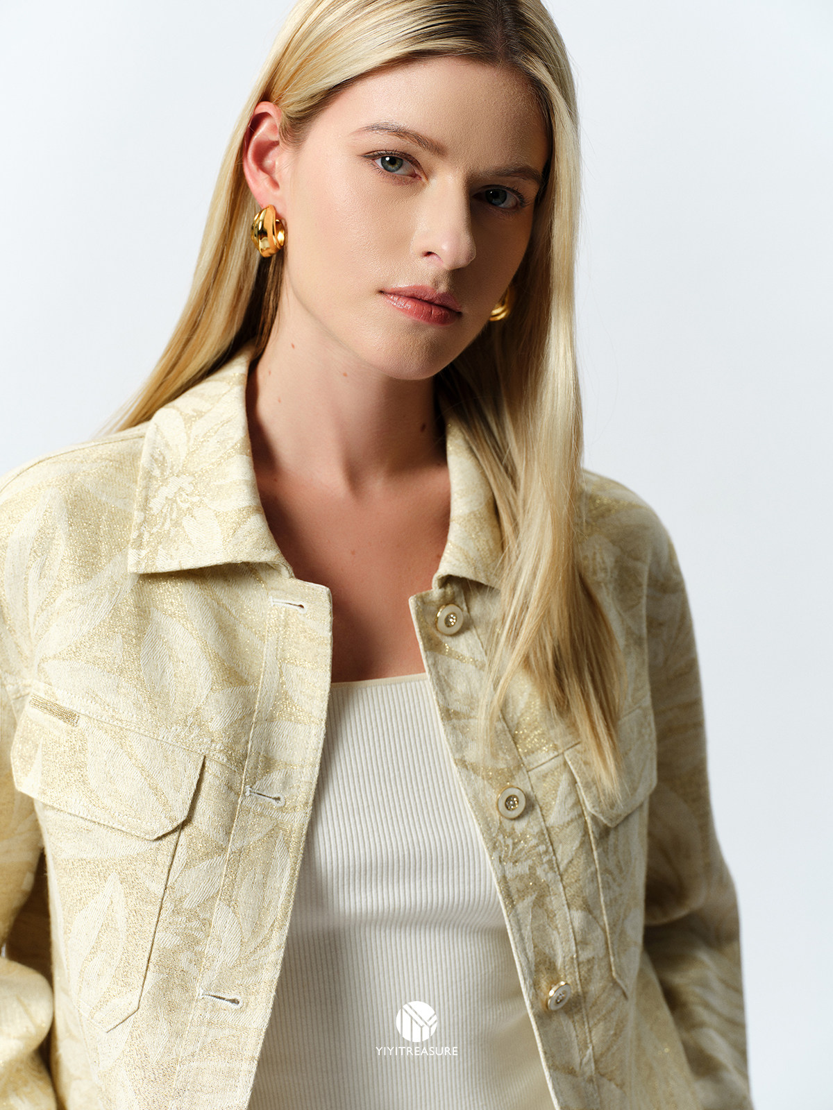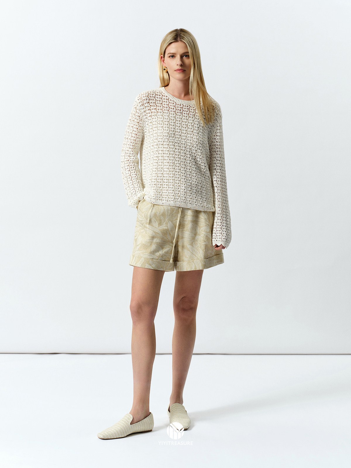 Yiyi Sicilian Sunset Old Money Vacation Style Glitter Linen Jacquard Jacket & Shorts & Skirt