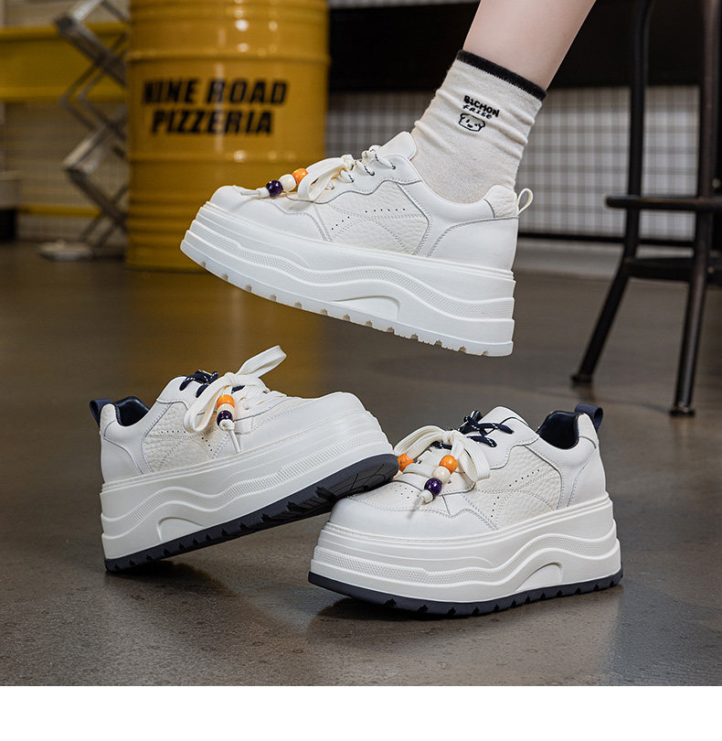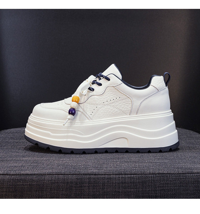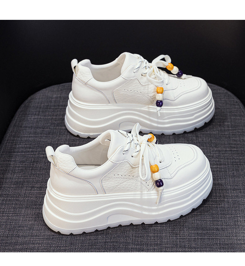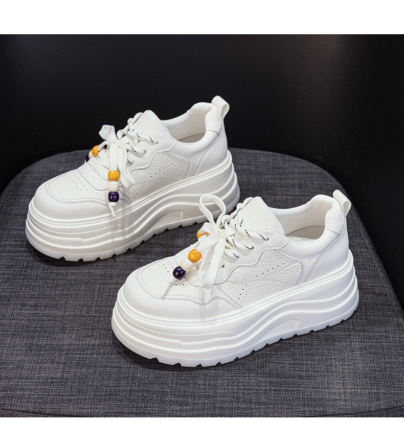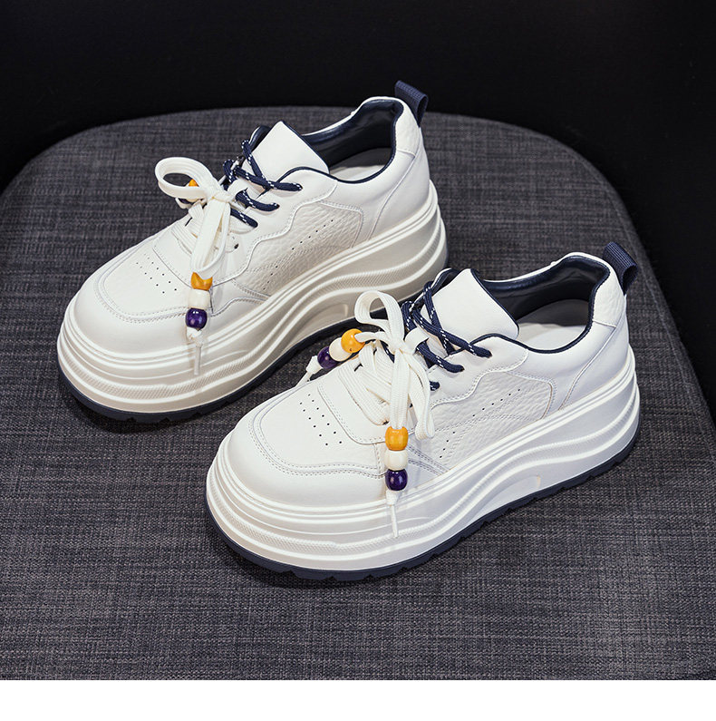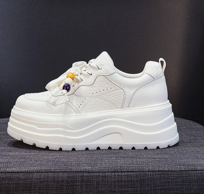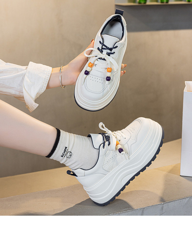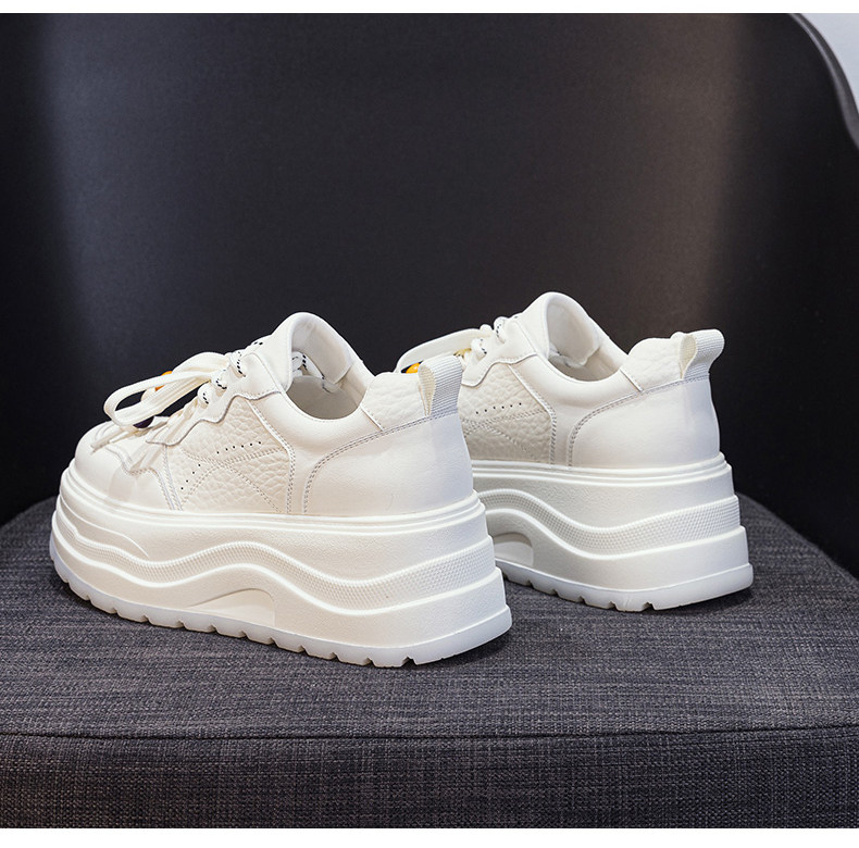 Hong Kong Genuine Leather Height-Increasing White Sneakers for Women, 2025 Autumn and Winter New Popular Style, Makes Feet Look Smaller, Thick-Soled Sports Casual Sneakers
