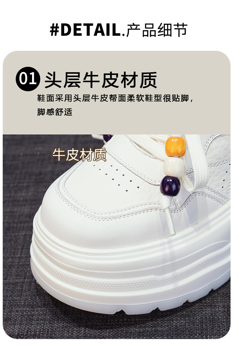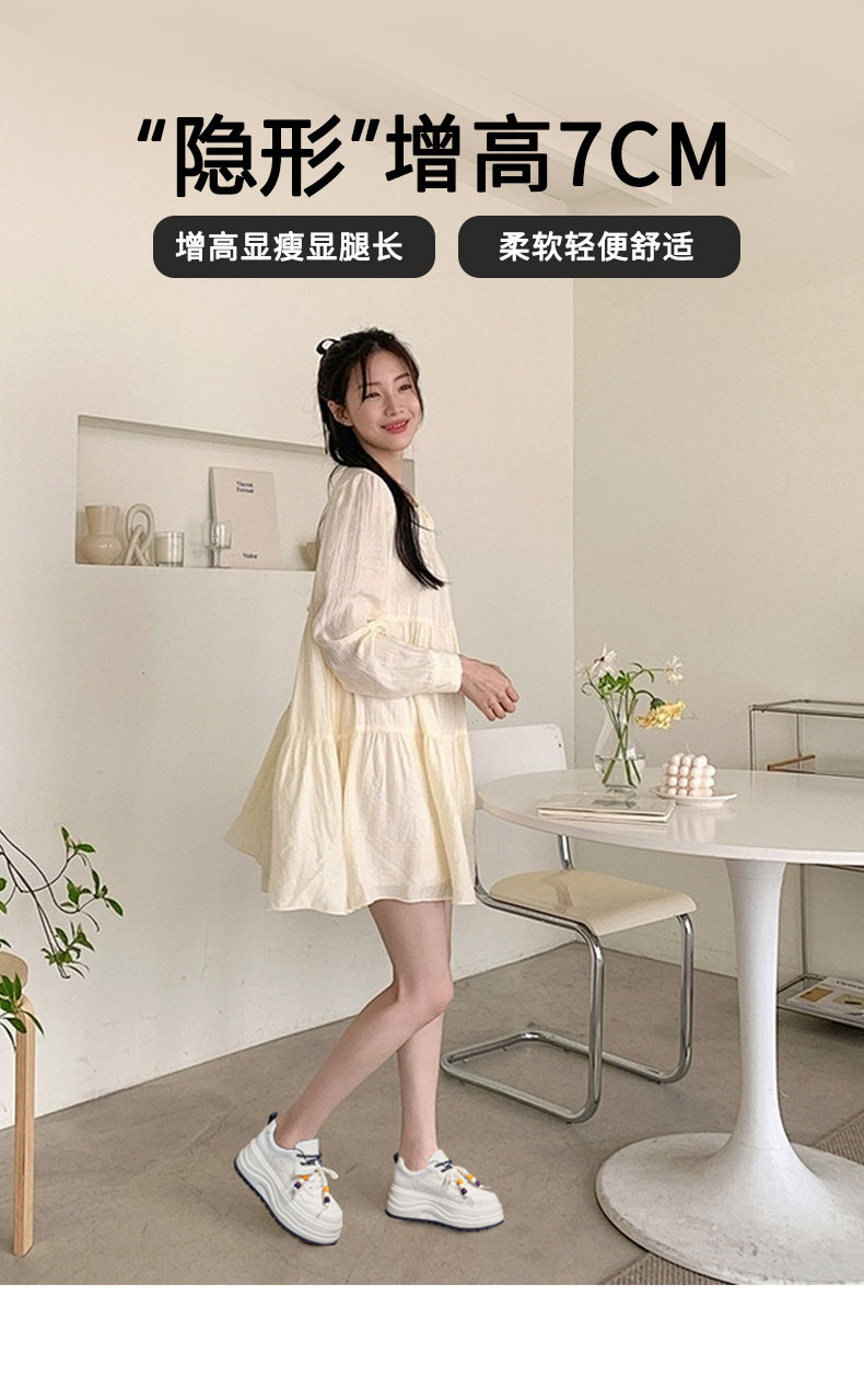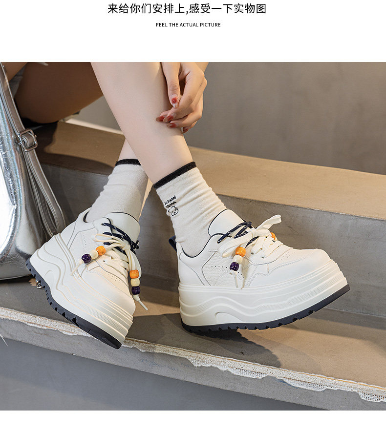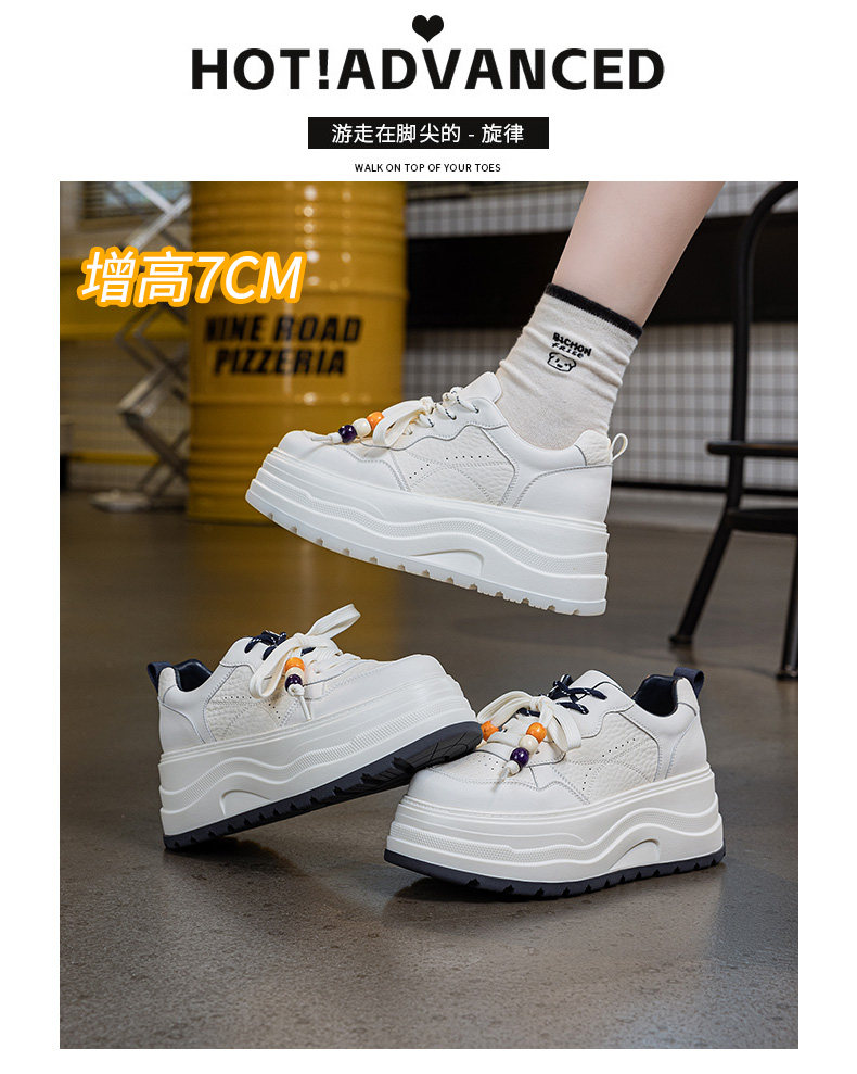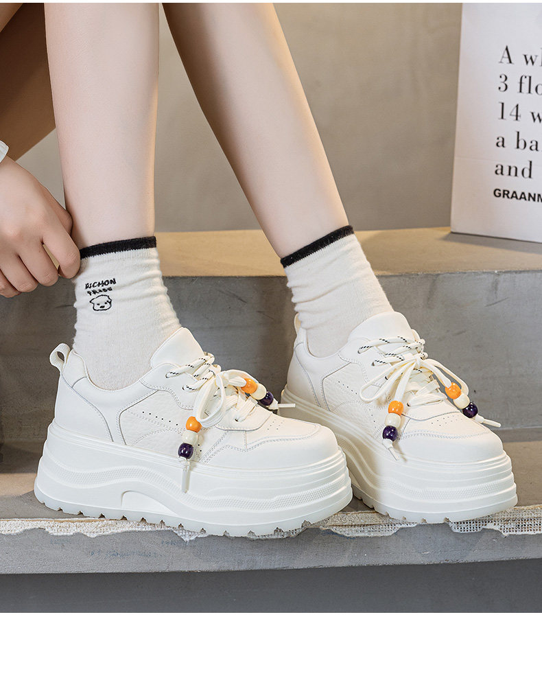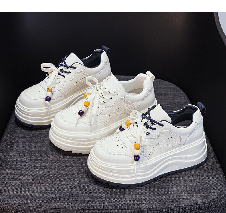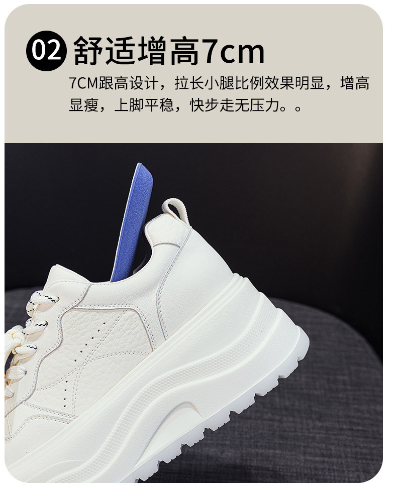 Hong Kong Genuine Leather Height-Increasing White Sneakers for Women, 2025 Autumn and Winter New Popular Style, Makes Feet Look Smaller, Thick-Soled Sports Casual Sneakers