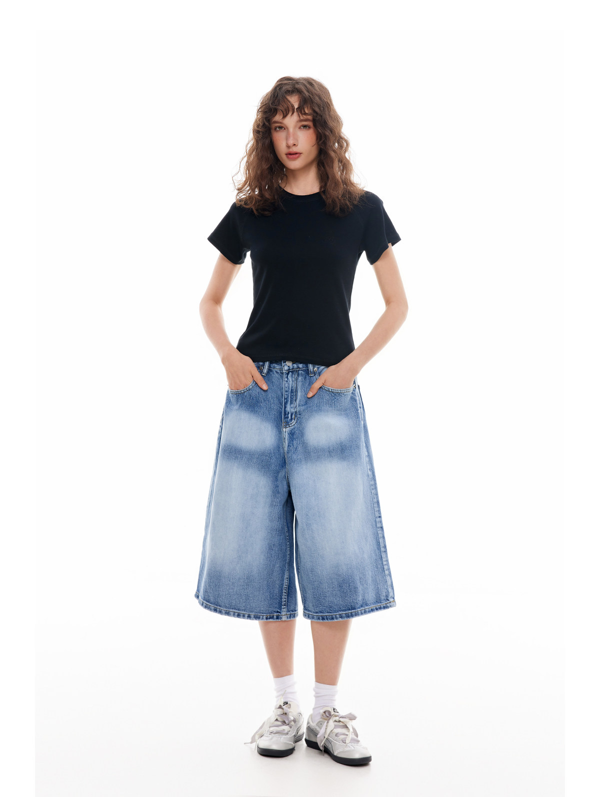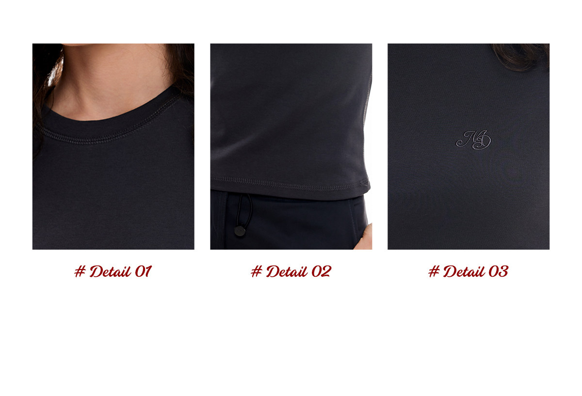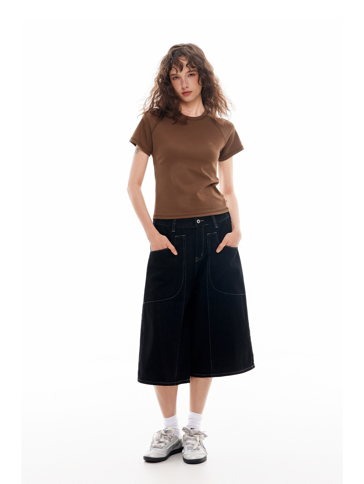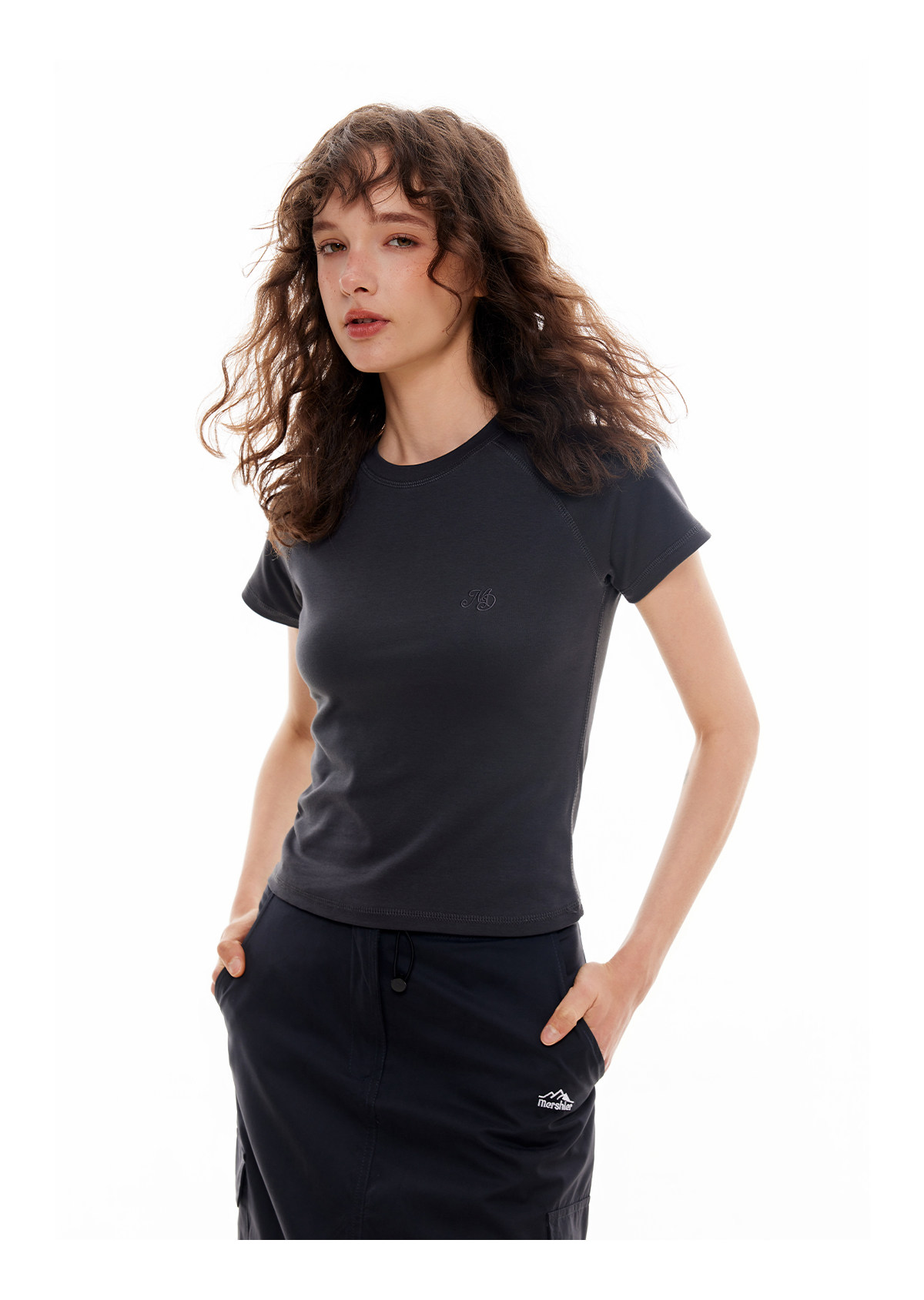 Moodberry American Retro Slim-Fit Short Shoulder T-Shirt for Women, Summer Solid Color Basic Versatile Short-Sleeve Top