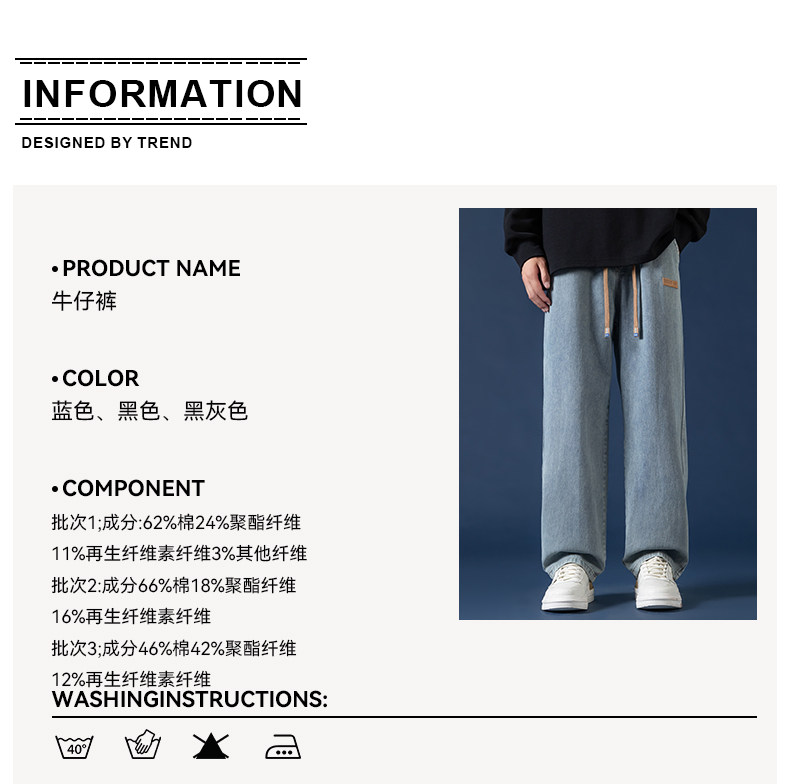 Pull-Back Jeans for Men, Autumn and Winter 2026 New Style, American Retro Straight-Leg Loose Men's Casual Fleece-Lined Trousers