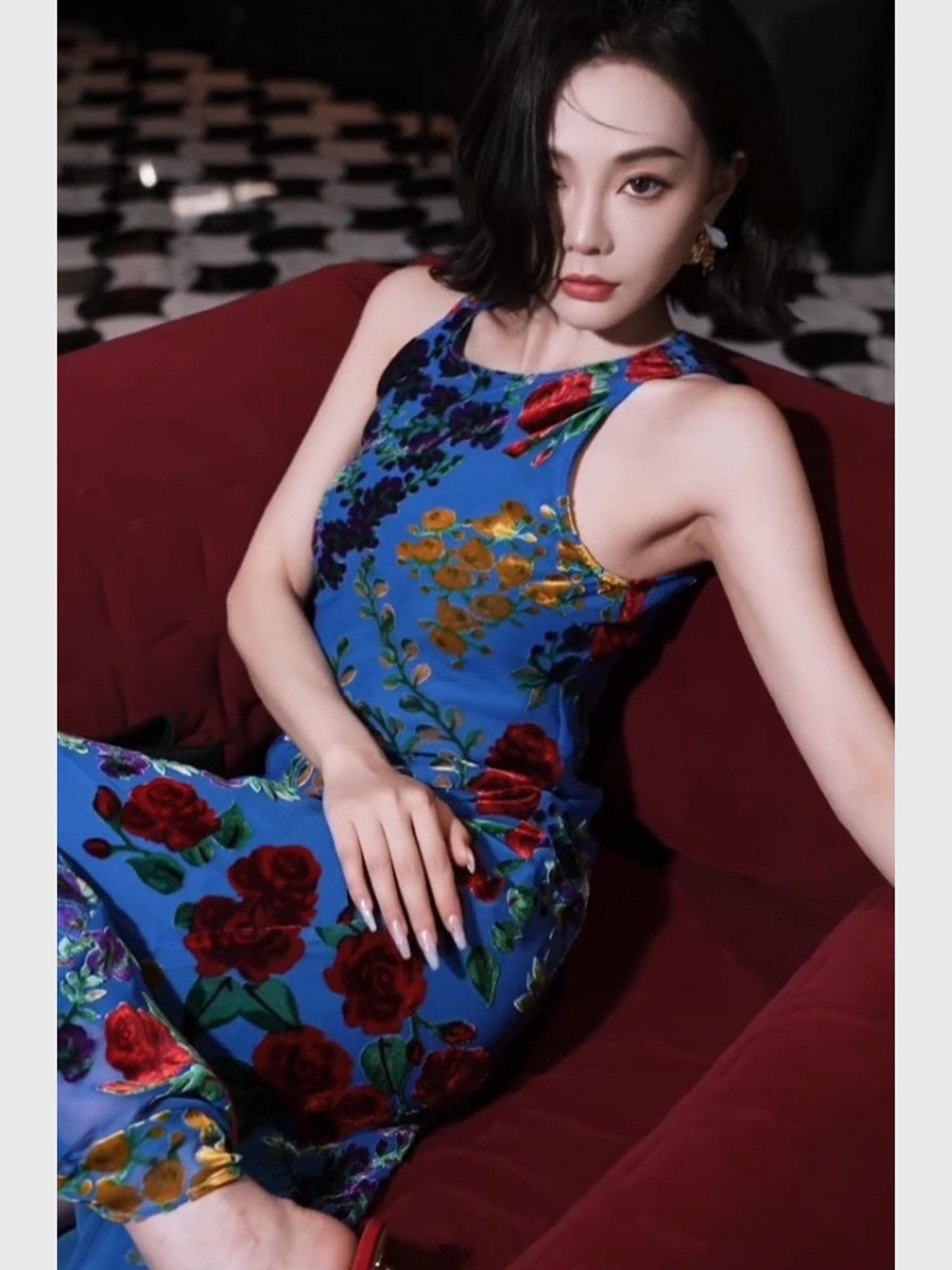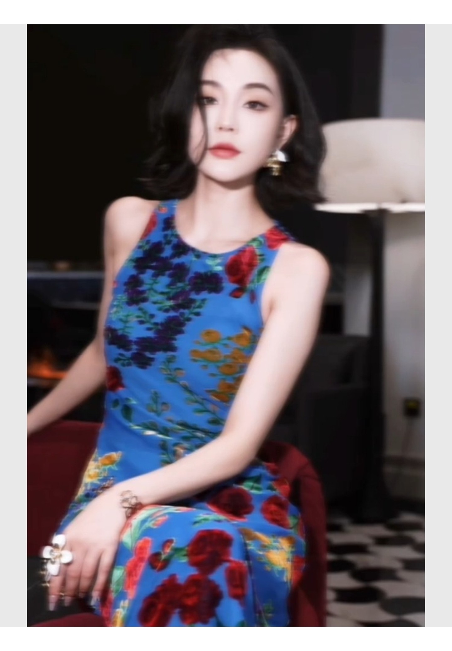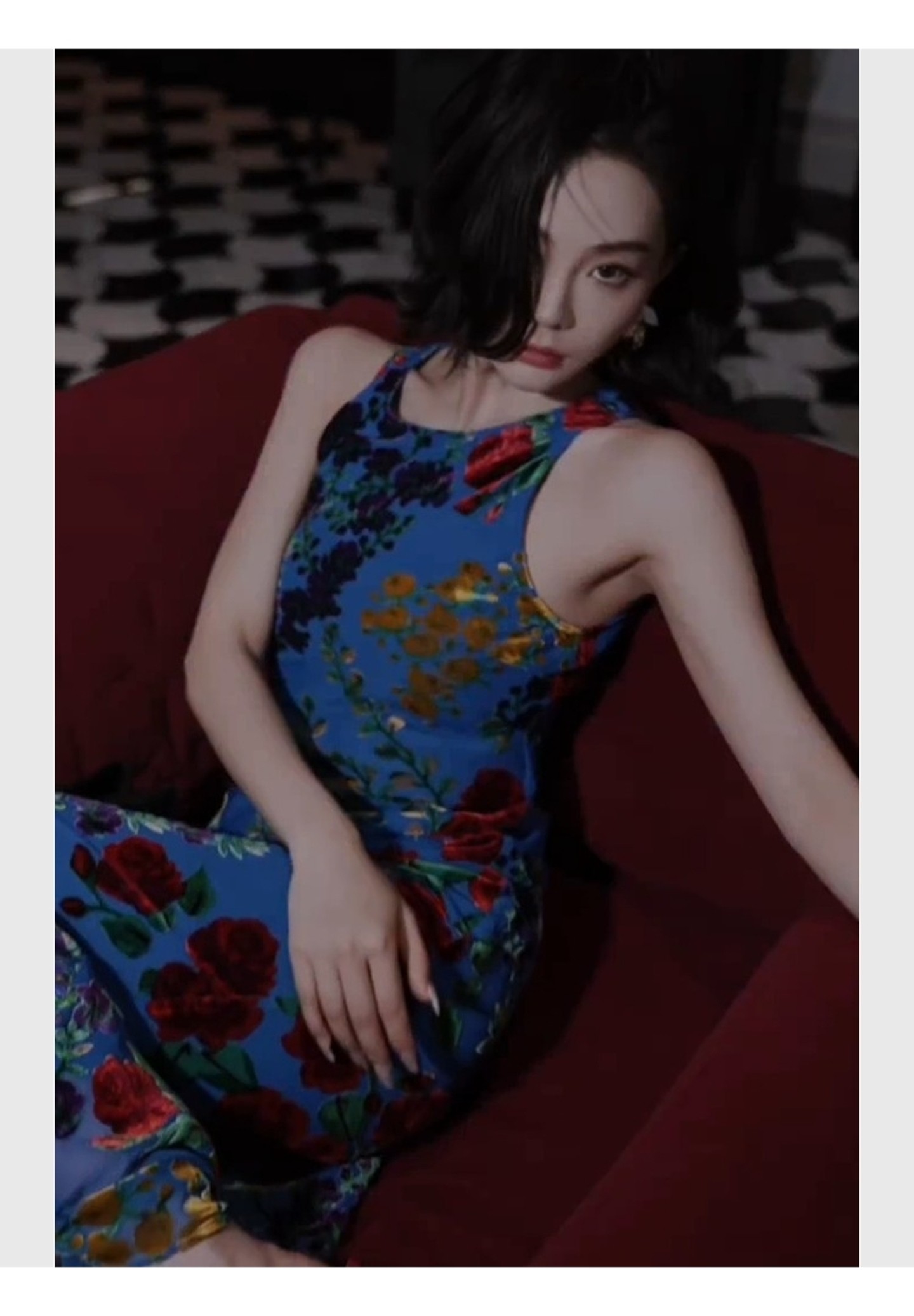New Chinese-Style Women's Clothing, Blue Round-Neck Printed Sleeveless Improved Cheongsam Dress, Summer High-End National Style Vest Dress