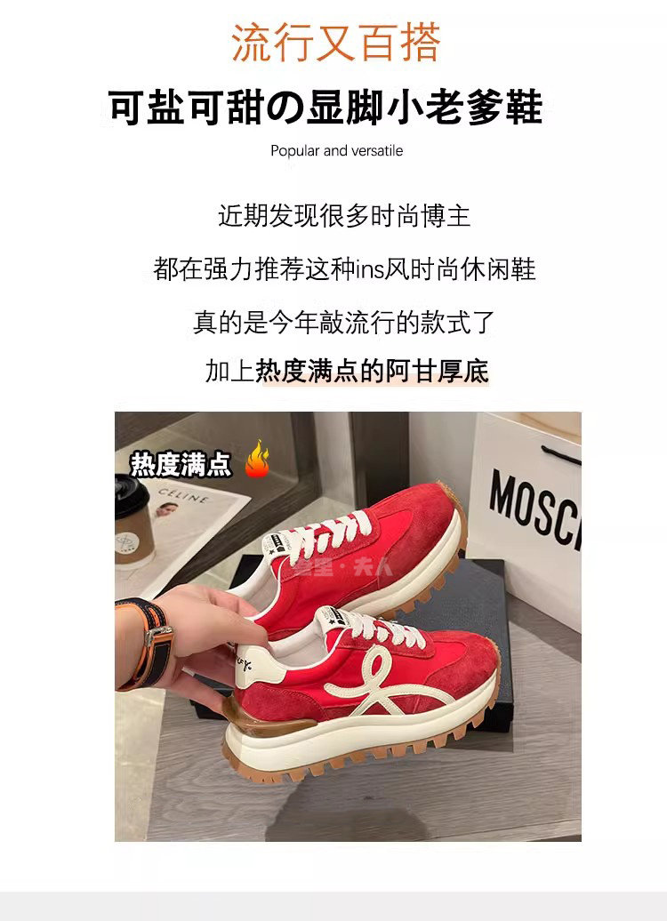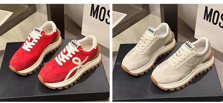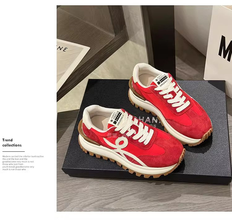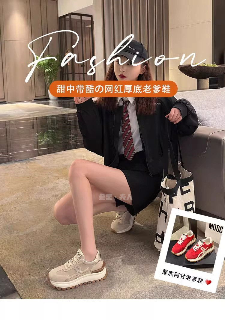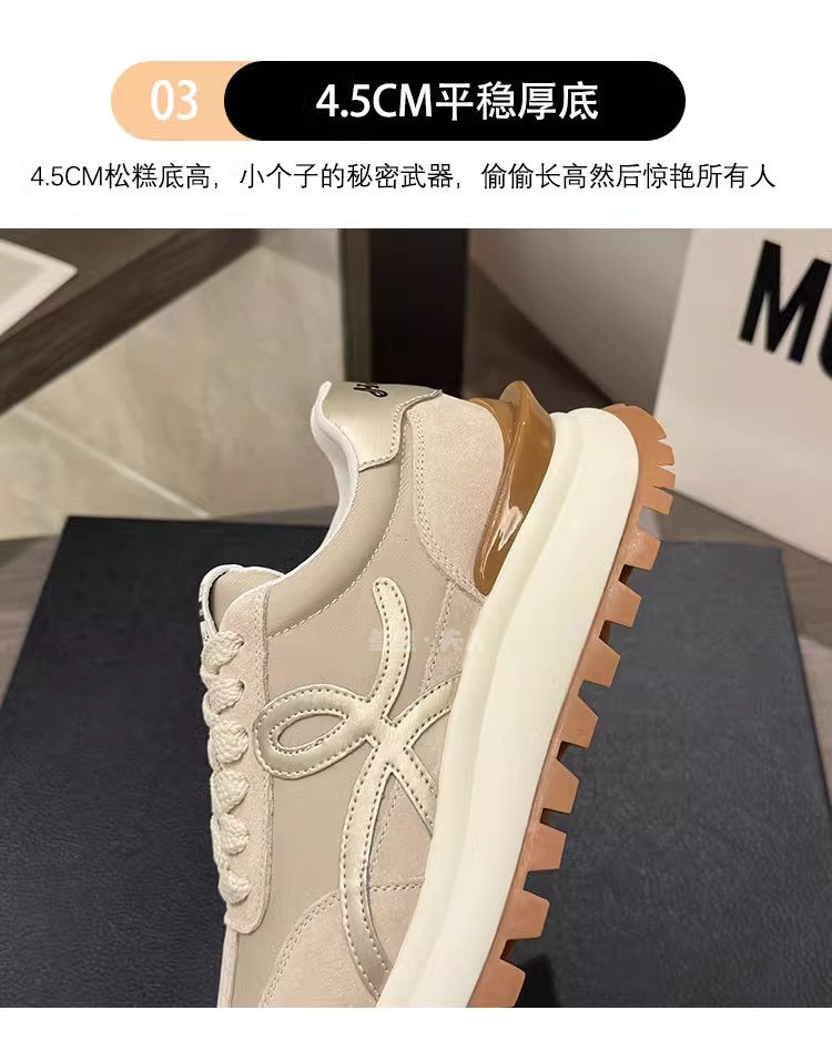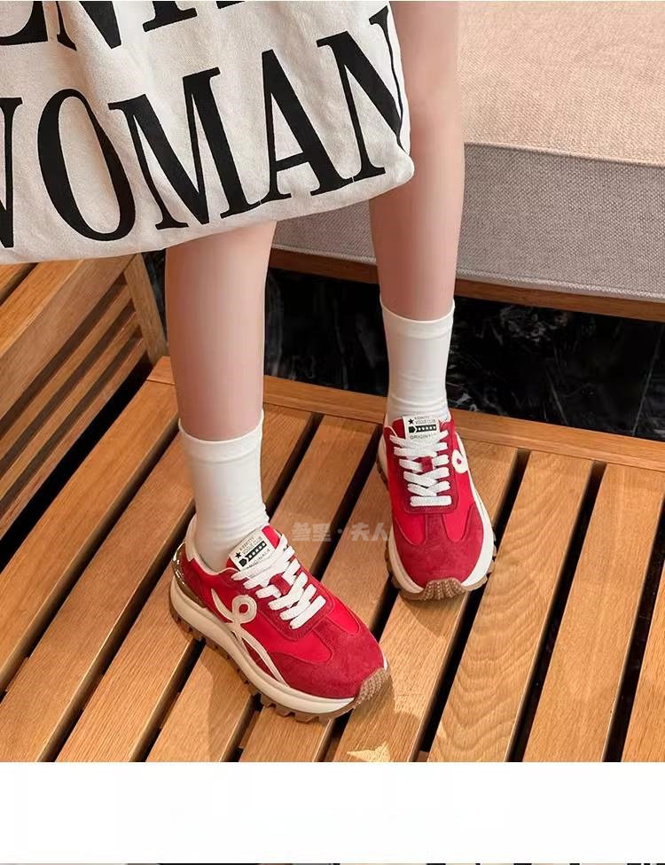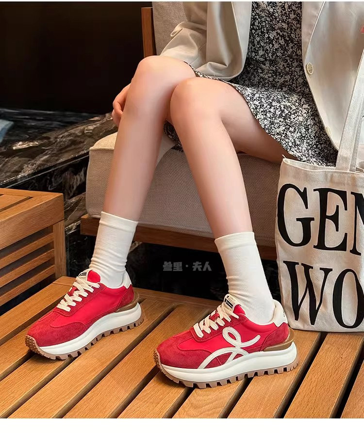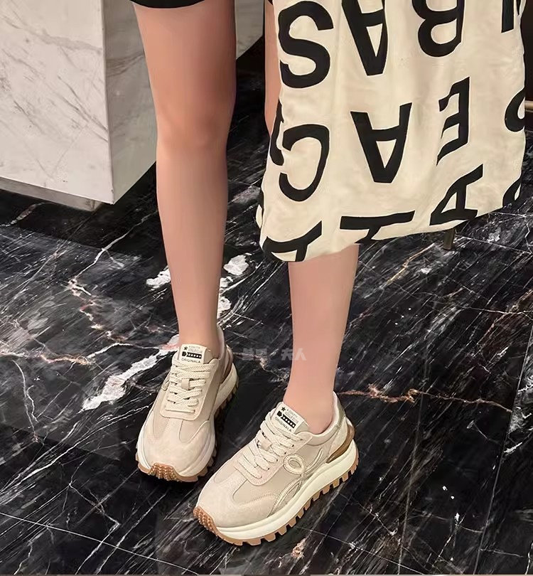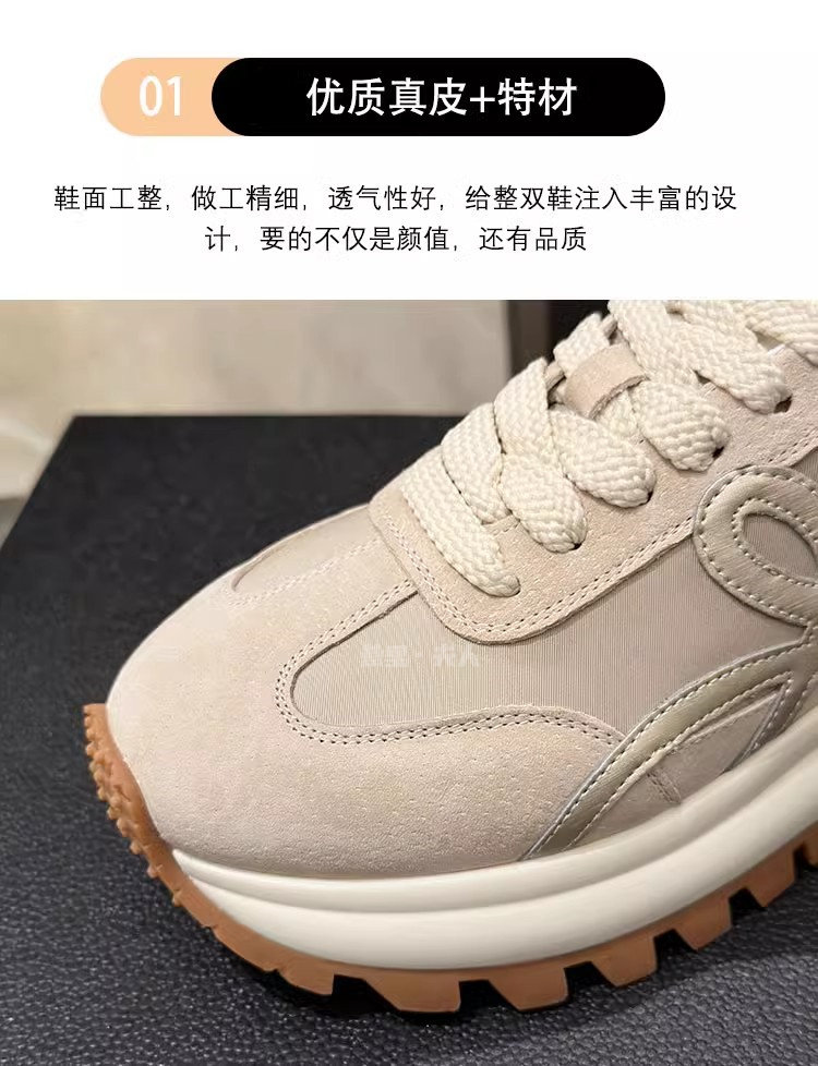Sanli Genuine Leather Waffle Sneakers for Women 2025 Spring and Autumn New Casual Thick-Soled Sports Shoes Round Toe Height-Increasing Dad Shoes