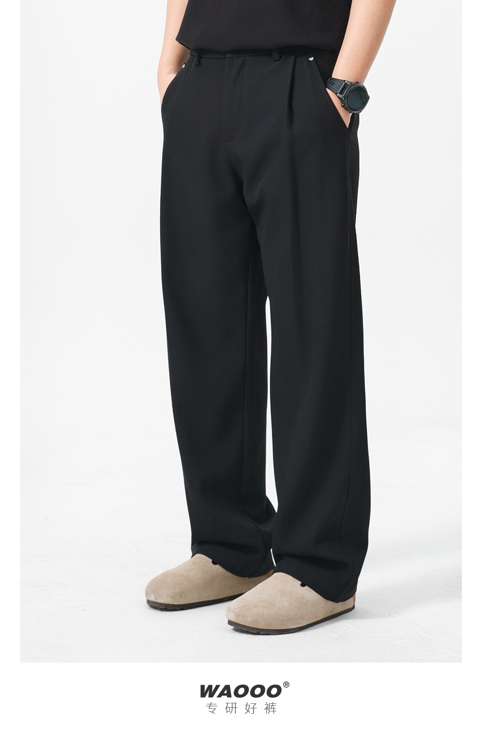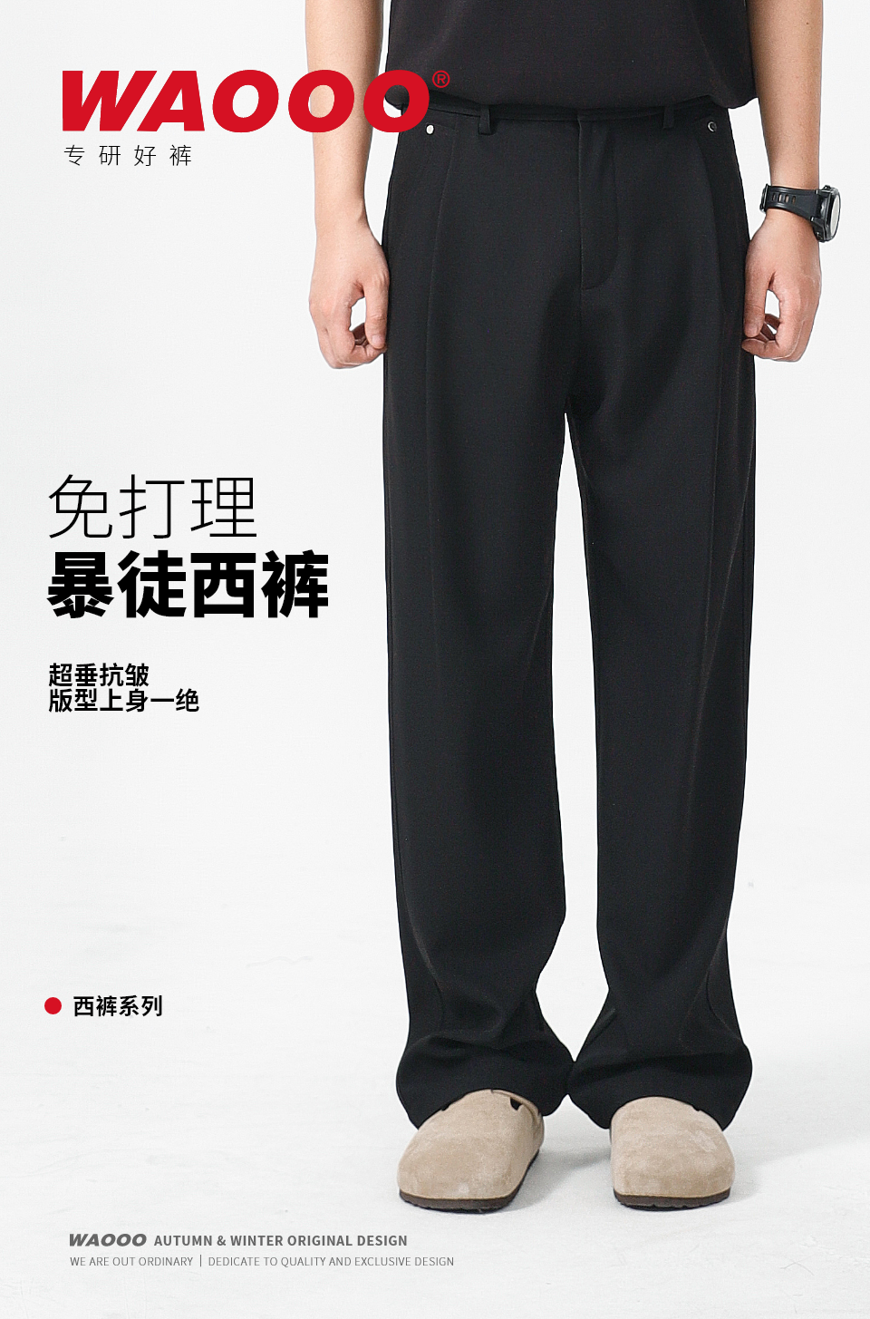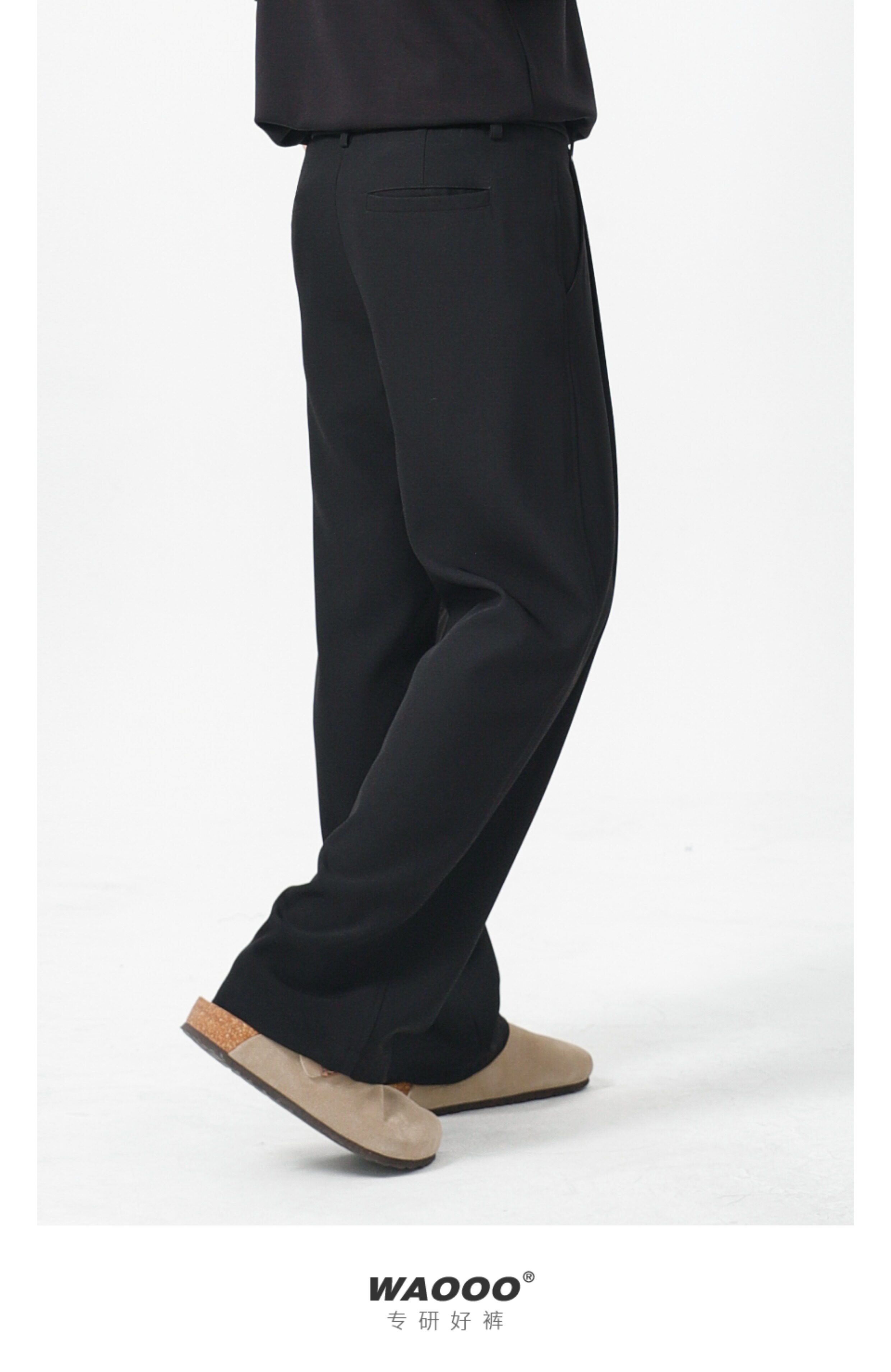 Waooo Fleece-Lined Pants Men's Black Dress Pants Winter Versatile Casual Loose Straight-Leg Drape Suit Pants Autumn and Winter