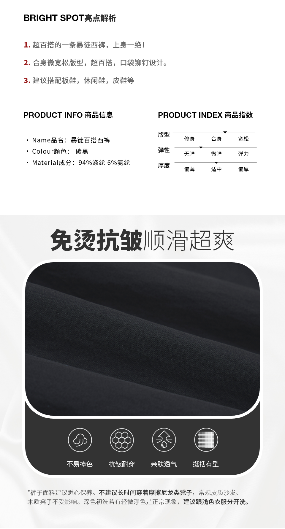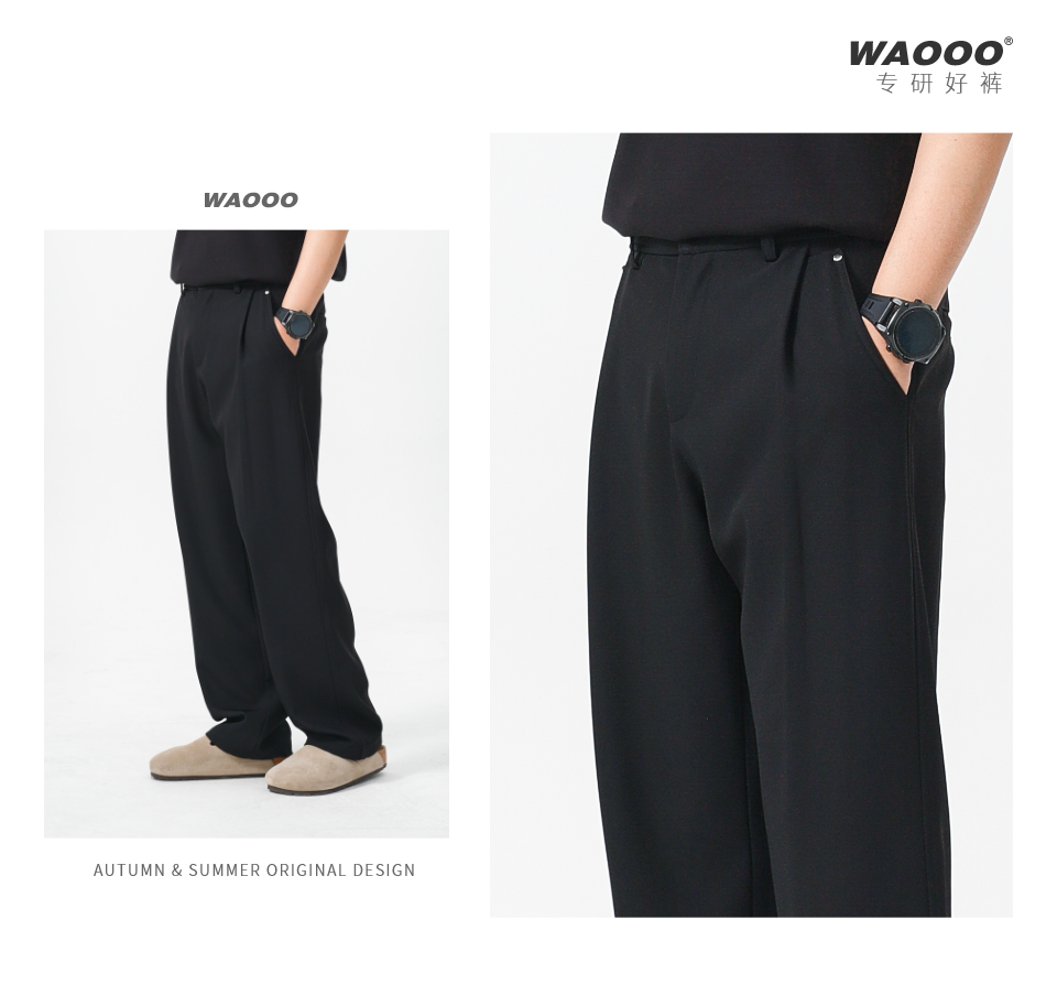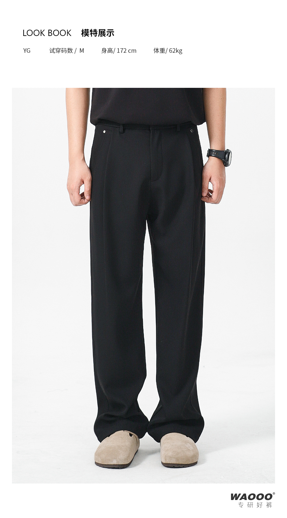 Waooo Fleece-Lined Pants Men's Black Dress Pants Winter Versatile Casual Loose Straight-Leg Drape Suit Pants Autumn and Winter