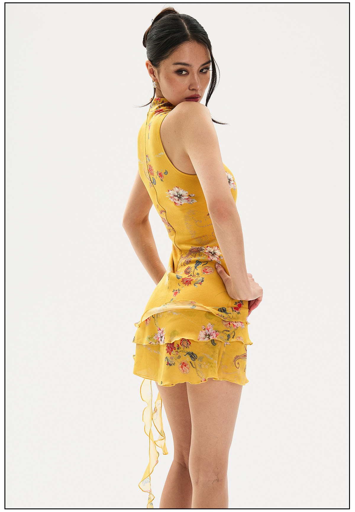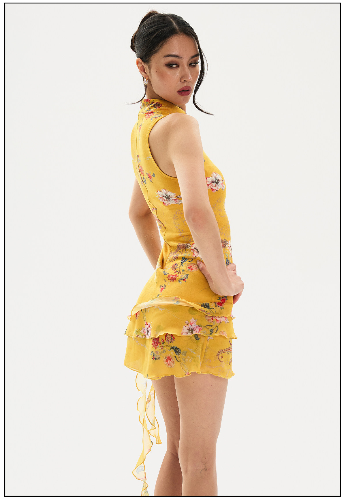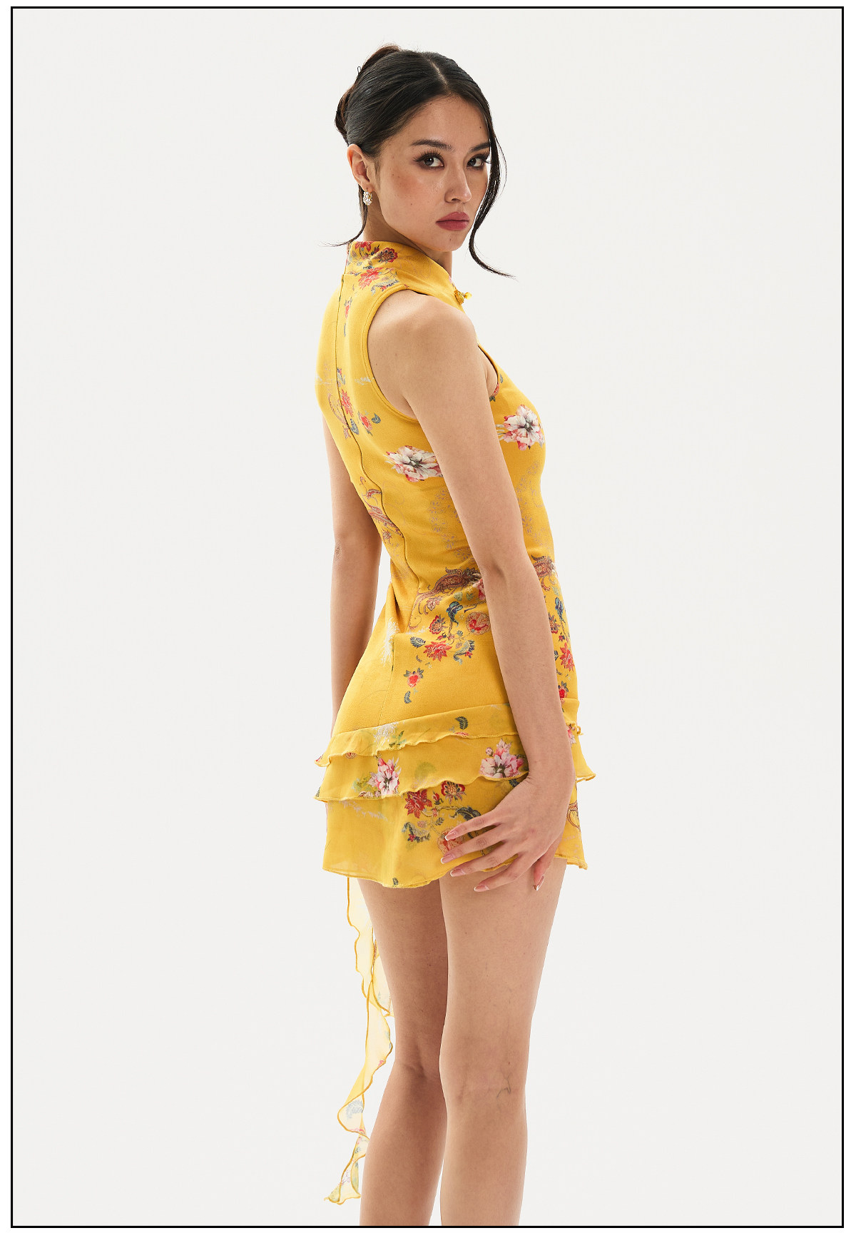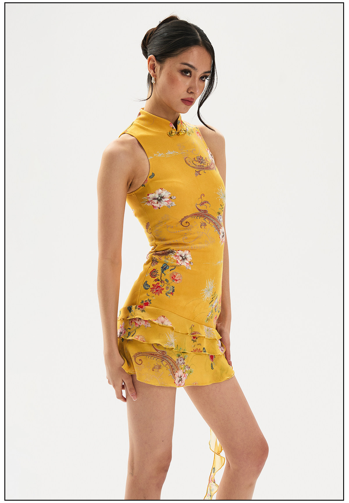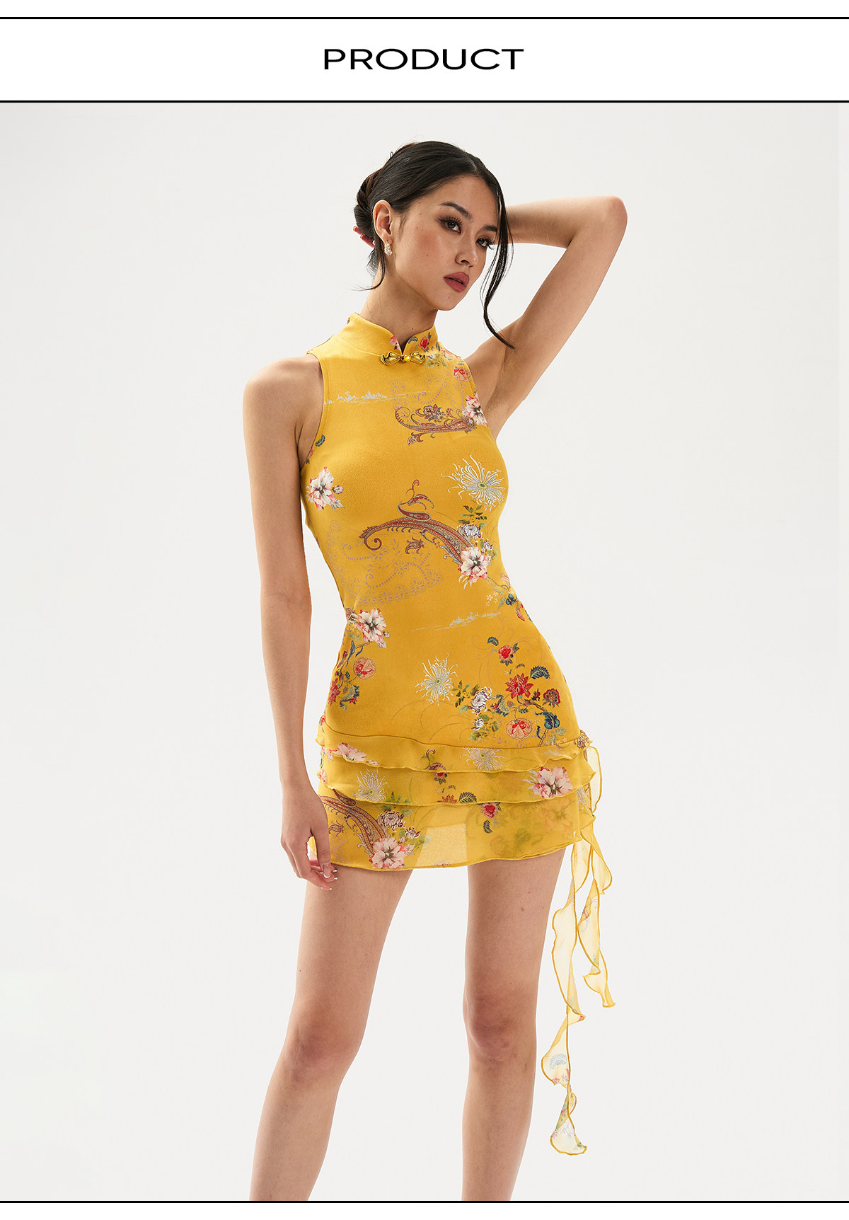 Findyawings New Chinese Style National Print Slim Fit Cheongsam Stand Collar Dress Short Skirt