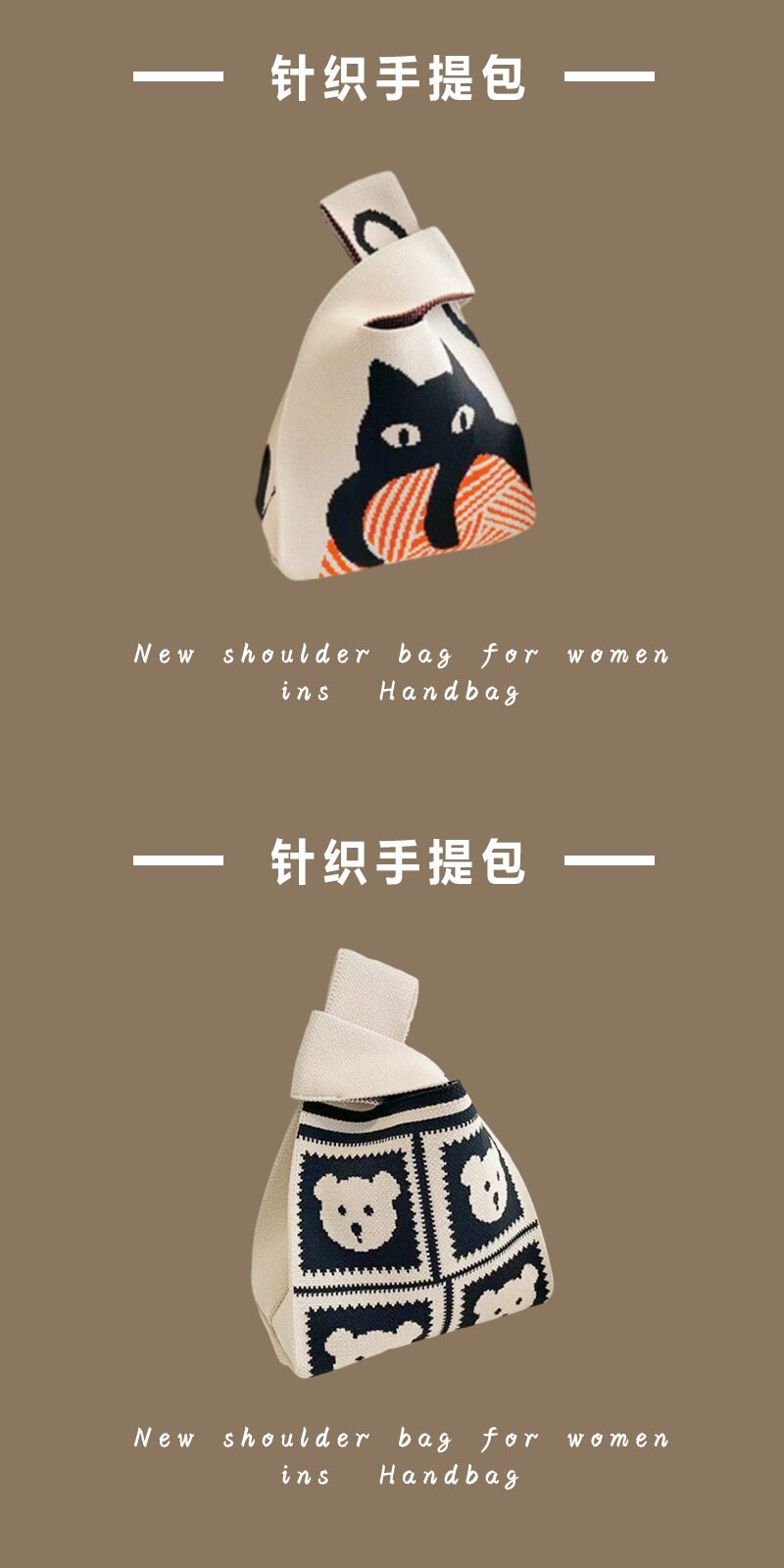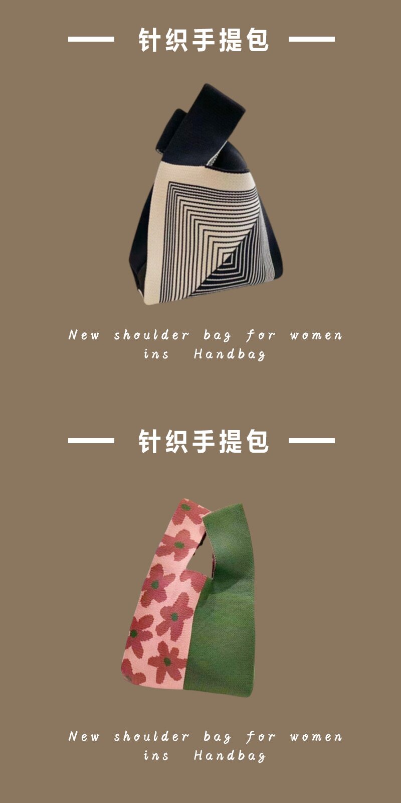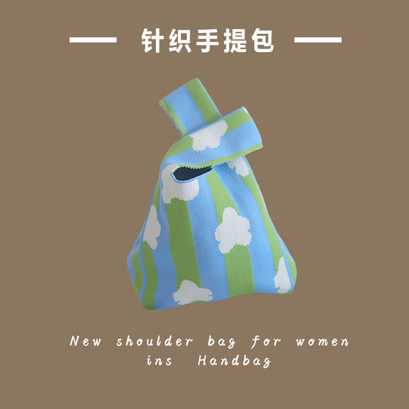 New Korean Version ins Trendy Knitted Handbag for Women, Stylish Tote Bag, Lunch Bag