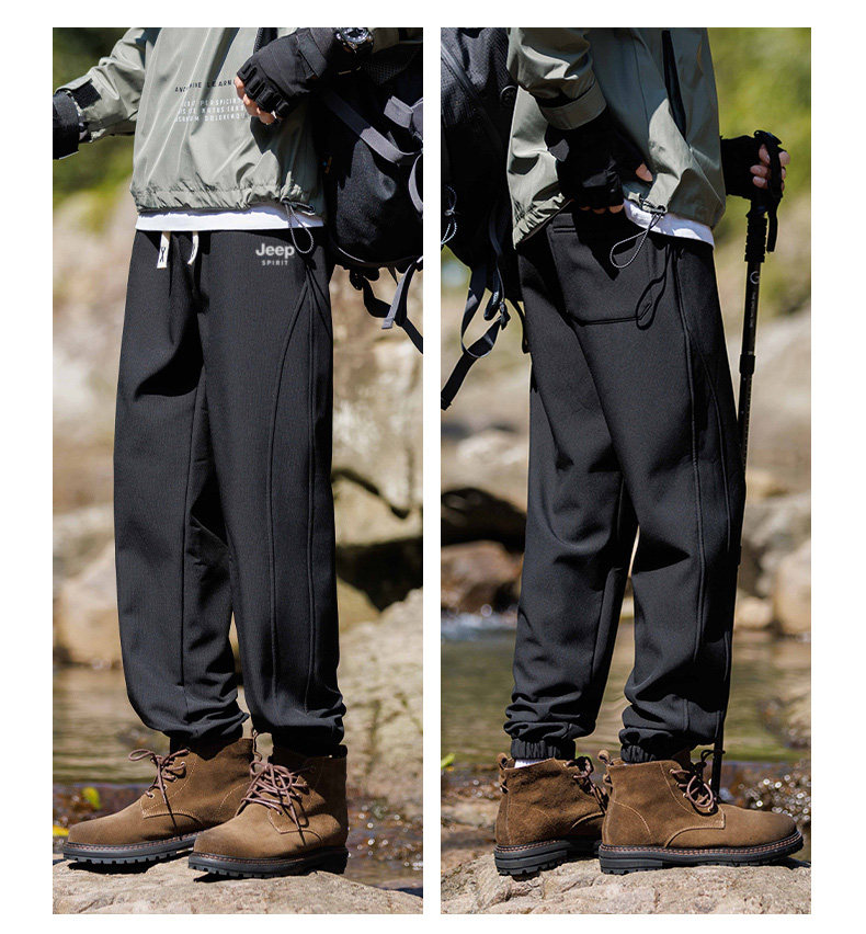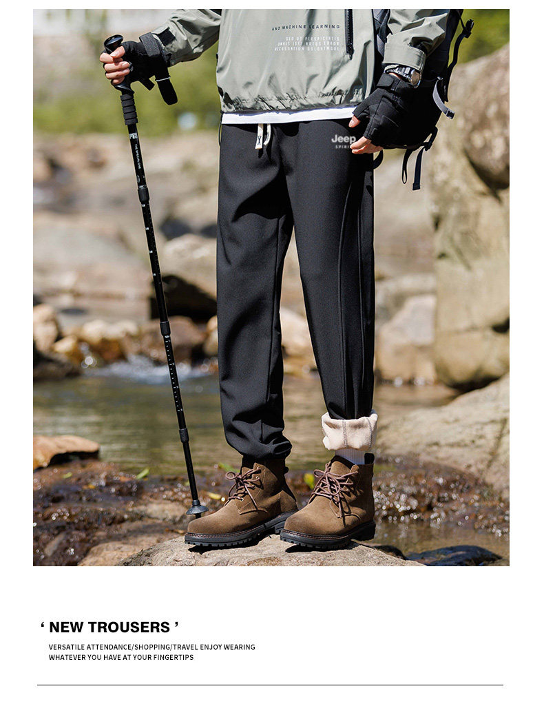 Jeep Fleece-Lined Pants Men's Outdoor Pants Autumn and Winter New Loose Cargo Pants Thickened Sports Men's Pants Casual Pants