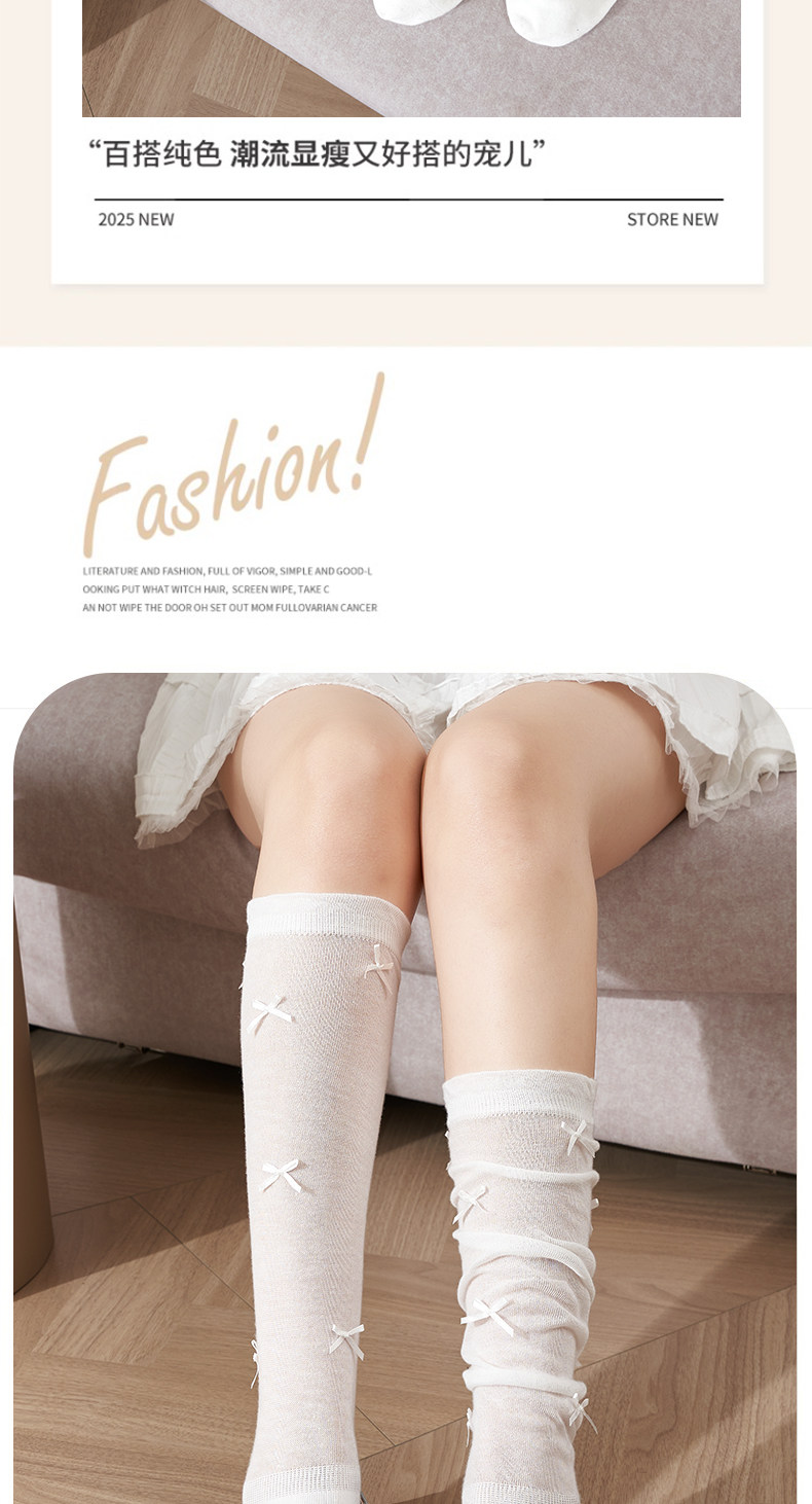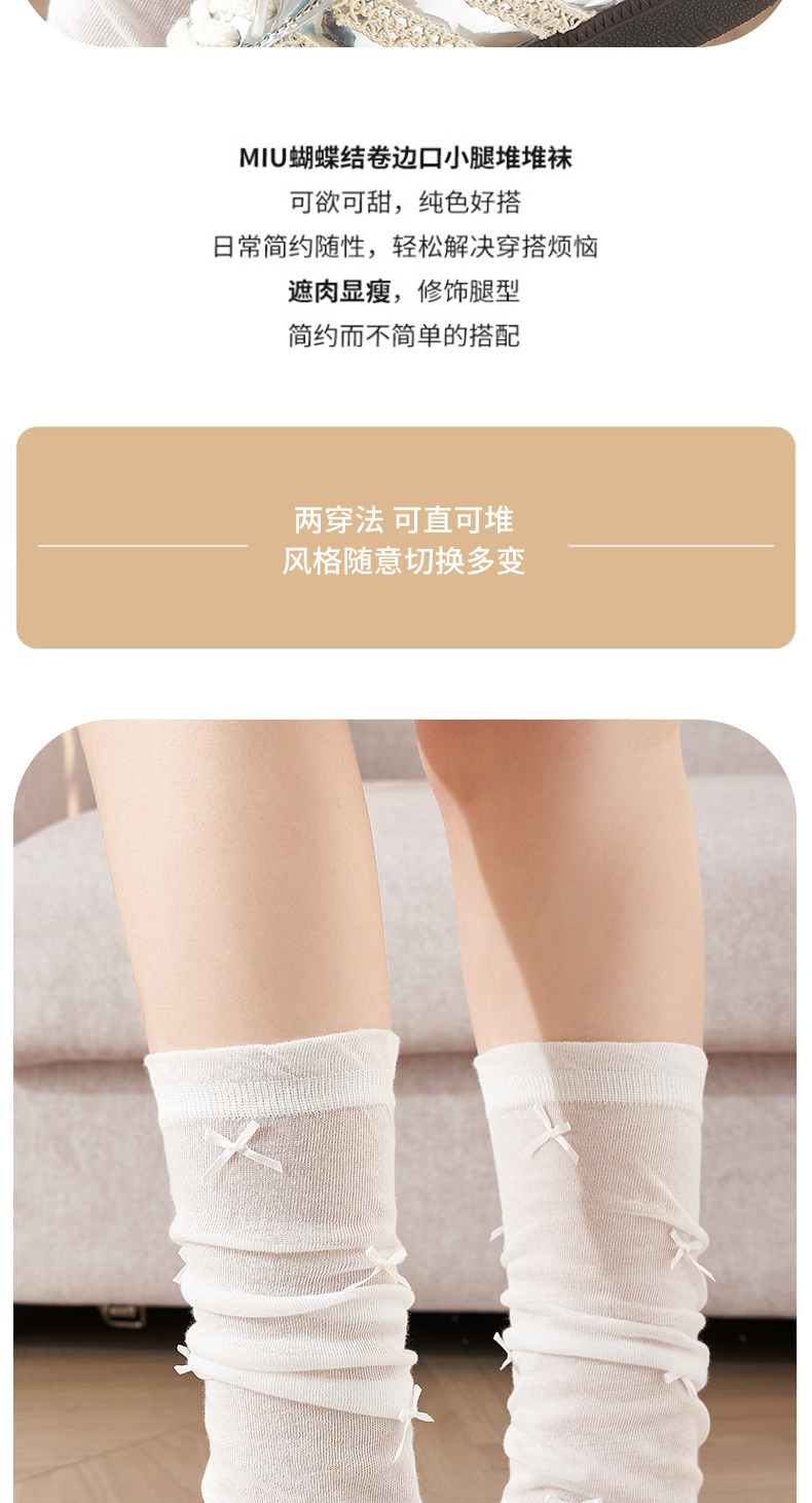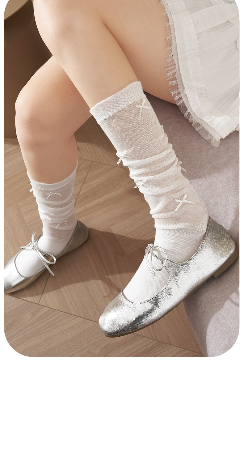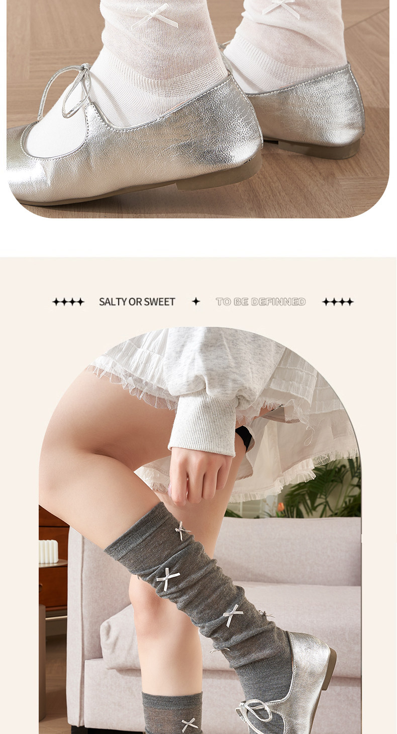 Gray Calf Socks for Women, Slouch Socks, Thin Summer Style, Pure Cotton, Ballet Style, Mid-Calf, Miu Style, Paired with Mary Jane Long Socks
