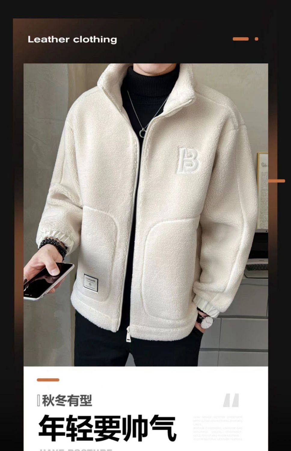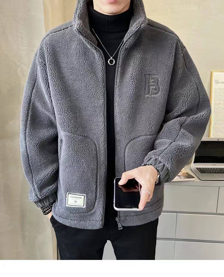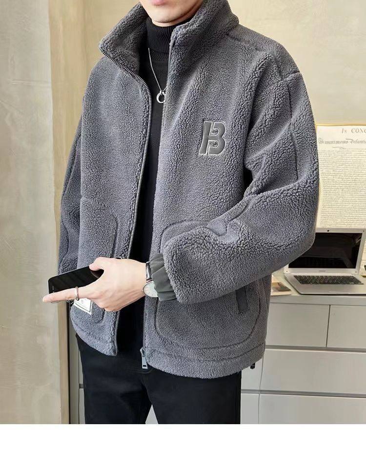 Loss-Making Special Price 2024 New Men's Lamb Wool Fleece-Lined Thickened Jacket for Men, Autumn and Winter Casual Clothing for Boys, Trendy Brand