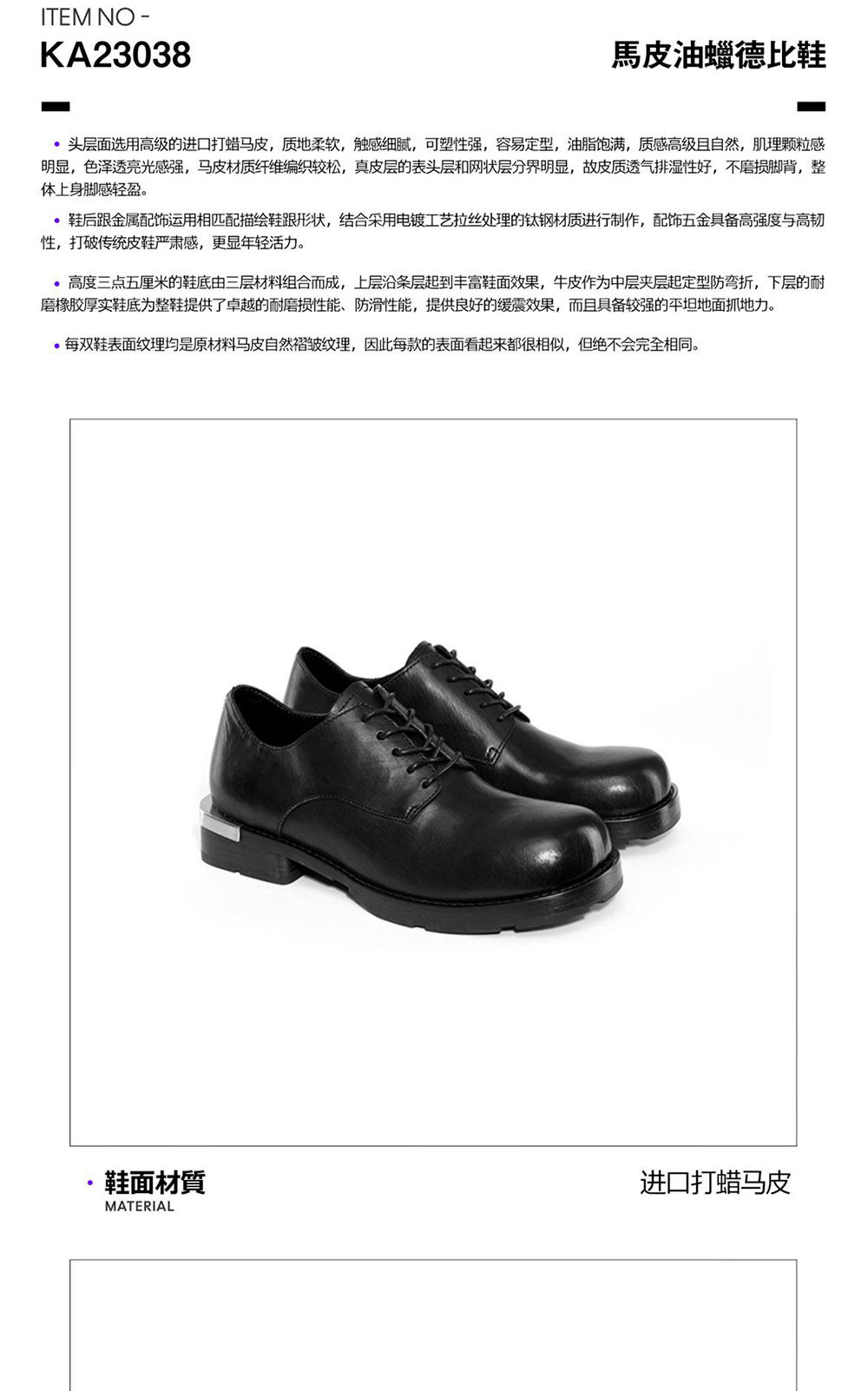 Kami Anger Lin Feng's Same Style Oil Wax Horse Leather Round-Toe Derby Shoes, Height-Increasing Casual Leather Shoes, New Thick-Soled Shoes