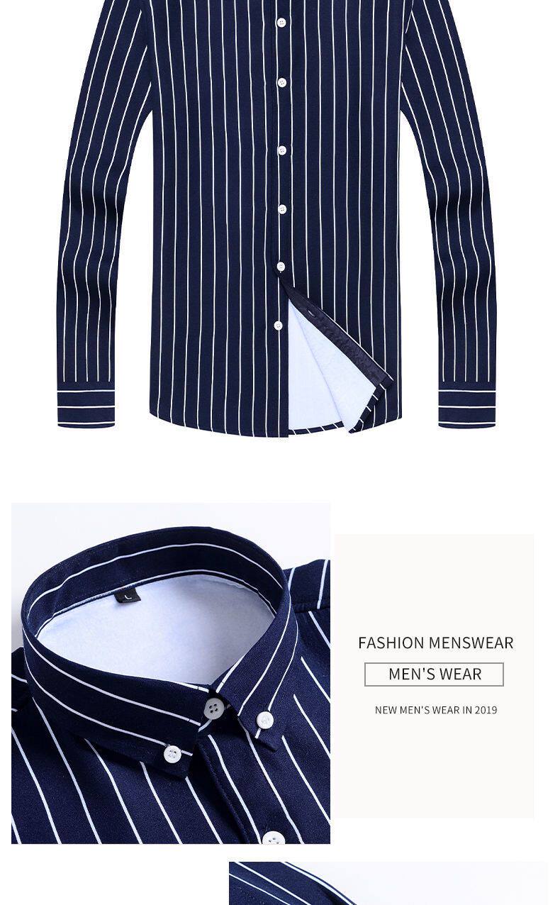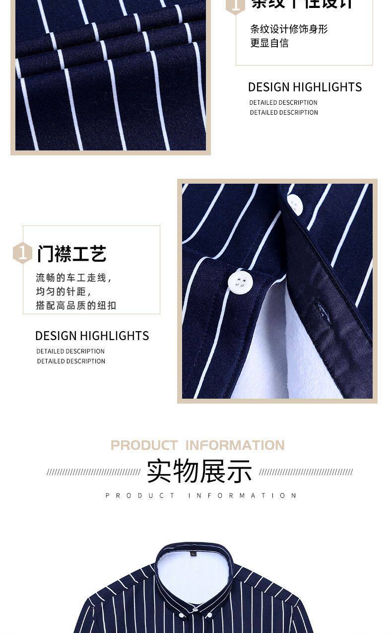 Autumn and Winter New Arrivals, Fleece-Lined and Thickened Men's Long-Sleeved Shirts, Fashionable Casual Striped Slim-Fit Men's Shirts for Young and Middle-Aged Men