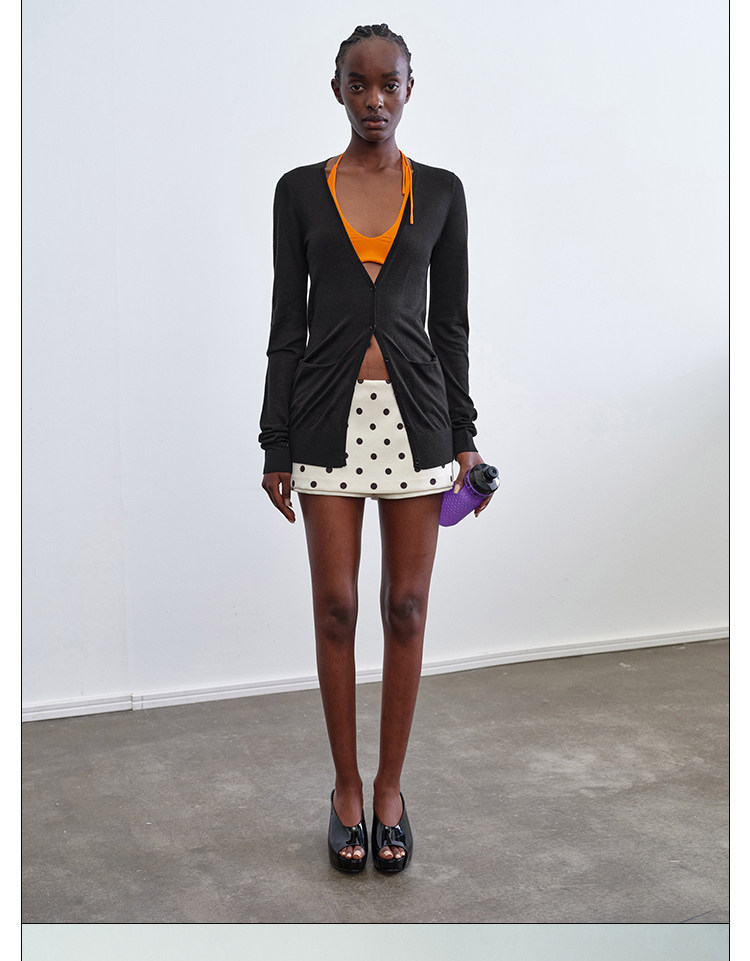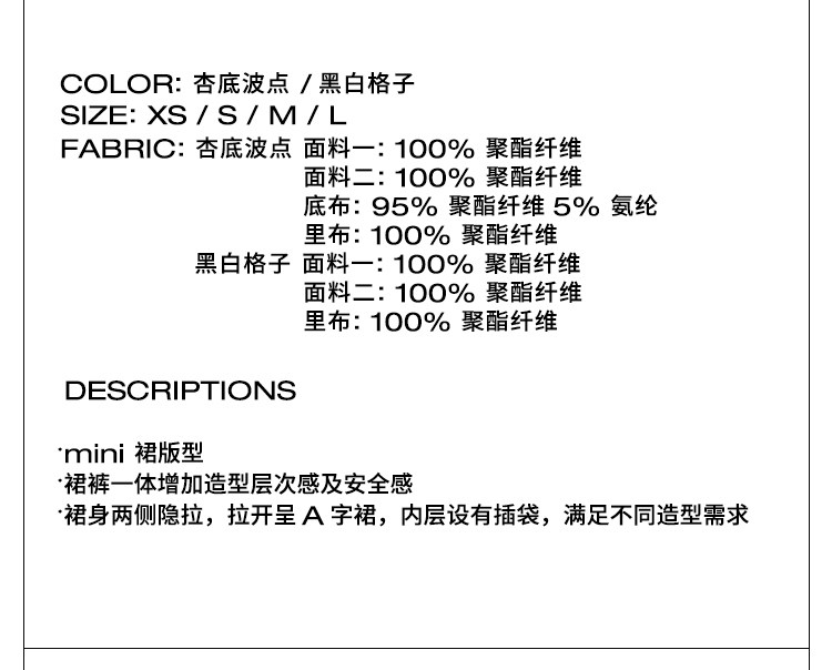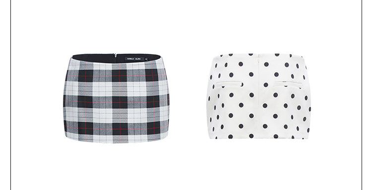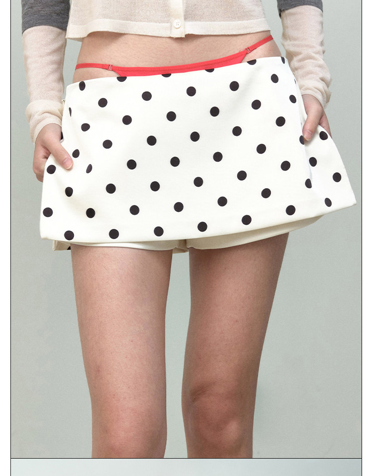 Rarely Alike Side-Zip Two-Way Mini Skirt Pants, Polka Dot on Apricot Background/Black and White Plaid