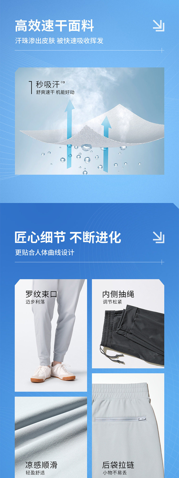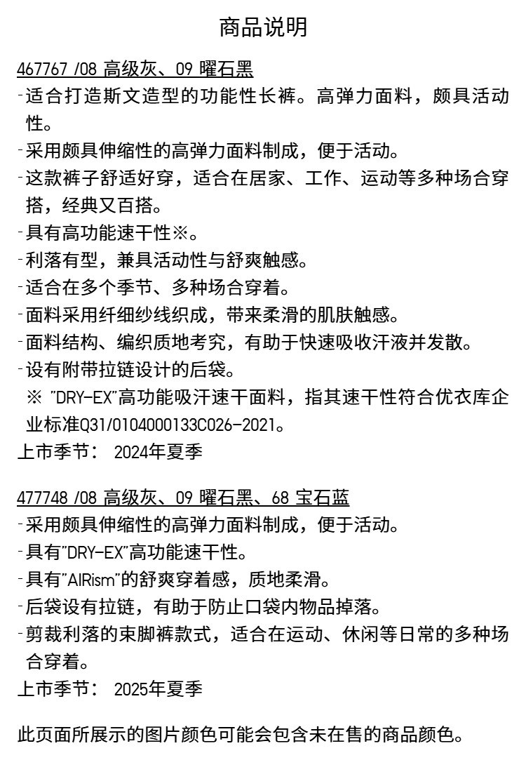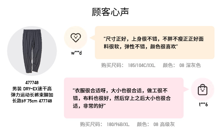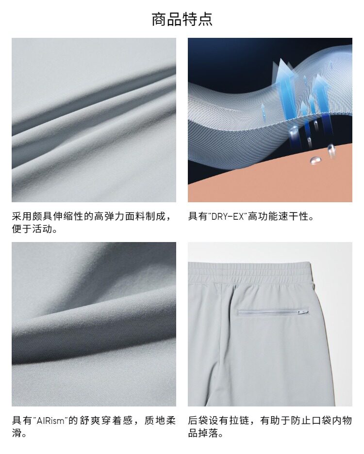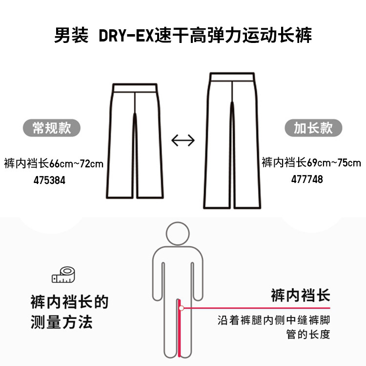 Extended-Length Uniqlo Men's Dry-Ex Quick-Dry High-Elasticity Sports Jogger Pants 477748