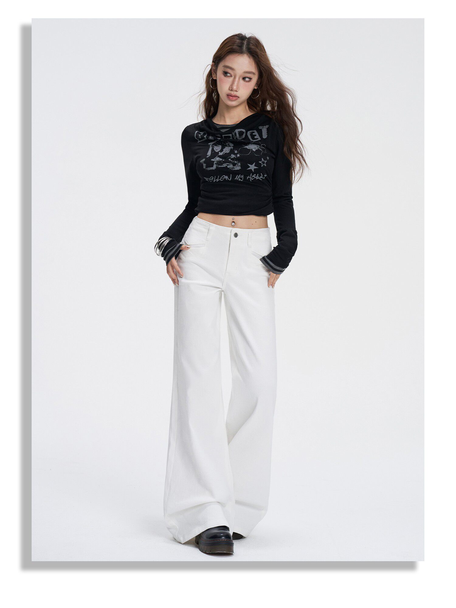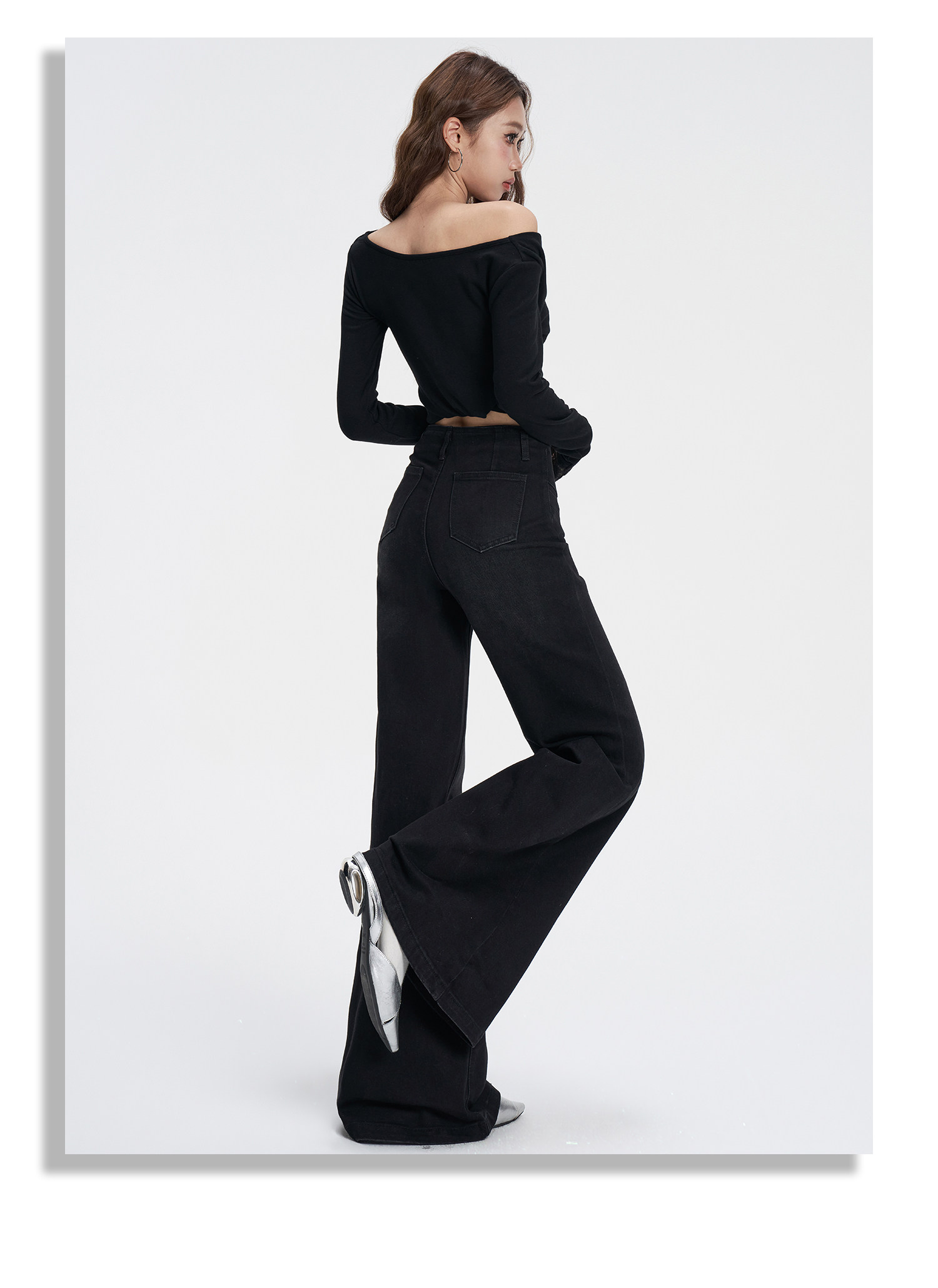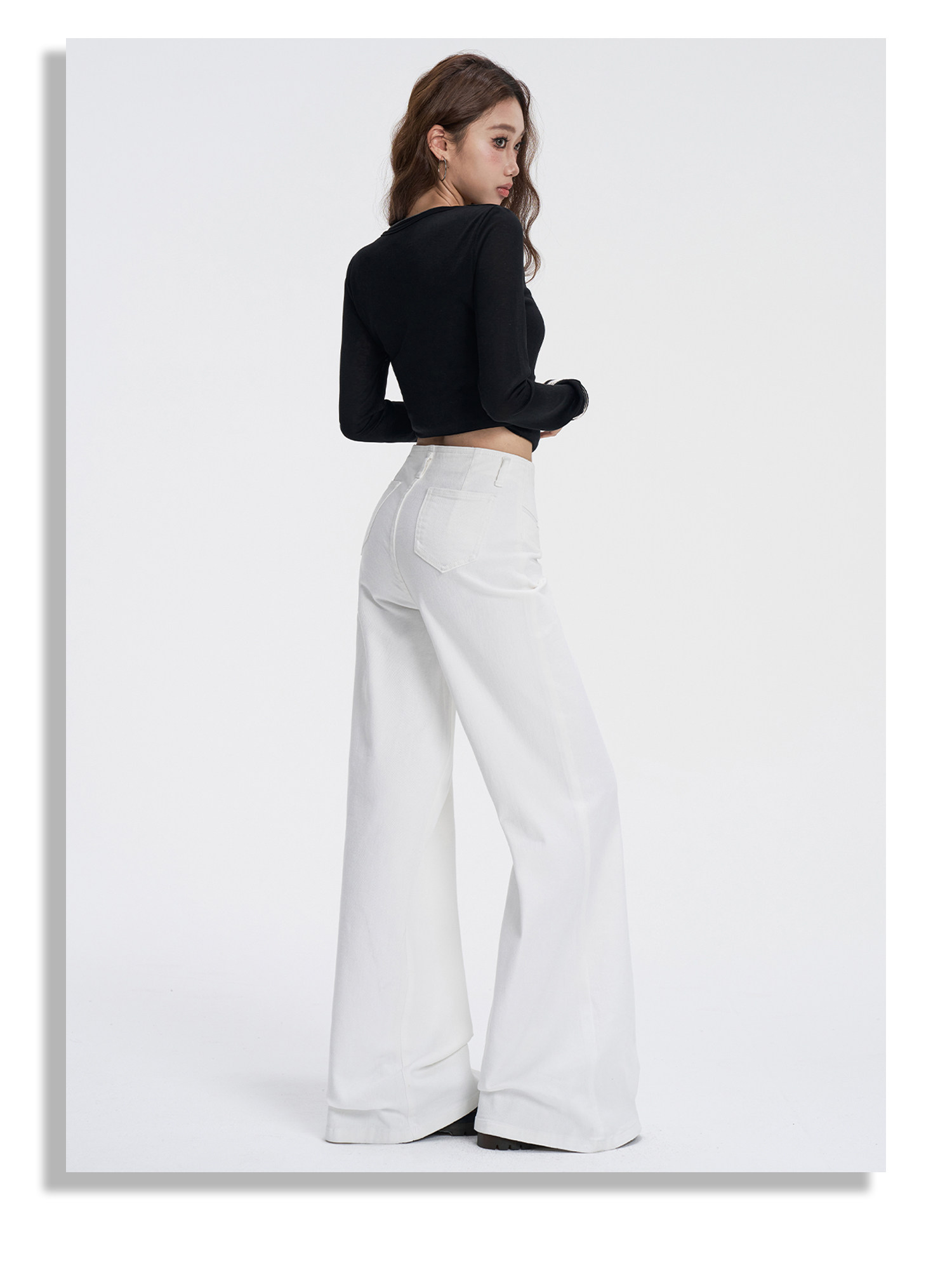 Vintage Flared Jeans for Women, Autumn and Winter, American Style, High-Waisted, Drapey, Niche Design, Pocket Detail, Hip-Covering, Wide-Leg Bell-Bottom Pants