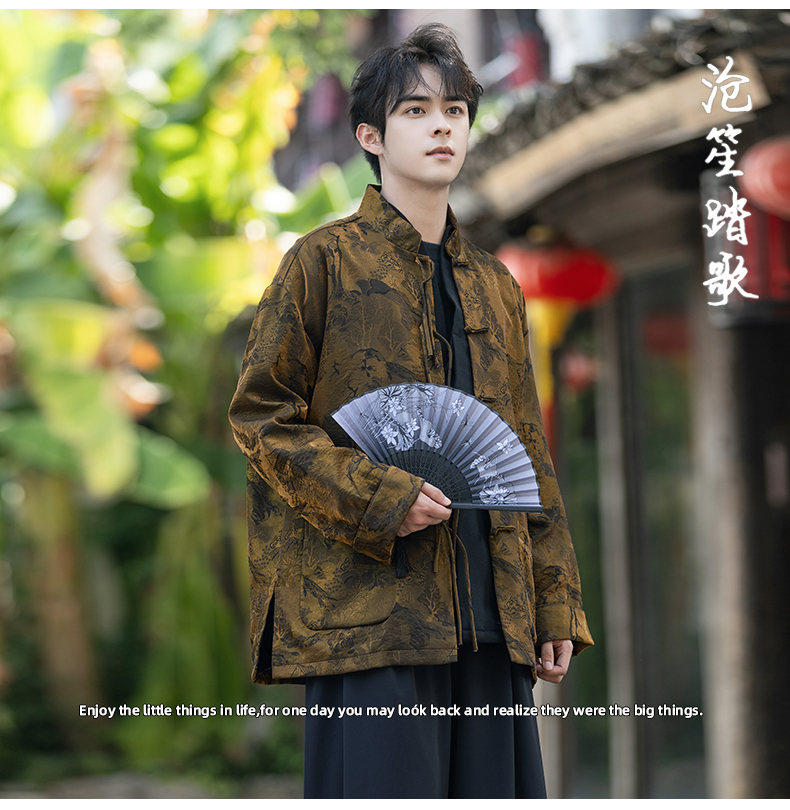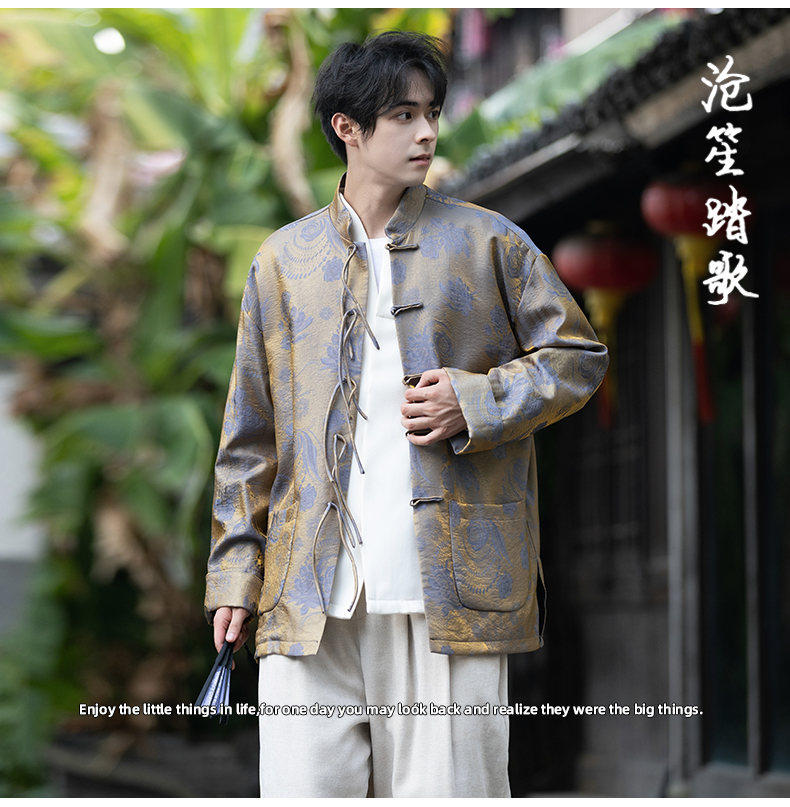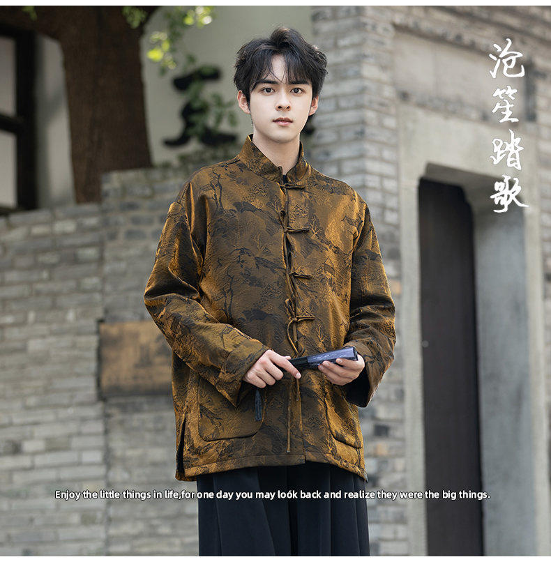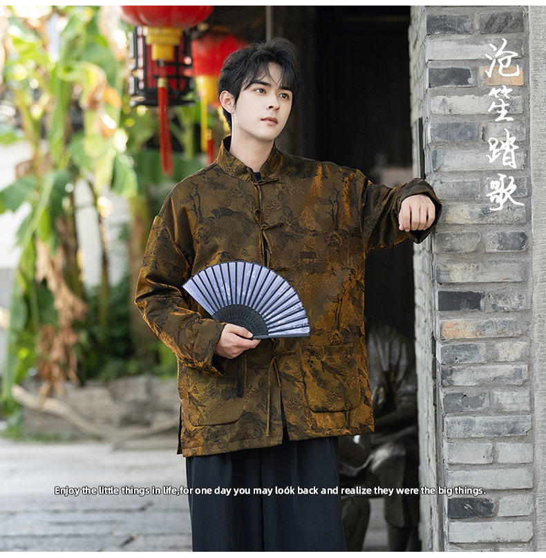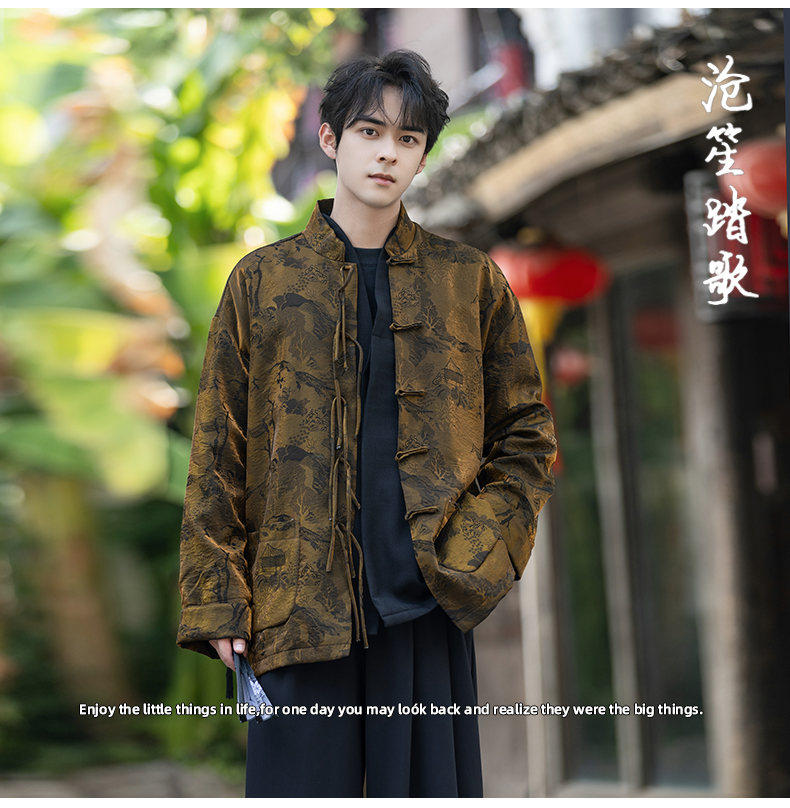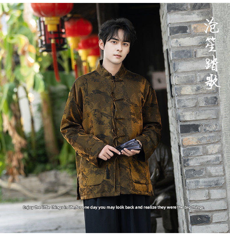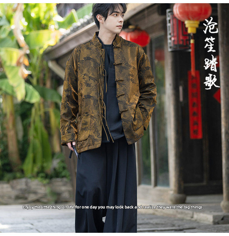 New Chinese Style Spring and Autumn Retro Brocade Casual Tang Suit Jacket Chinese Style Double-Breasted Zhongshan Suit Jacket Men's Tea Suit