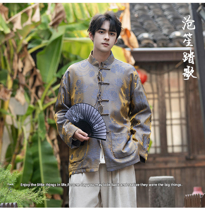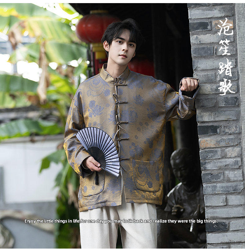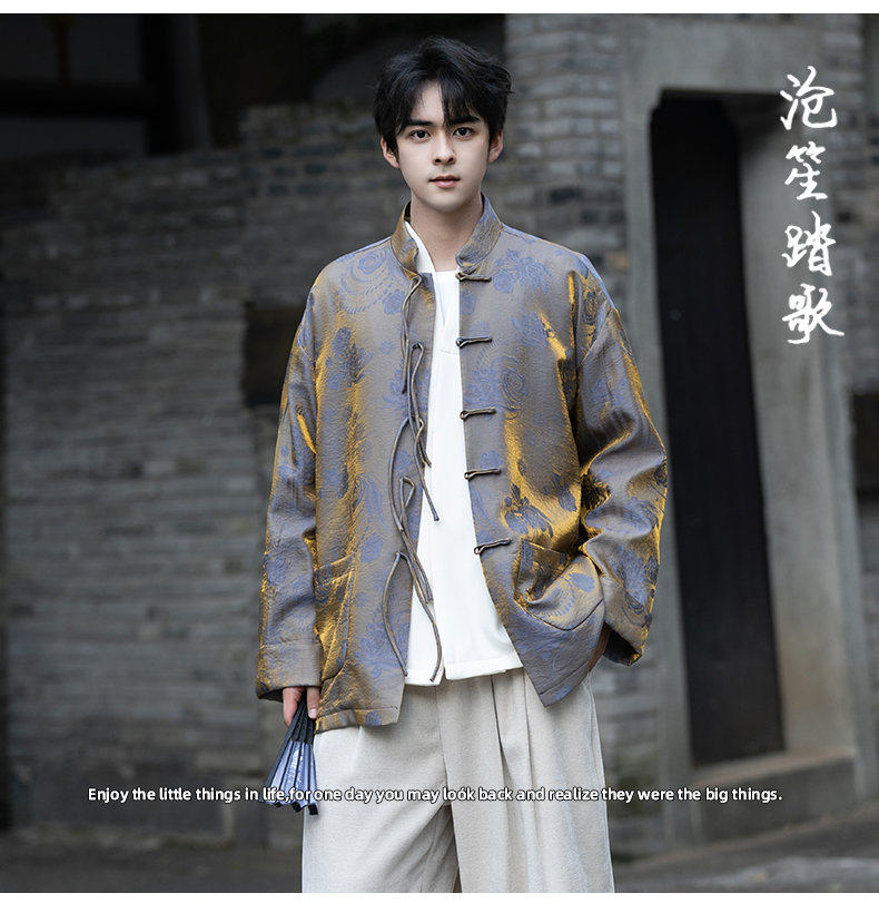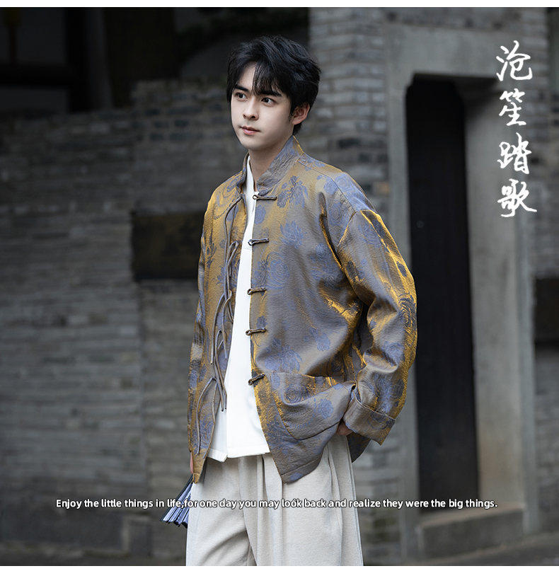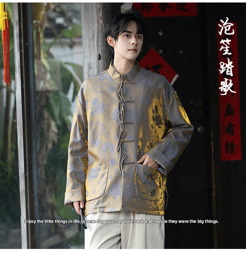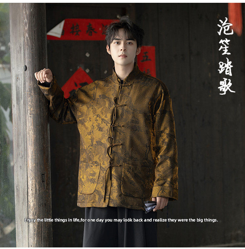 New Chinese Style Spring and Autumn Retro Brocade Casual Tang Suit Jacket Chinese Style Double-Breasted Zhongshan Suit Jacket Men's Tea Suit