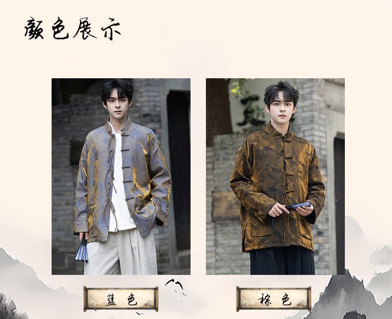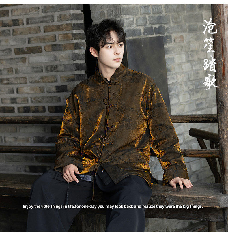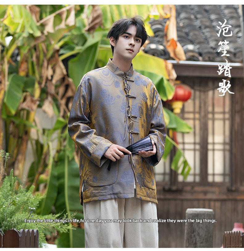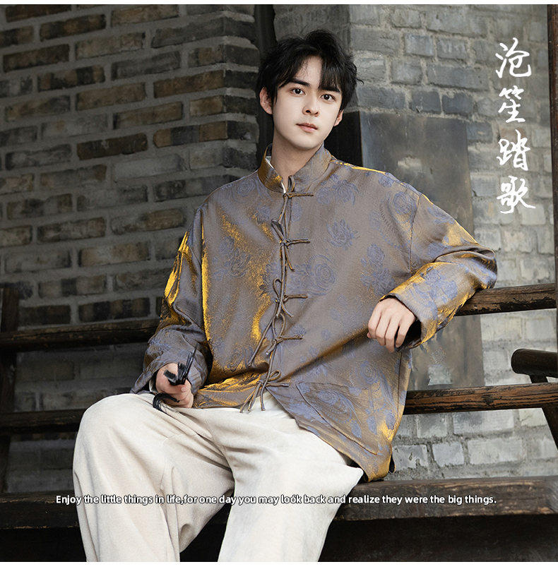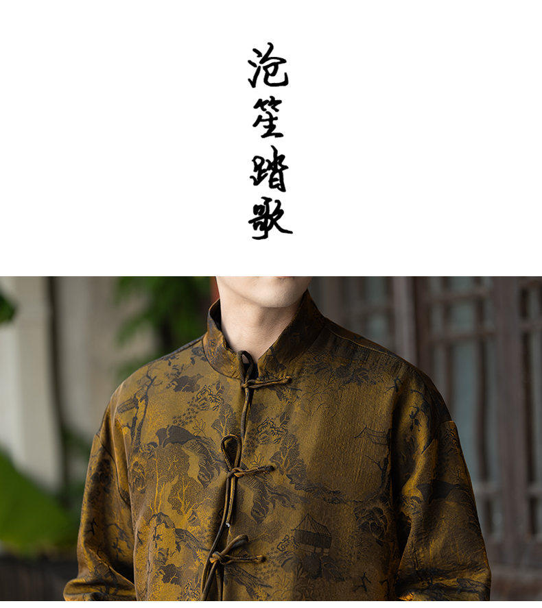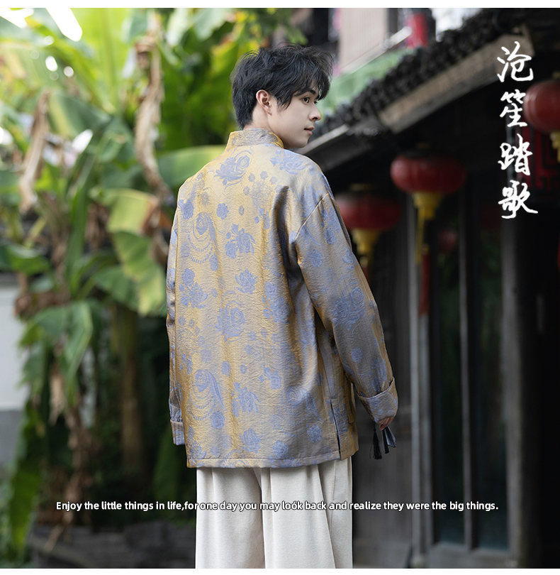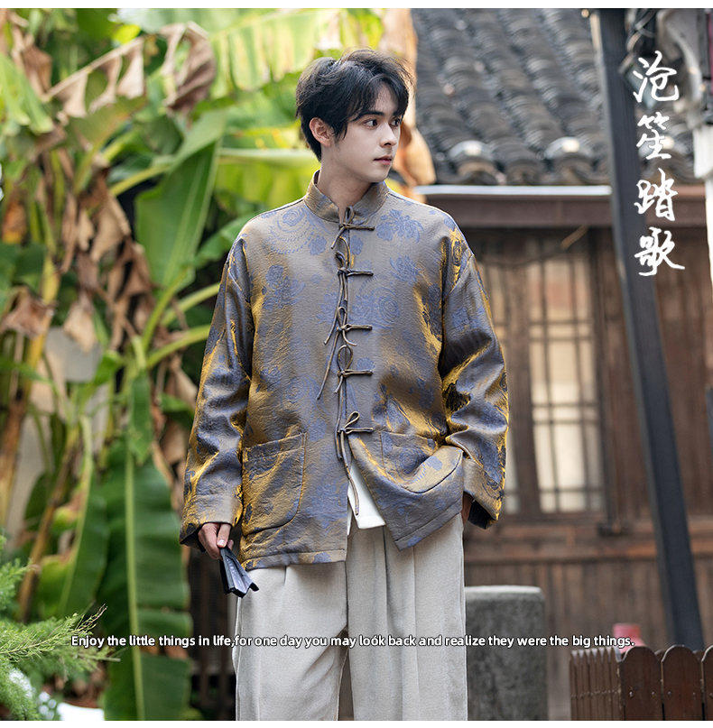 New Chinese Style Spring and Autumn Retro Brocade Casual Tang Suit Jacket Chinese Style Double-Breasted Zhongshan Suit Jacket Men's Tea Suit