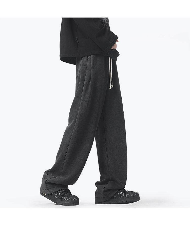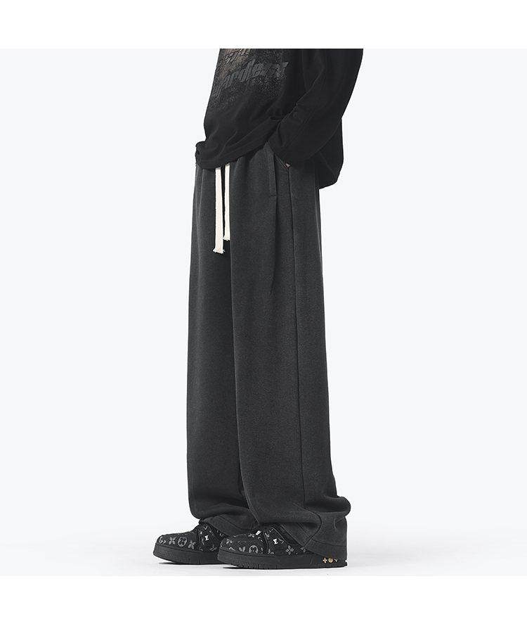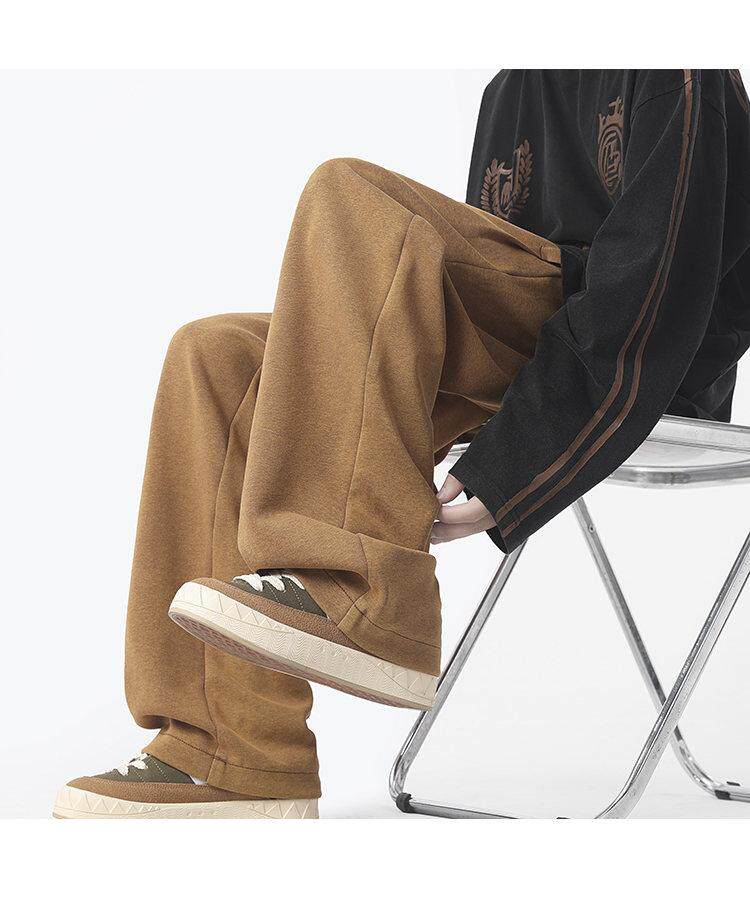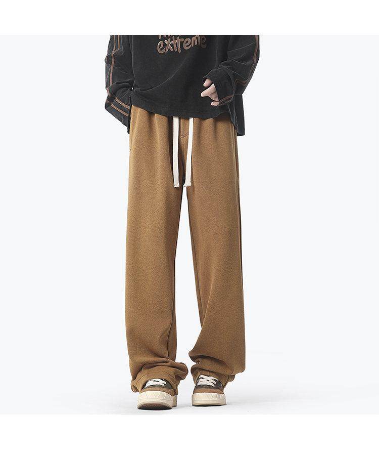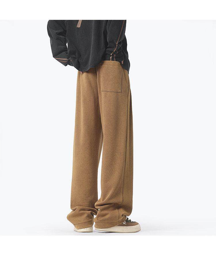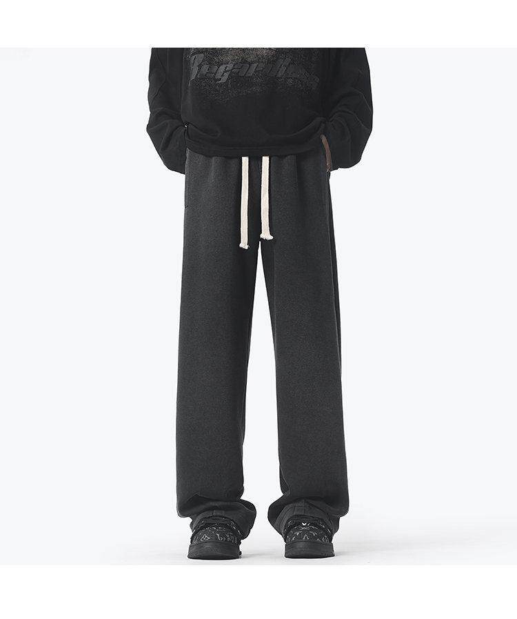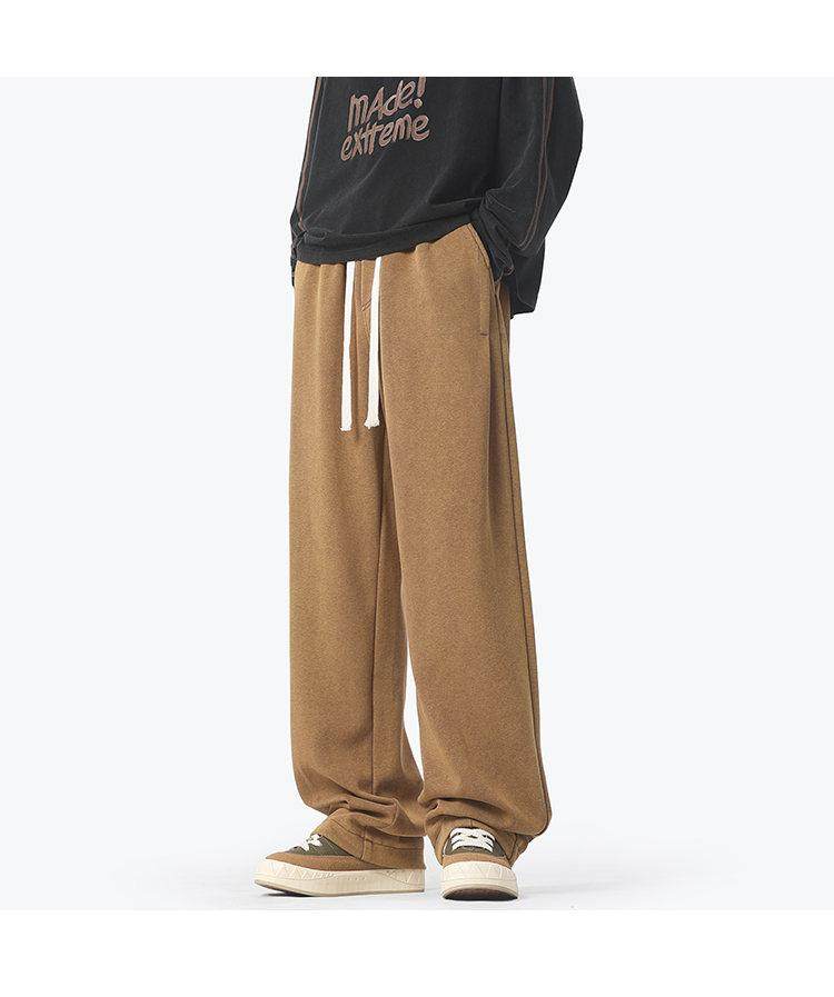 Washed Vintage-Style Curved Hem Sweatpants for Men, Autumn and Winter Fleece-Lined Straight-Leg Drapey Wide-Leg Pants, Lazy Style American Casual Pants