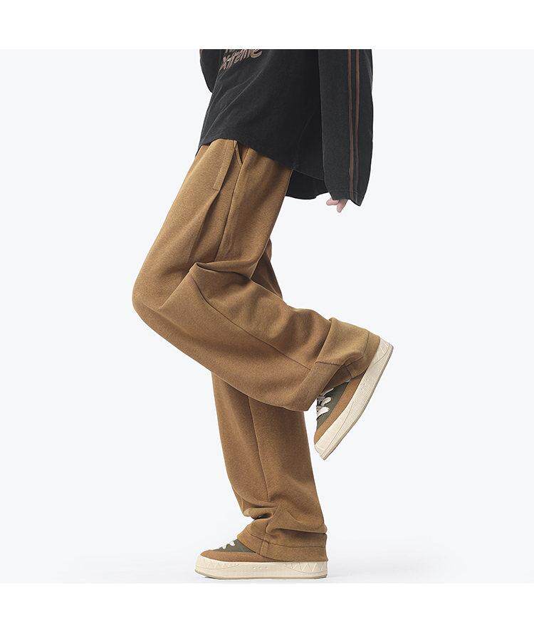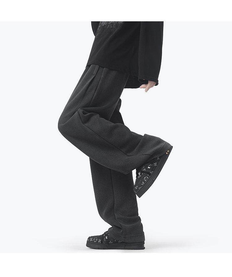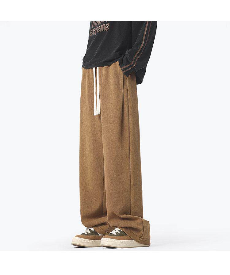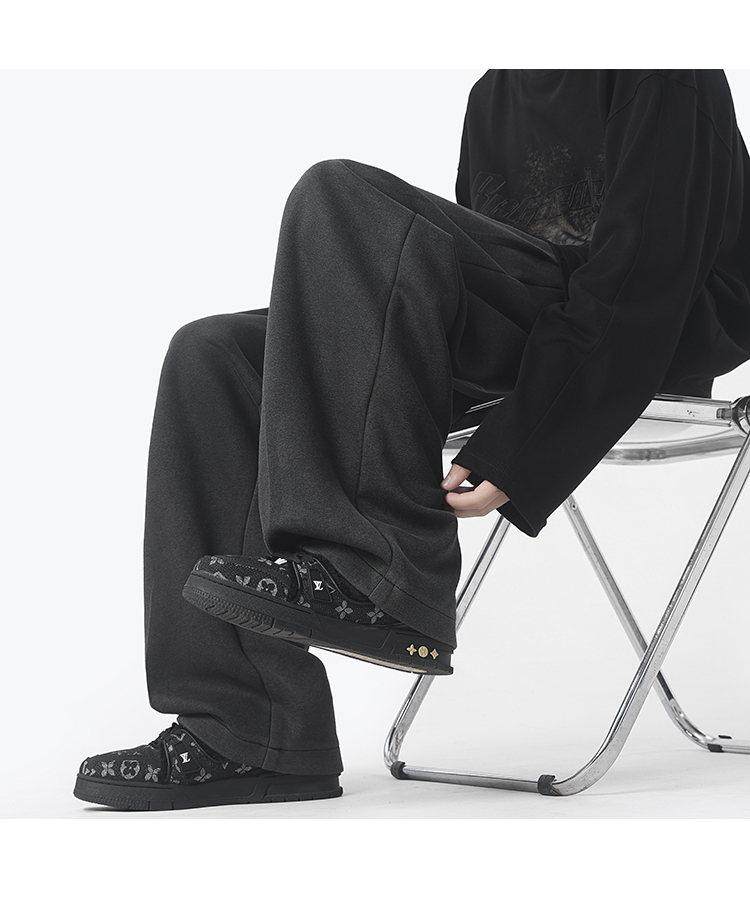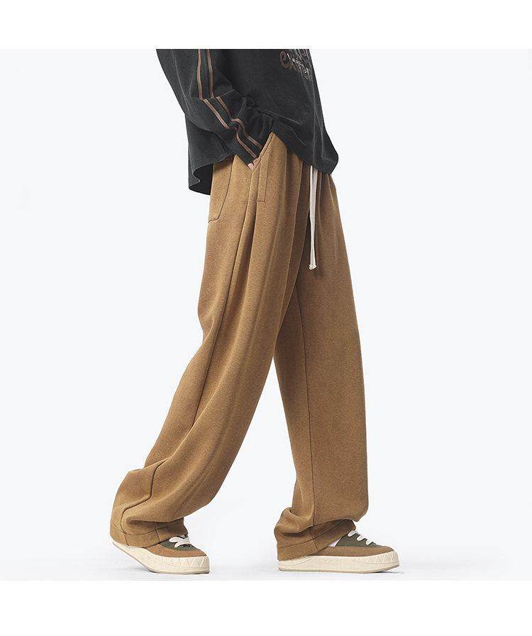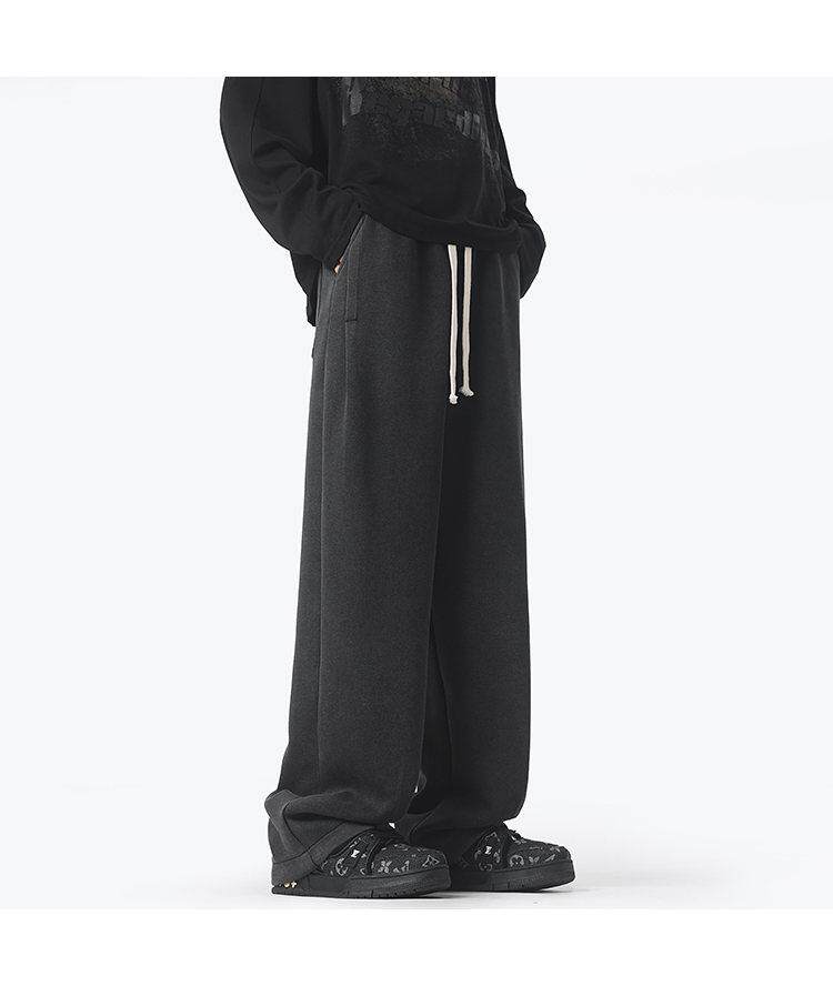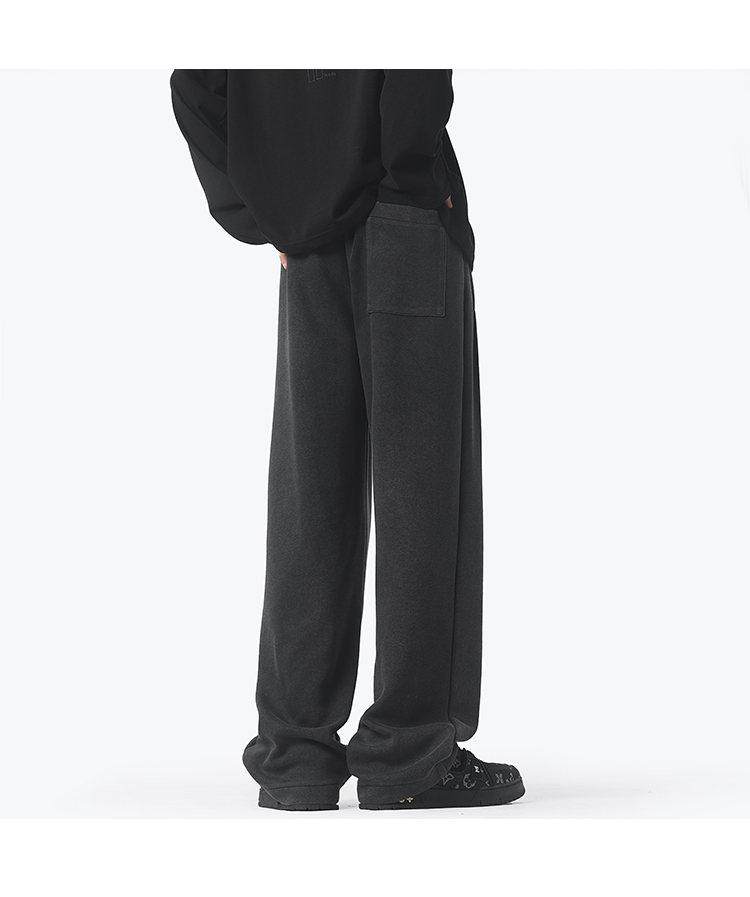 Washed Vintage-Style Curved Hem Sweatpants for Men, Autumn and Winter Fleece-Lined Straight-Leg Drapey Wide-Leg Pants, Lazy Style American Casual Pants