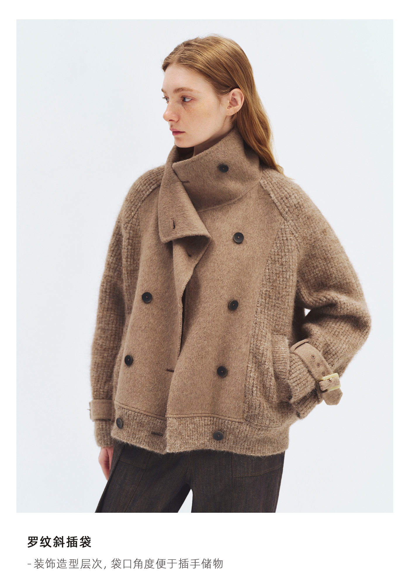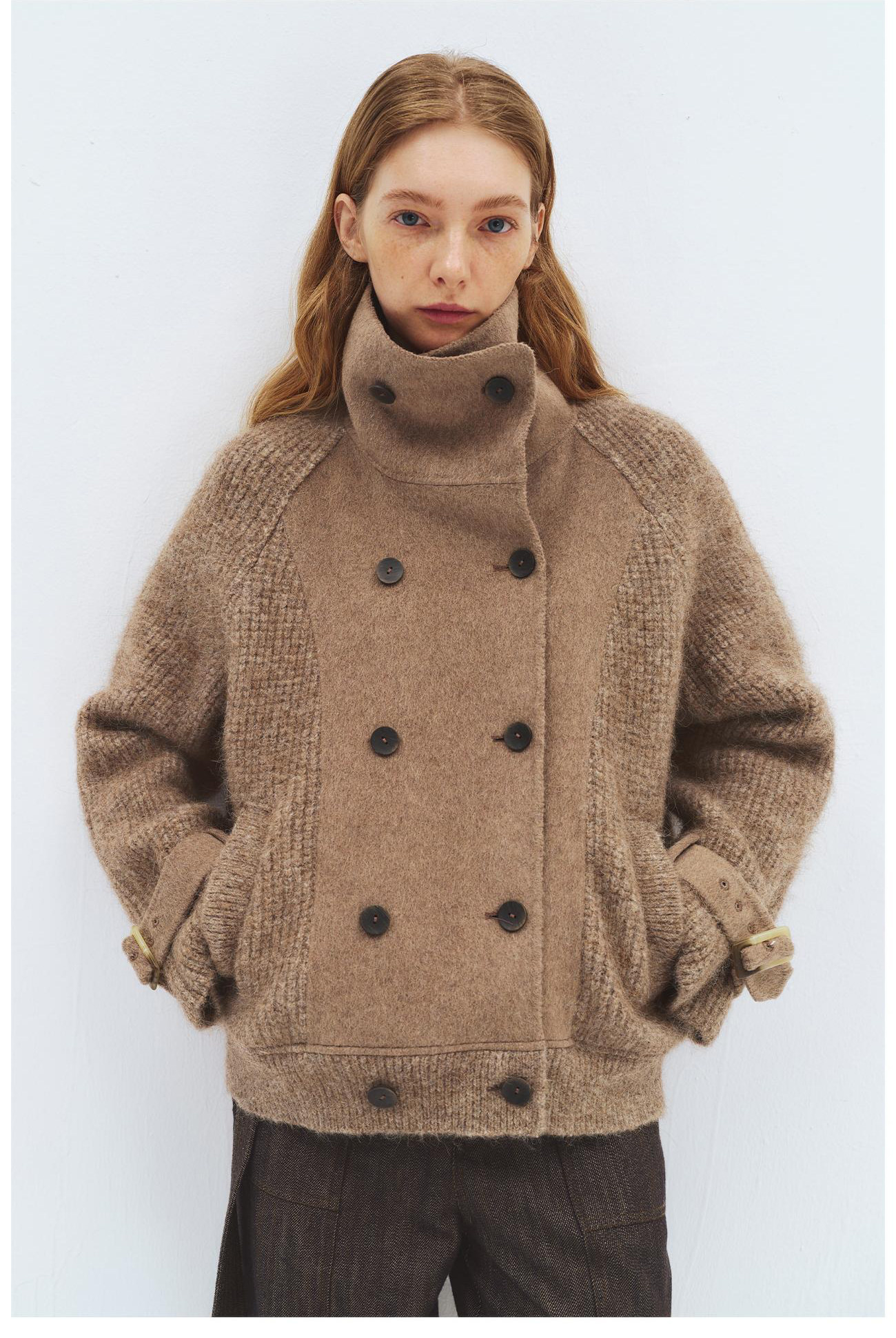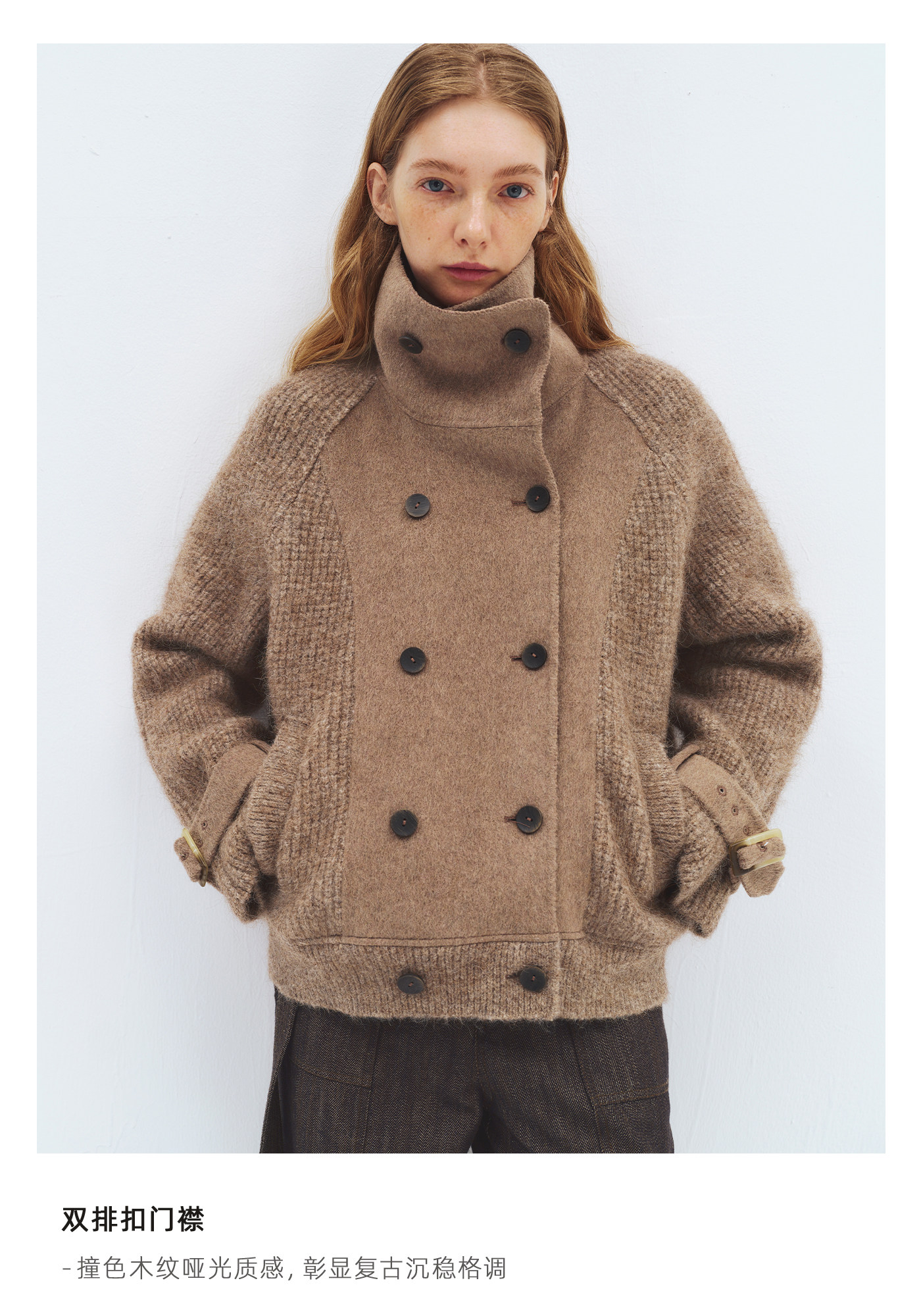 Someone Sometimes52% Alpaca Wool Double-Sided Woolen Deconstructed Patchwork Double-Breasted Knitted Jacket