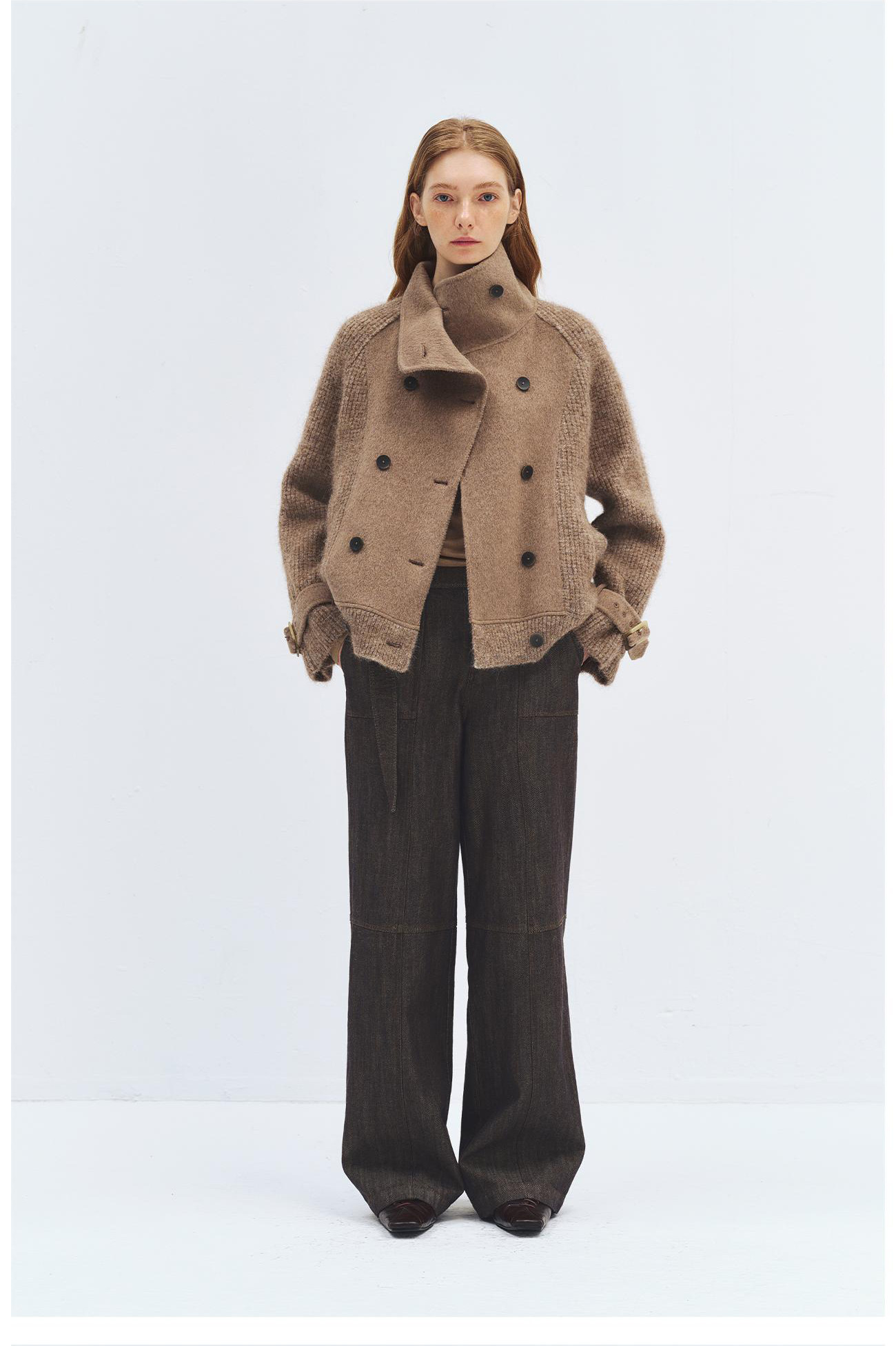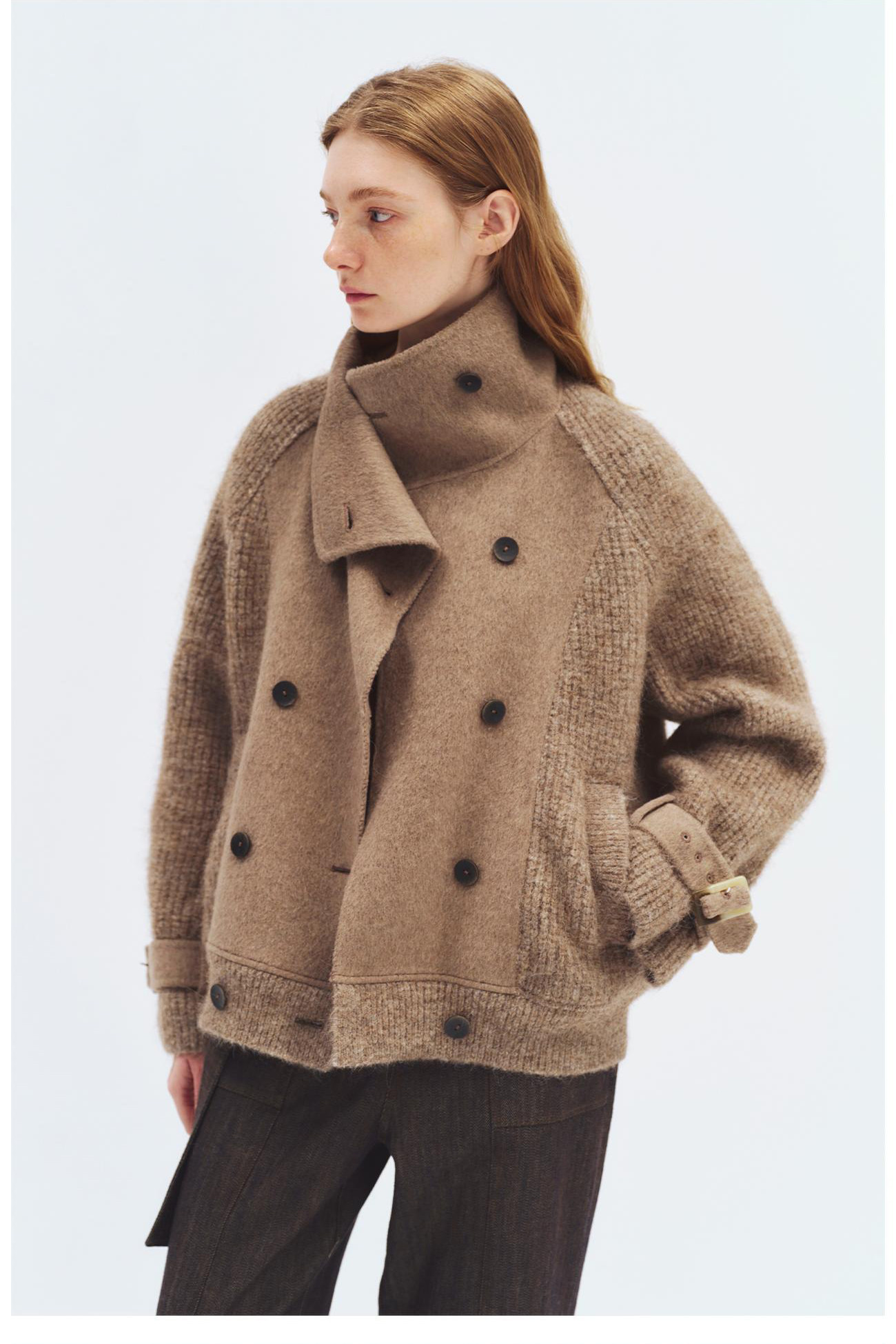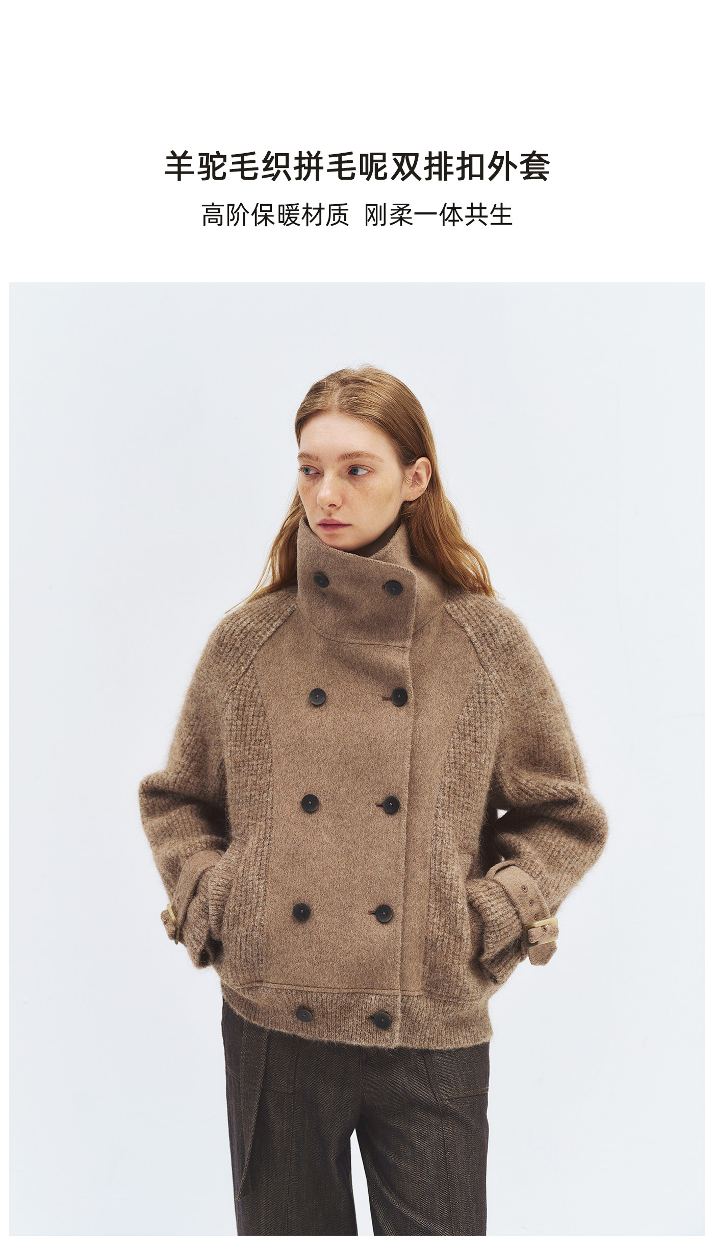 Someone Sometimes52% Alpaca Wool Double-Sided Woolen Deconstructed Patchwork Double-Breasted Knitted Jacket