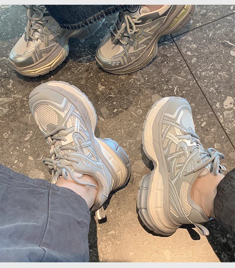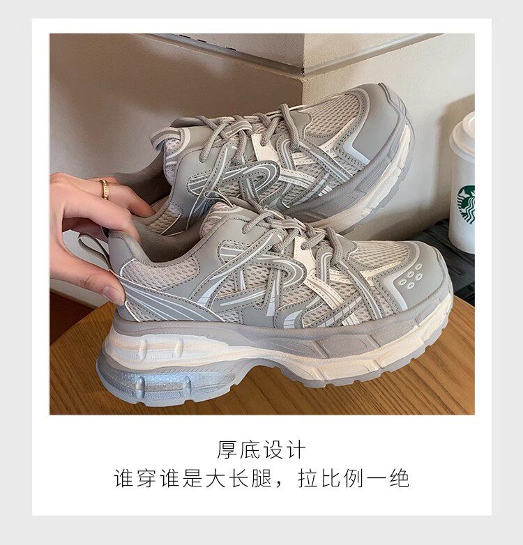 Hong Kong Thick-Soled Lace-Up Dad Shoes for Women 2026 Spring and Autumn New Versatile Retro Height-Increasing Soft-Soled Casual Sneakers