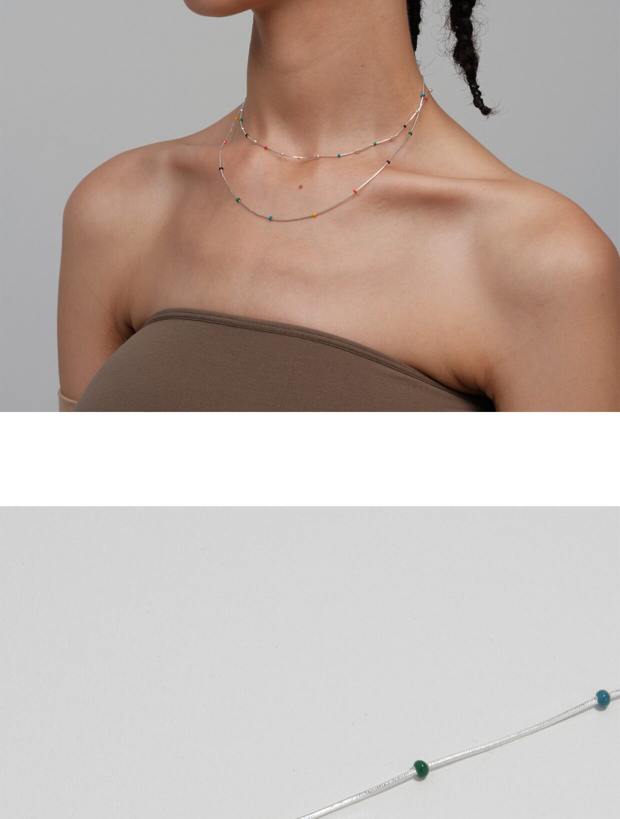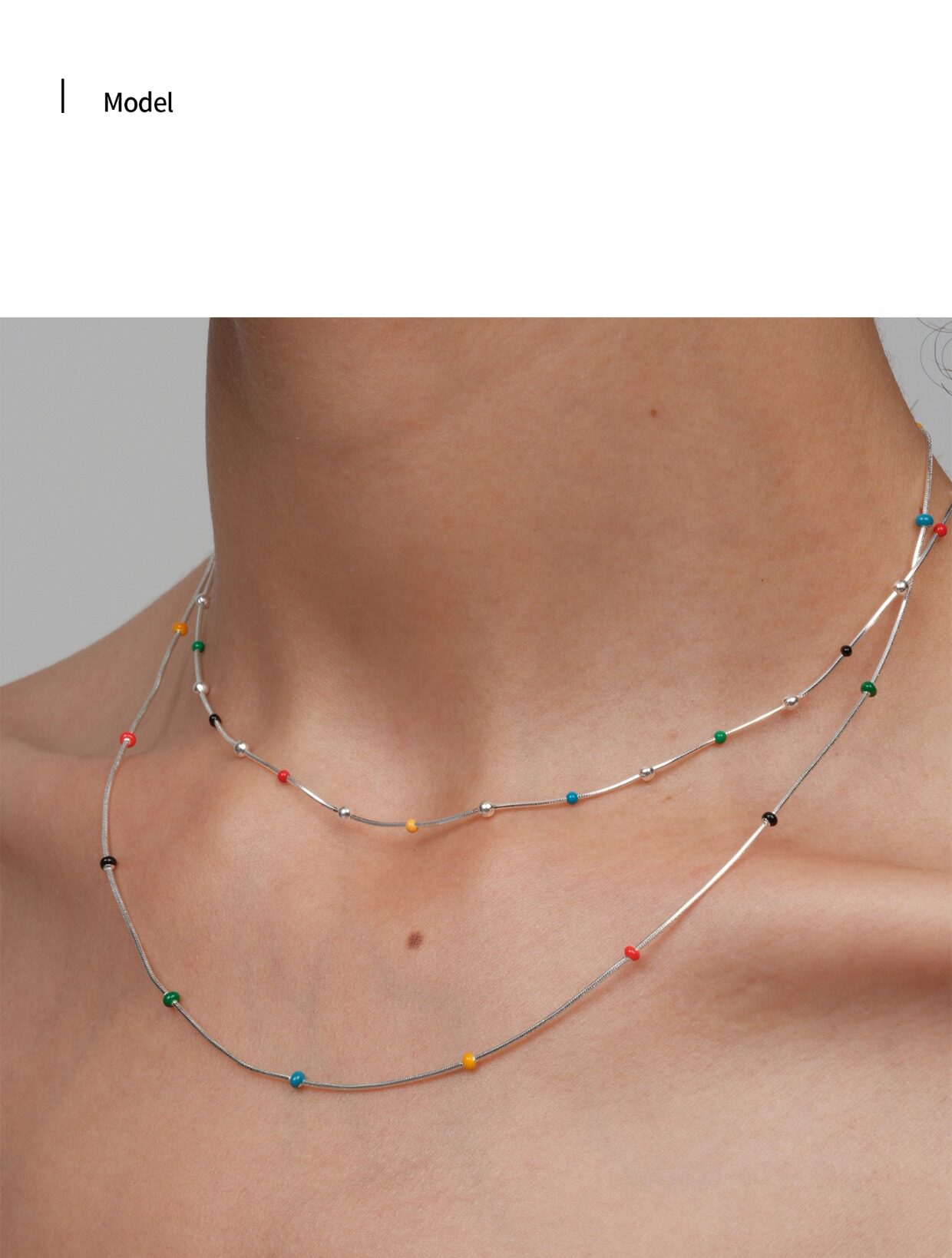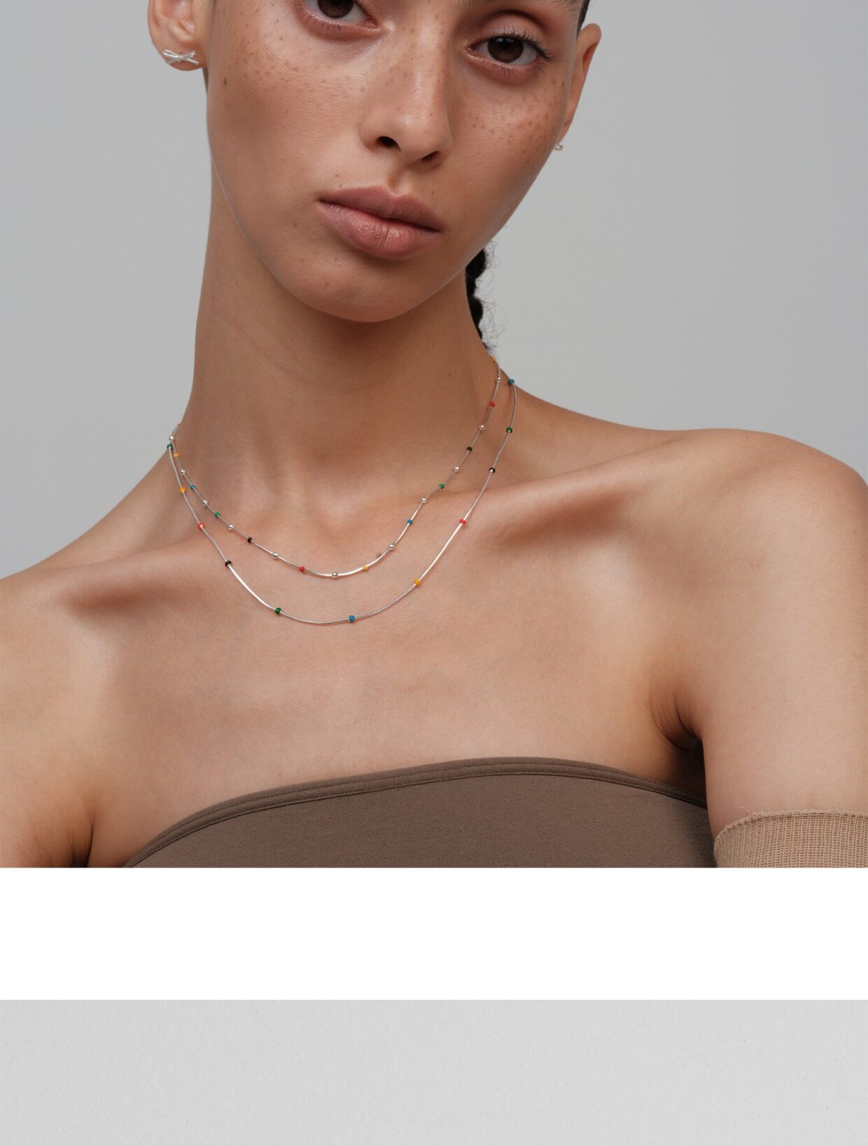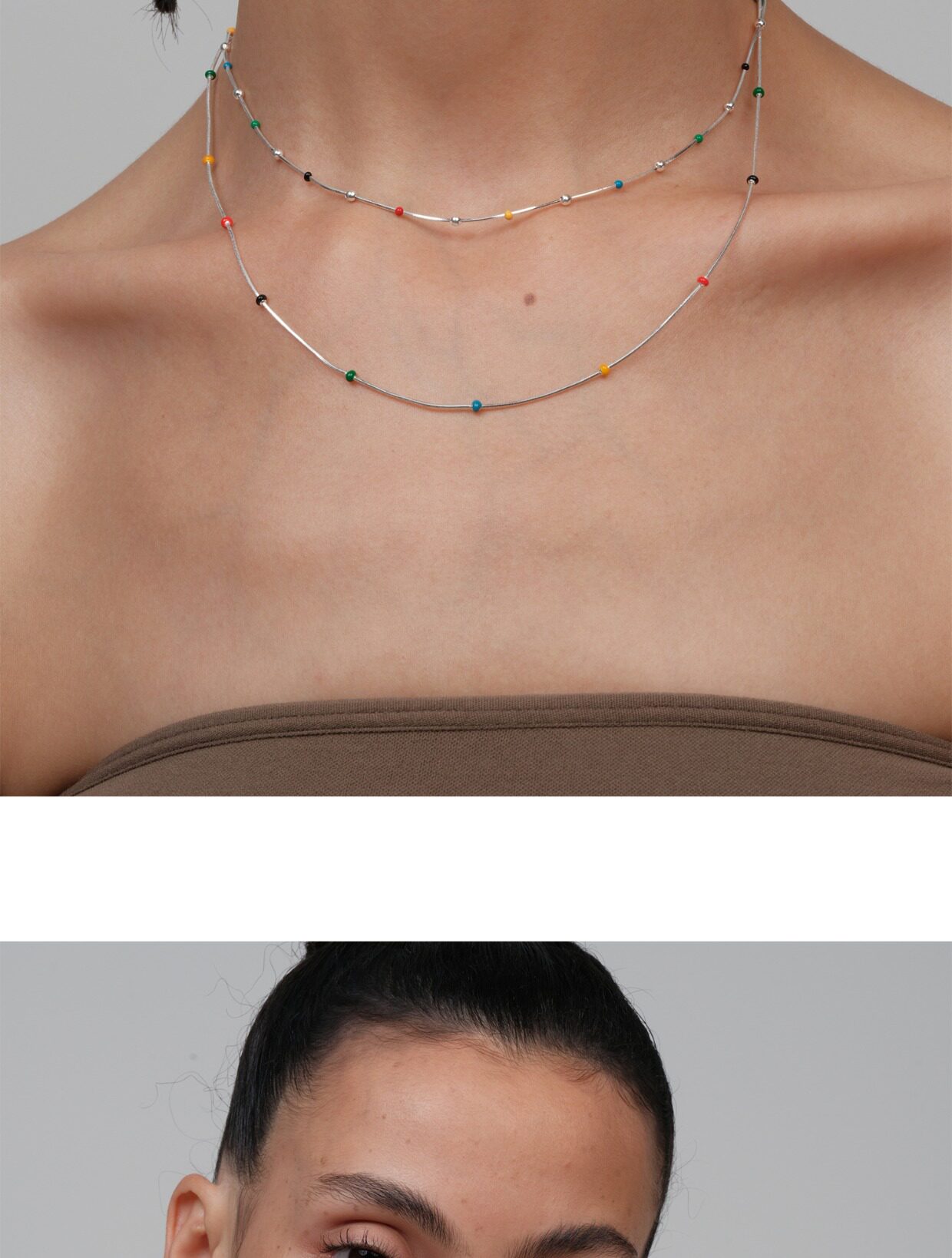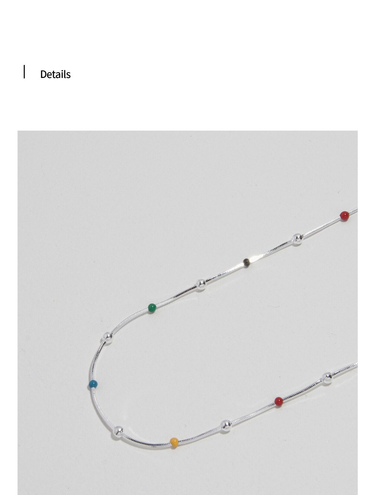 【Cnhnon Fat Store】Rainbow Bean Enamel Bead Snake Bone Chain Simple and Fashionable Clavicle Necklace