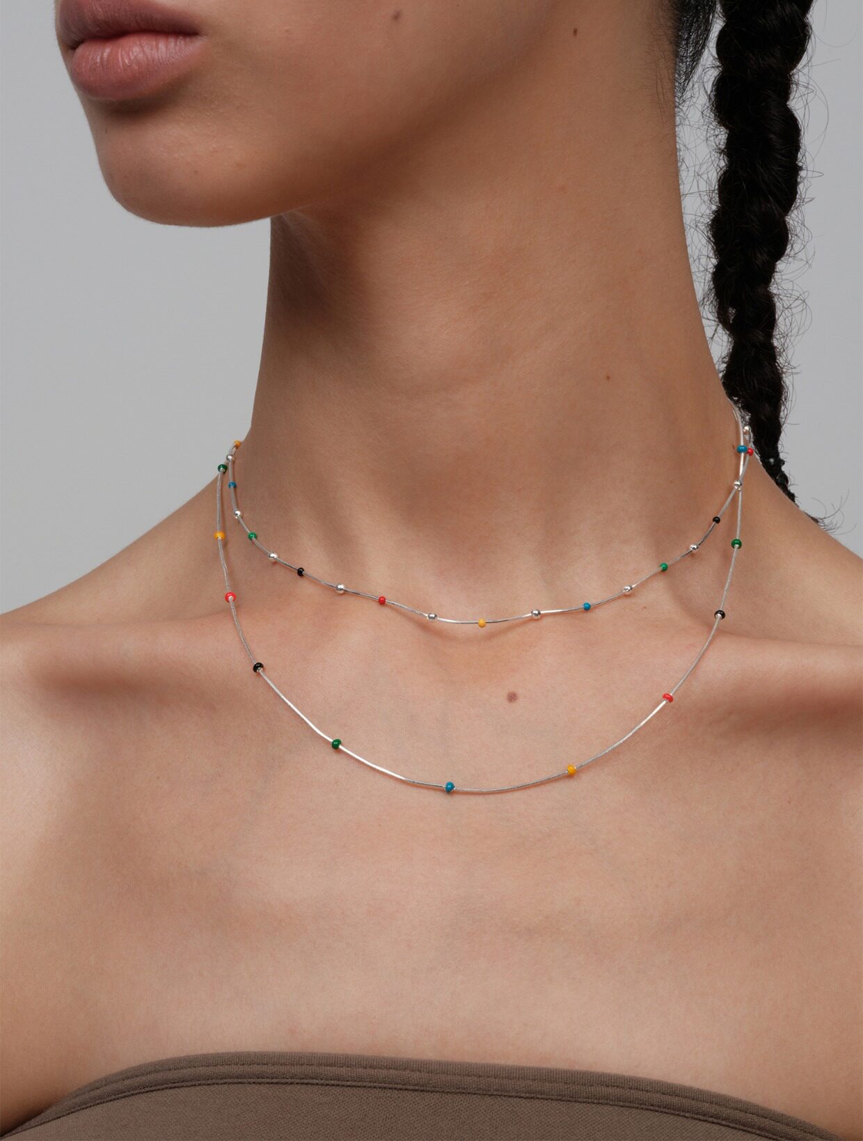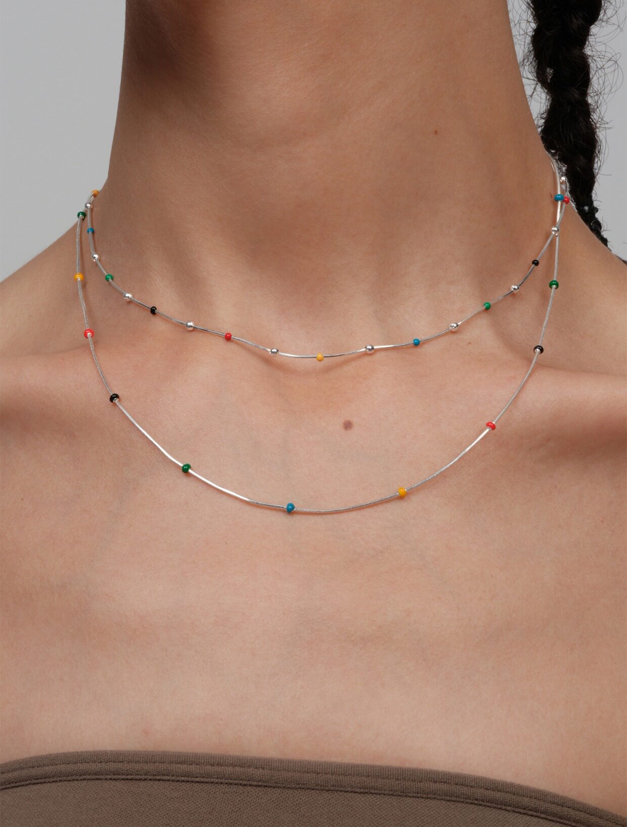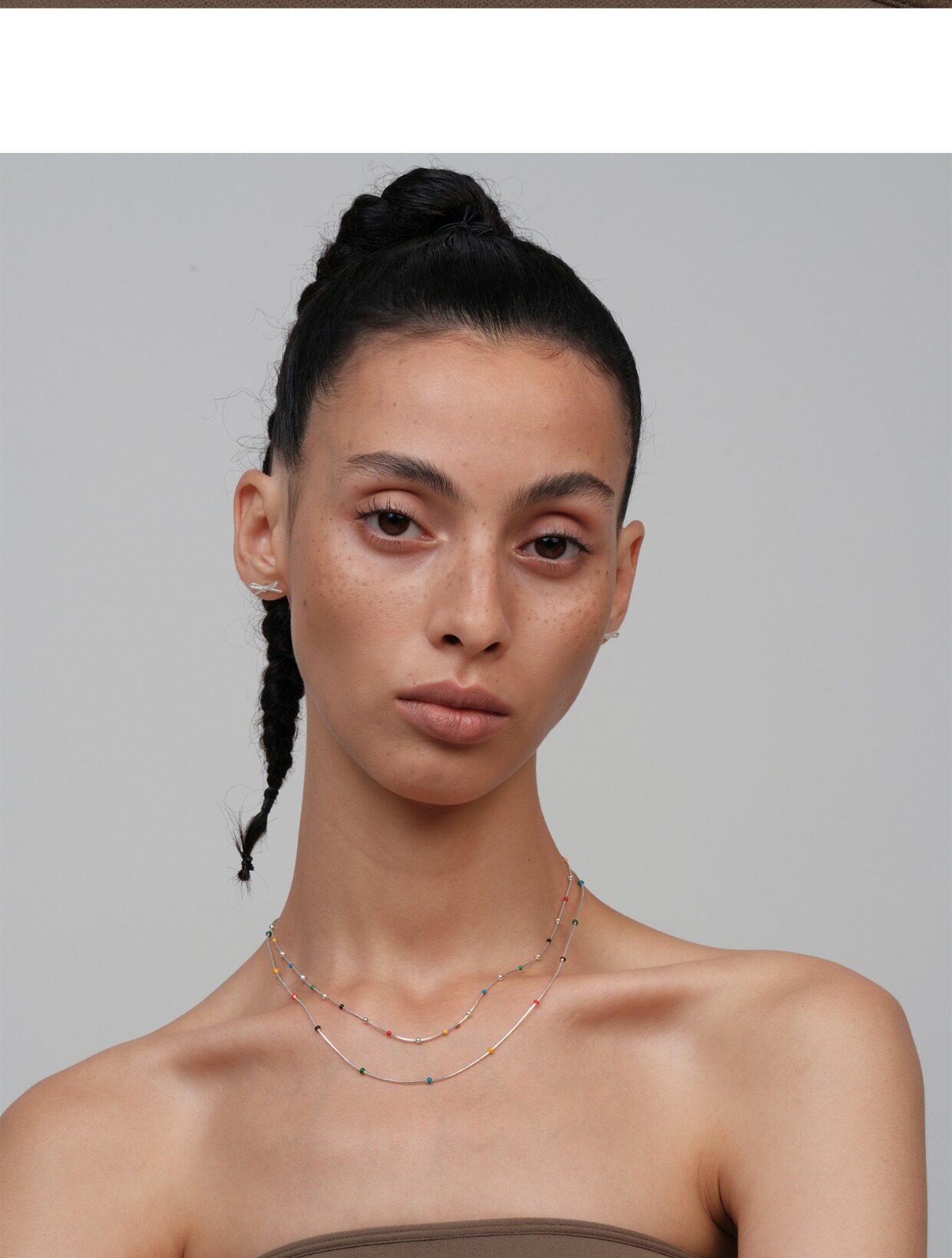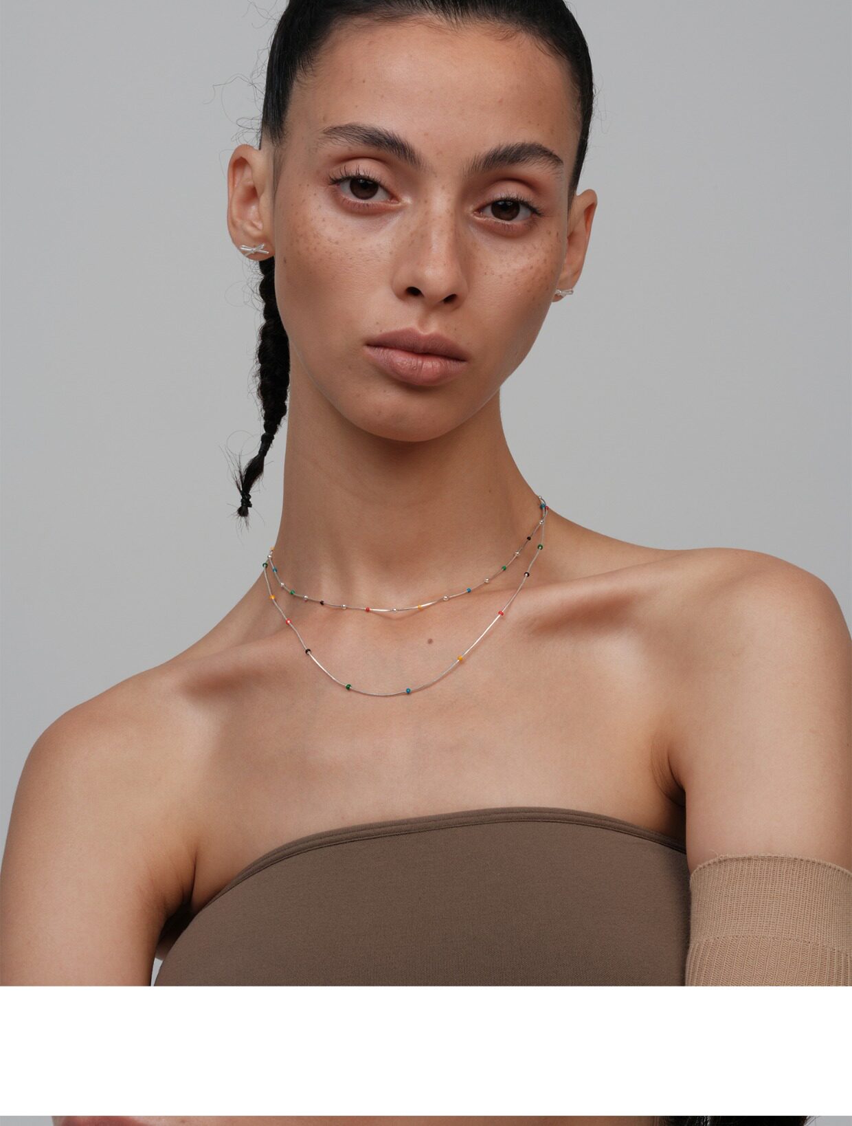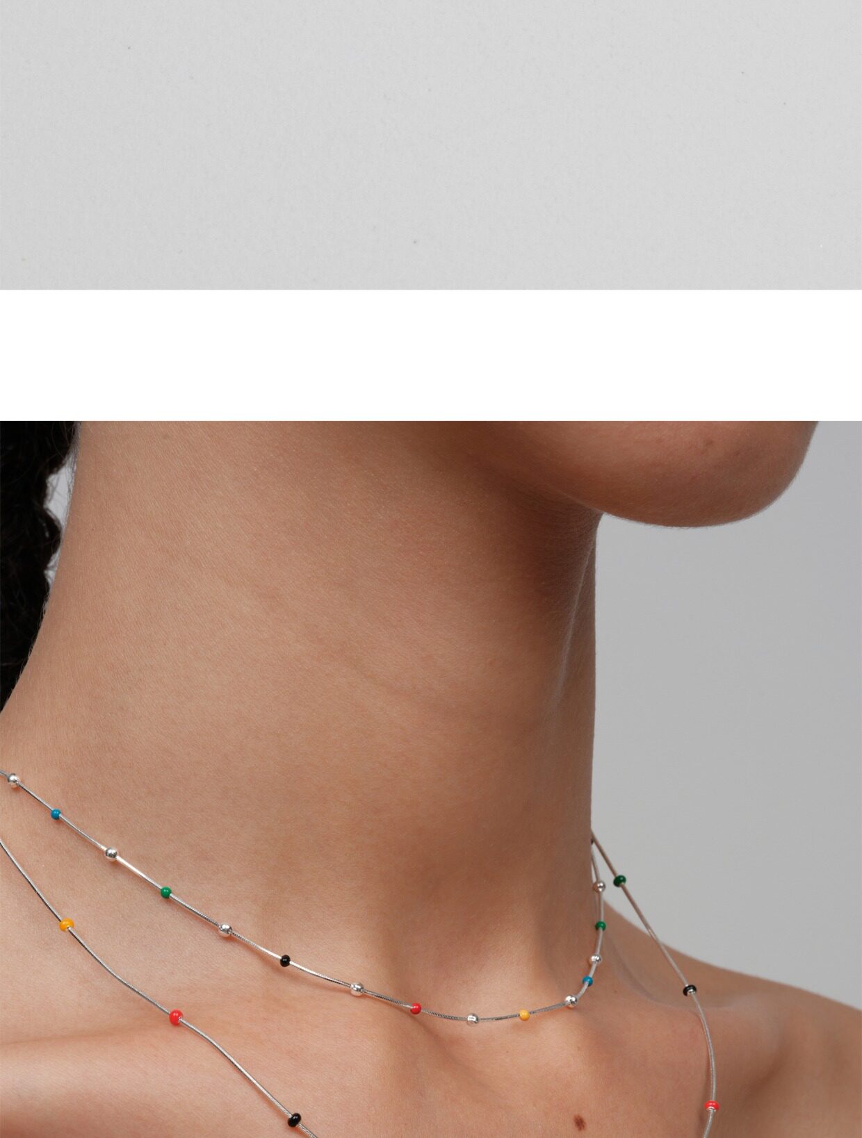 【Cnhnon Fat Store】Rainbow Bean Enamel Bead Snake Bone Chain Simple and Fashionable Clavicle Necklace