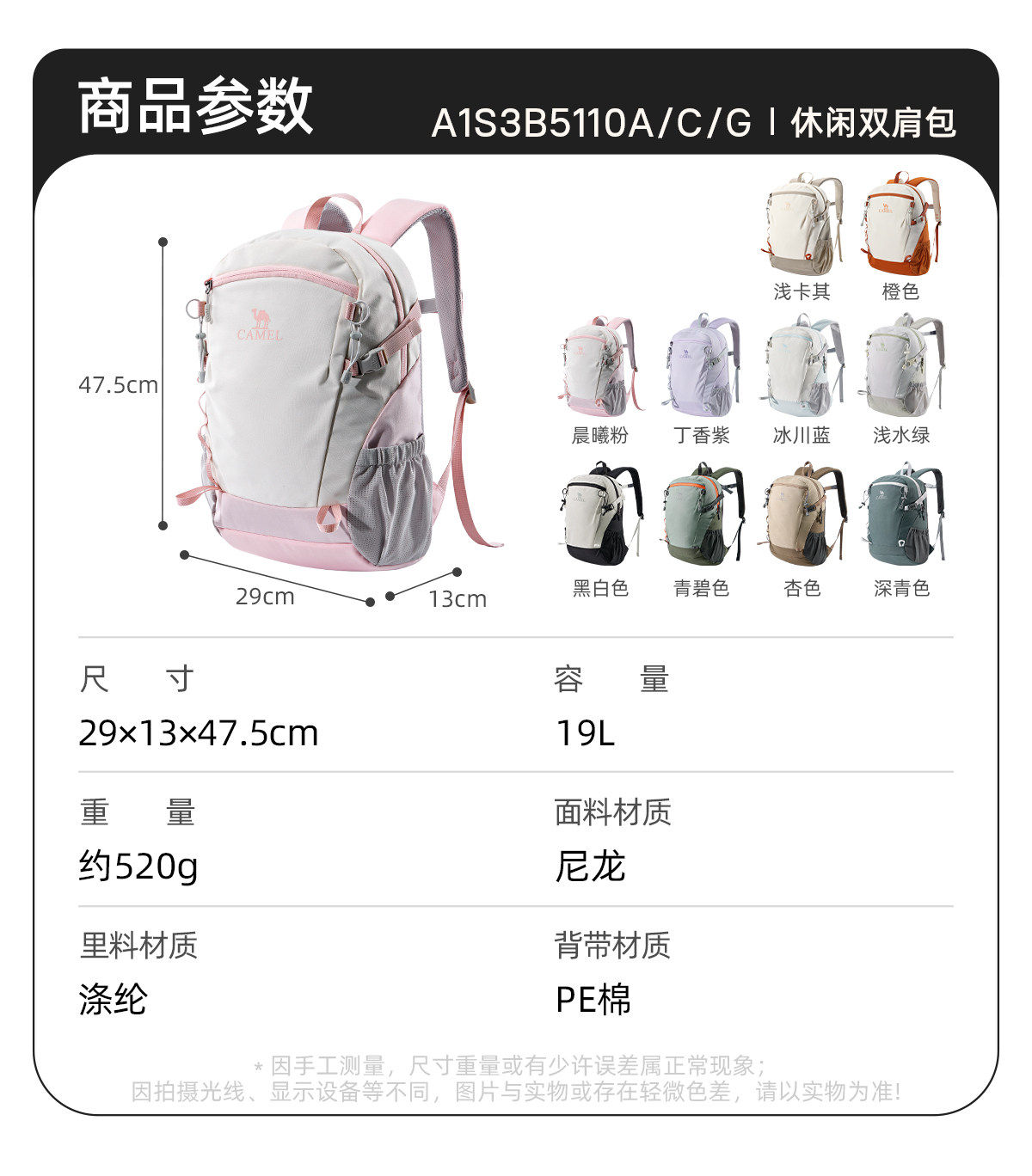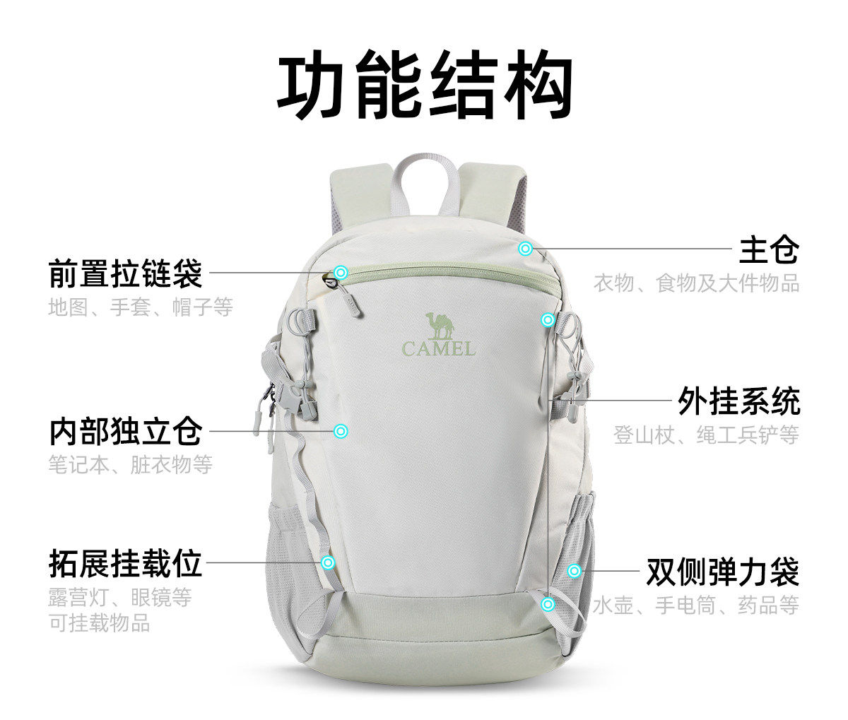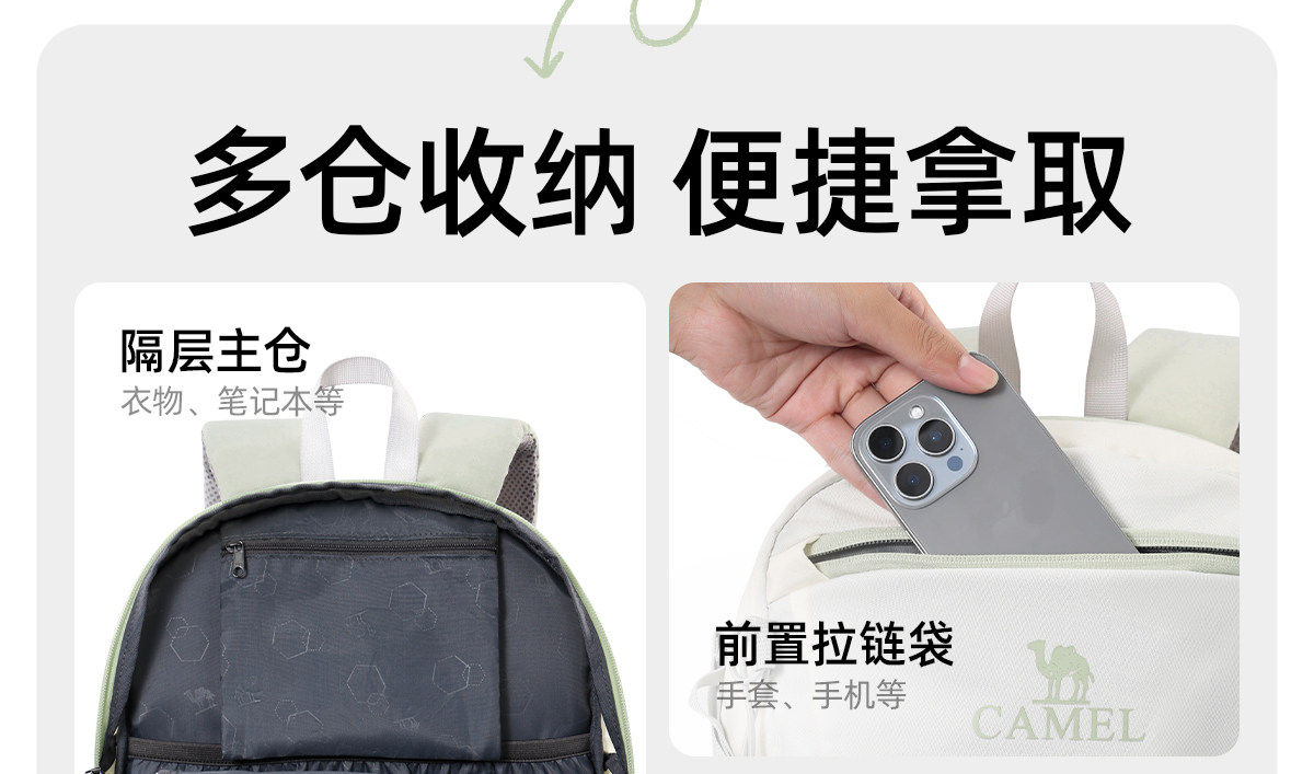 Camel Outdoor Backpack Ice Cream Bag Hiking Bag Women's Lightweight Large-Capacity Travel Men's College Student Travel Backpack