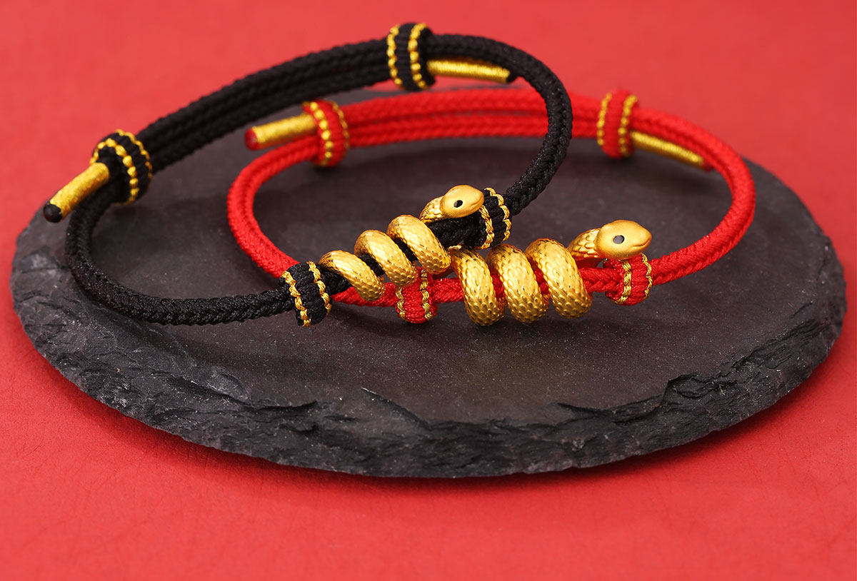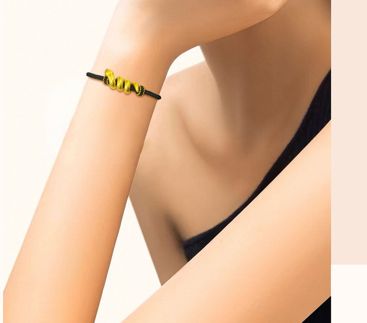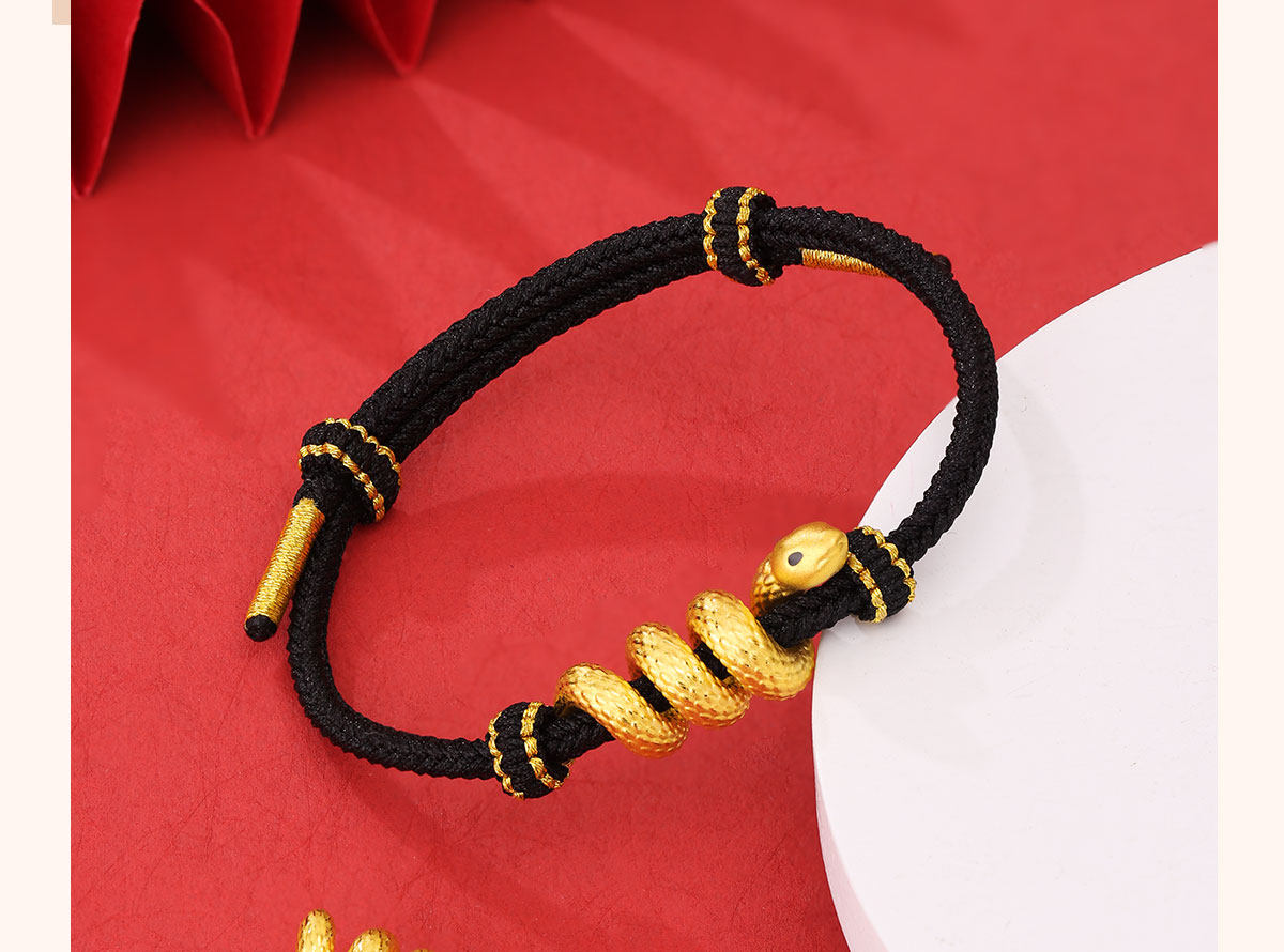 Gold Snake Bracelet Zodiac Snake Year 999 Pure Gold Snake Brings Good Luck Braided Rope Fortune Bead Gold Bracelet