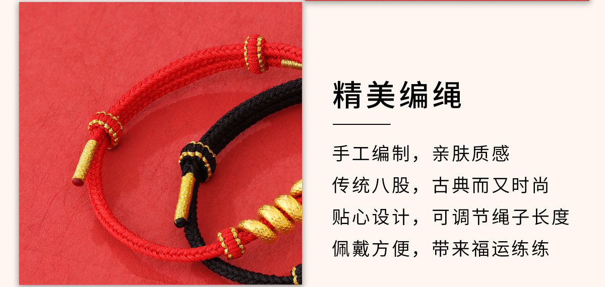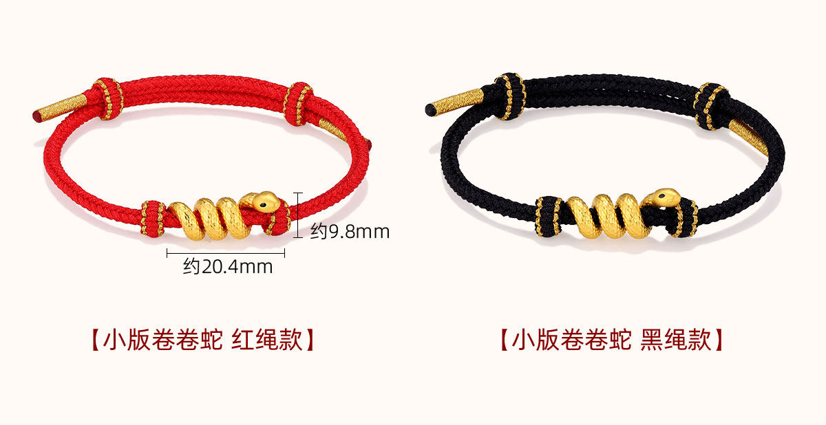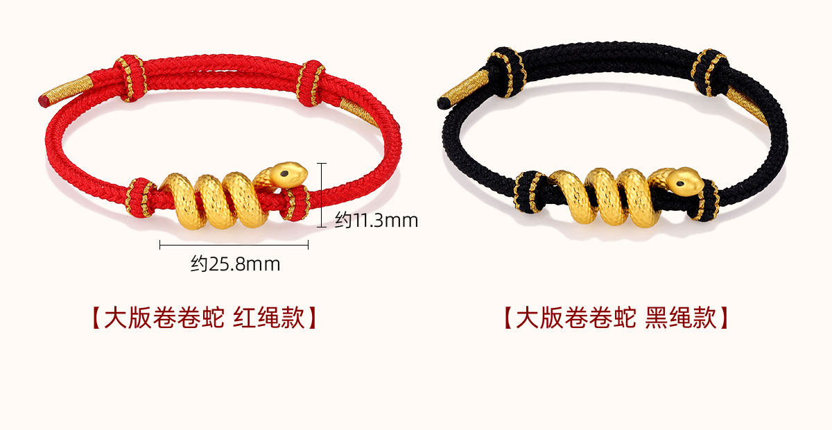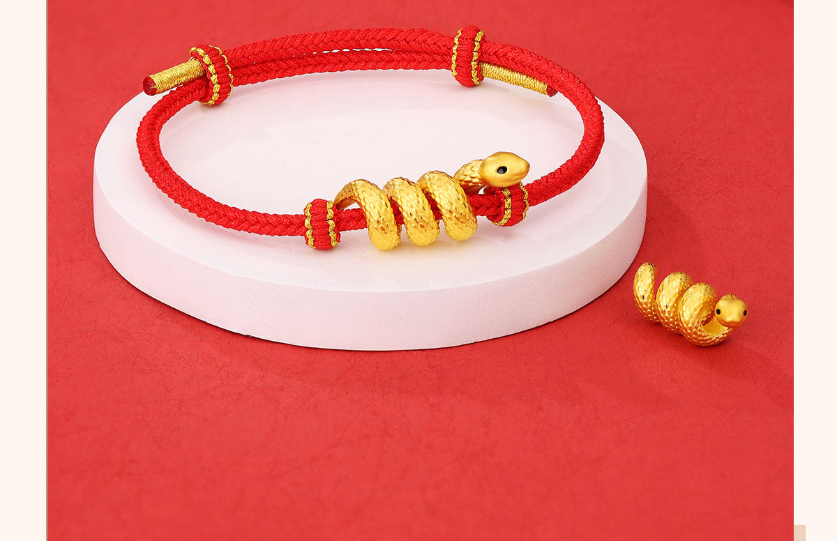 Gold Snake Bracelet Zodiac Snake Year 999 Pure Gold Snake Brings Good Luck Braided Rope Fortune Bead Gold Bracelet