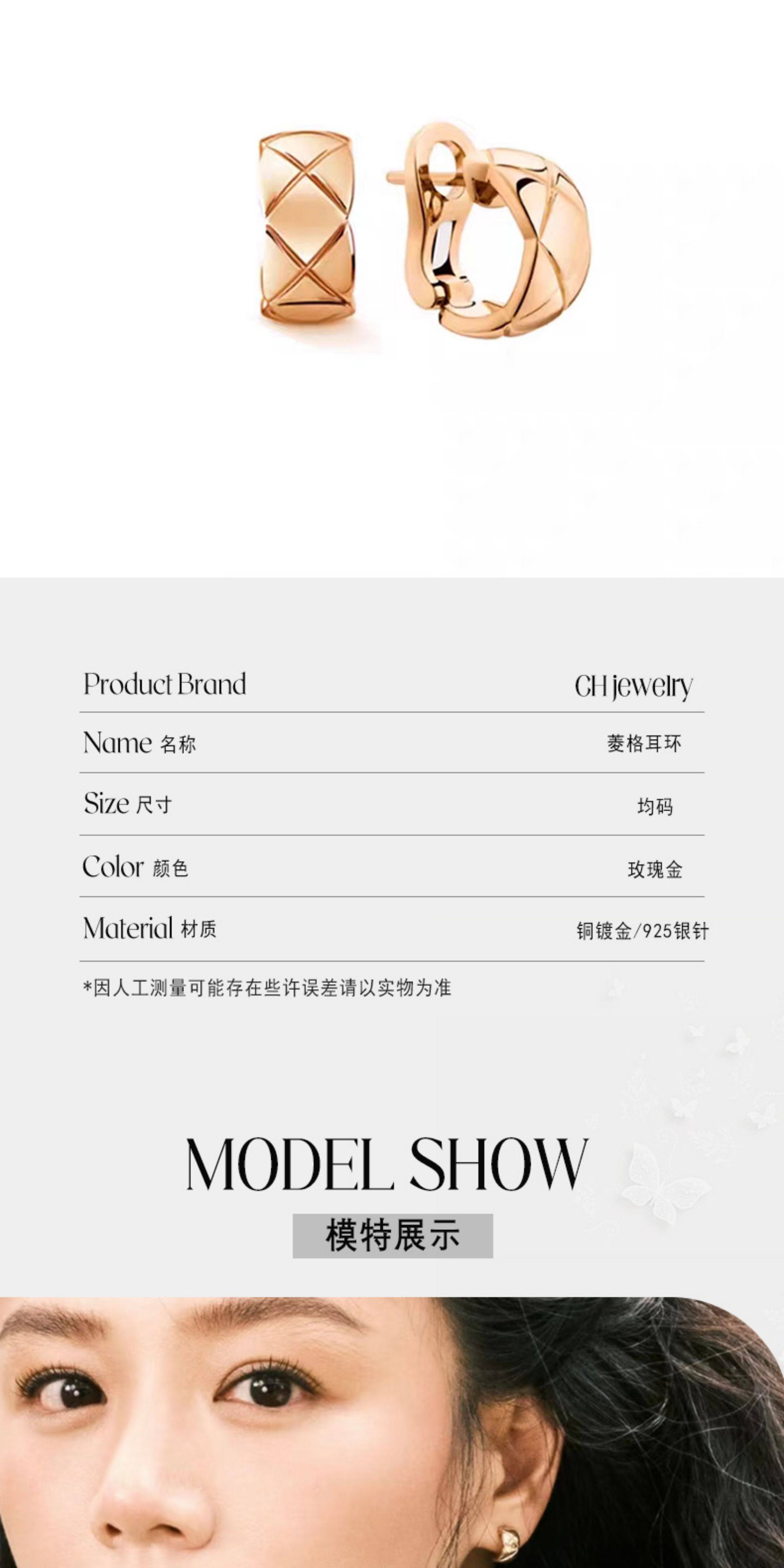 Ch Jewelry Earrings Jennie Ma Sichen Same Style Coco Classic Quilted Narrow Version Small Chanel-Style Hoop Earrings for Women