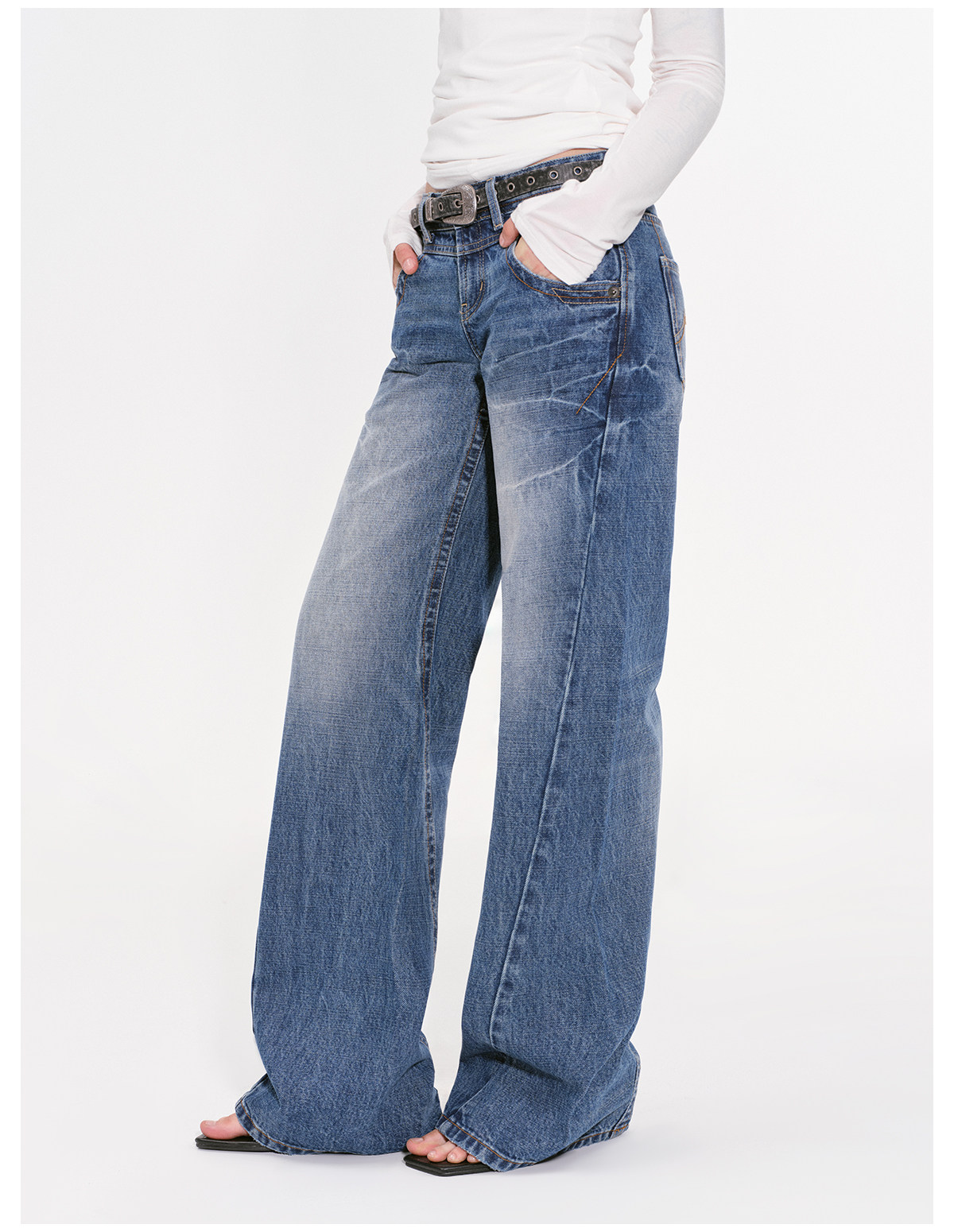 Escape from Chigang West: Vintage Washed Blue Jeans for Women, Autumn American High Street Style, Low-Waisted, Loose Straight-Leg Wide-Leg Pants
