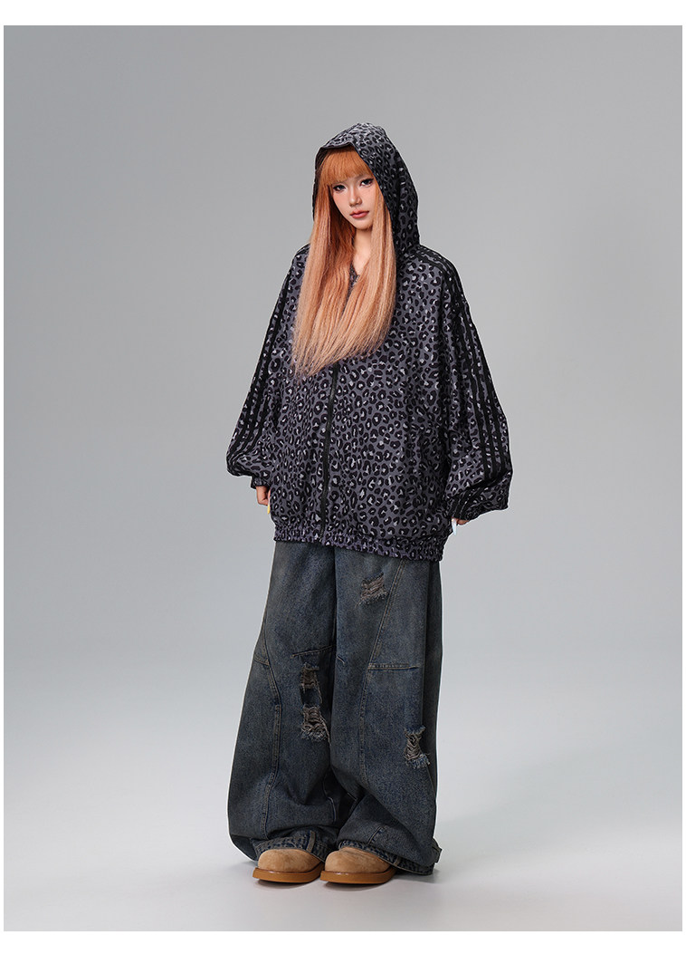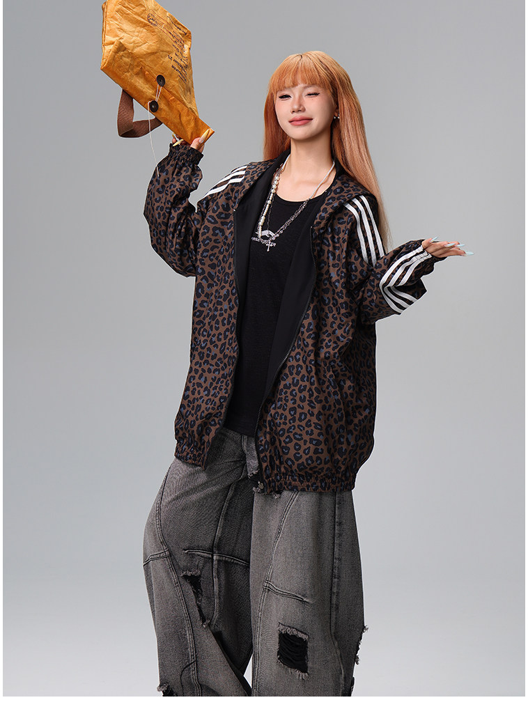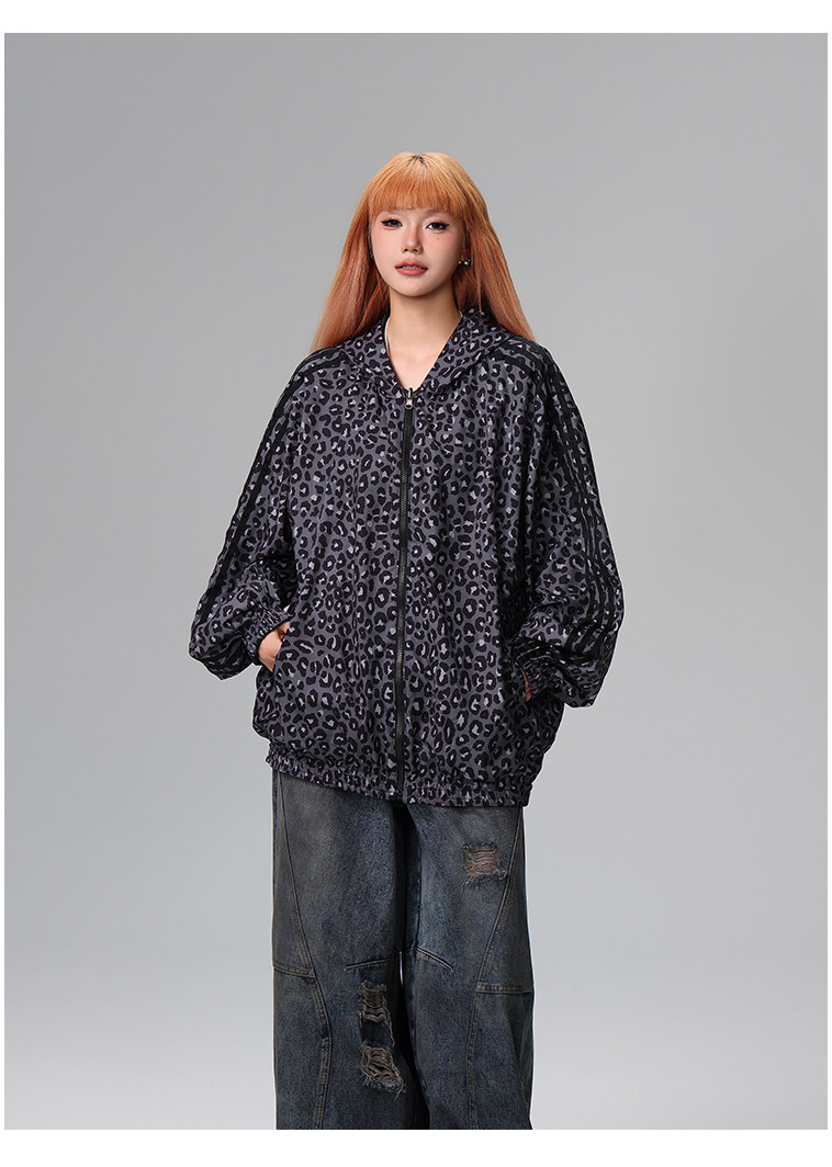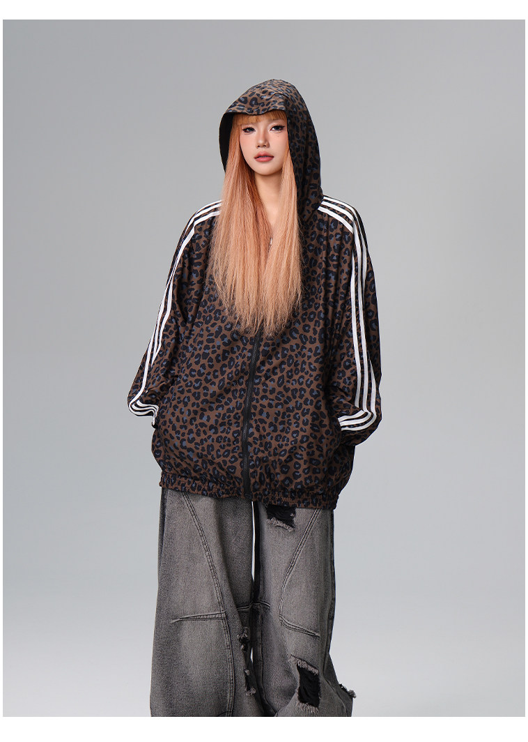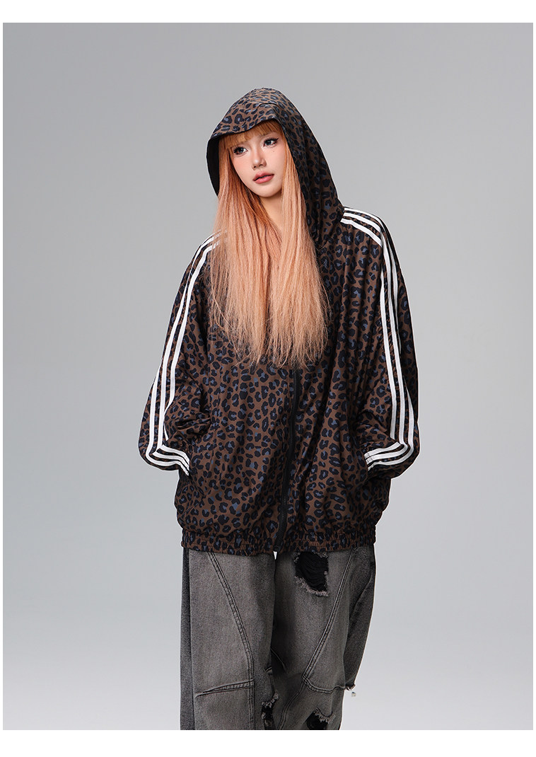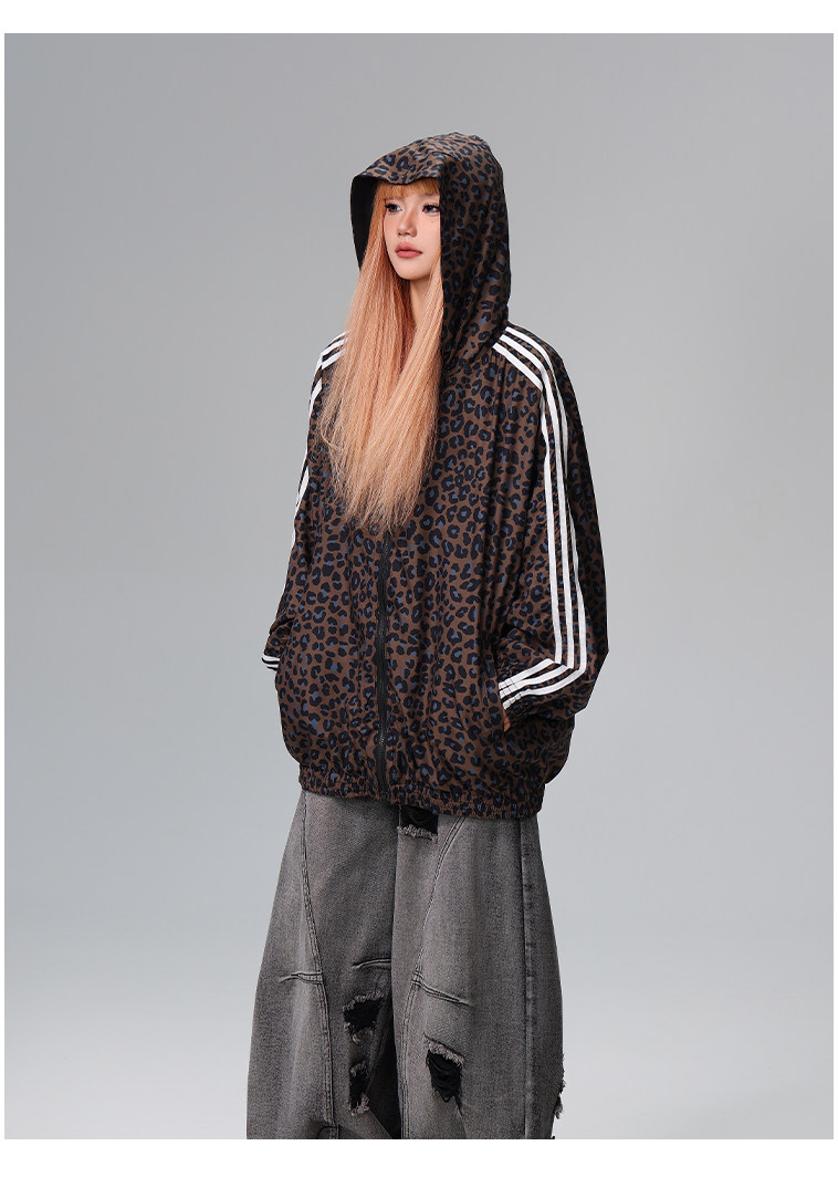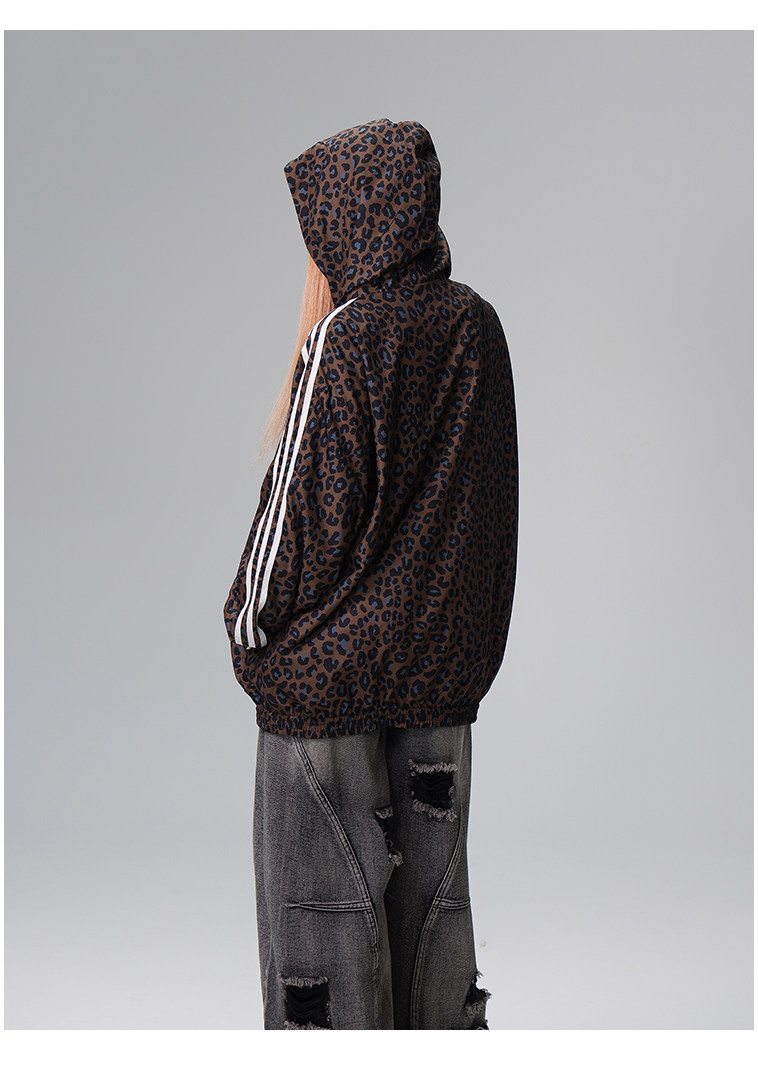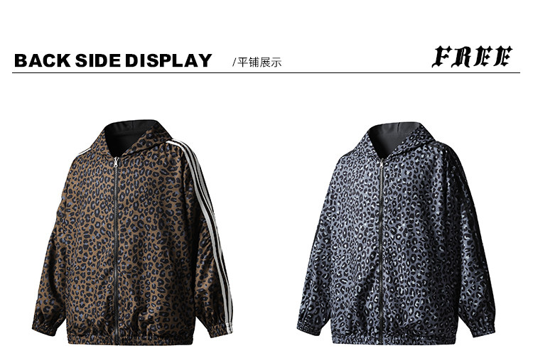 Free Center Reversible American Retro Leopard Print Jacket for Men and Women, Loose Hooded Casual Coat, Autumn Top