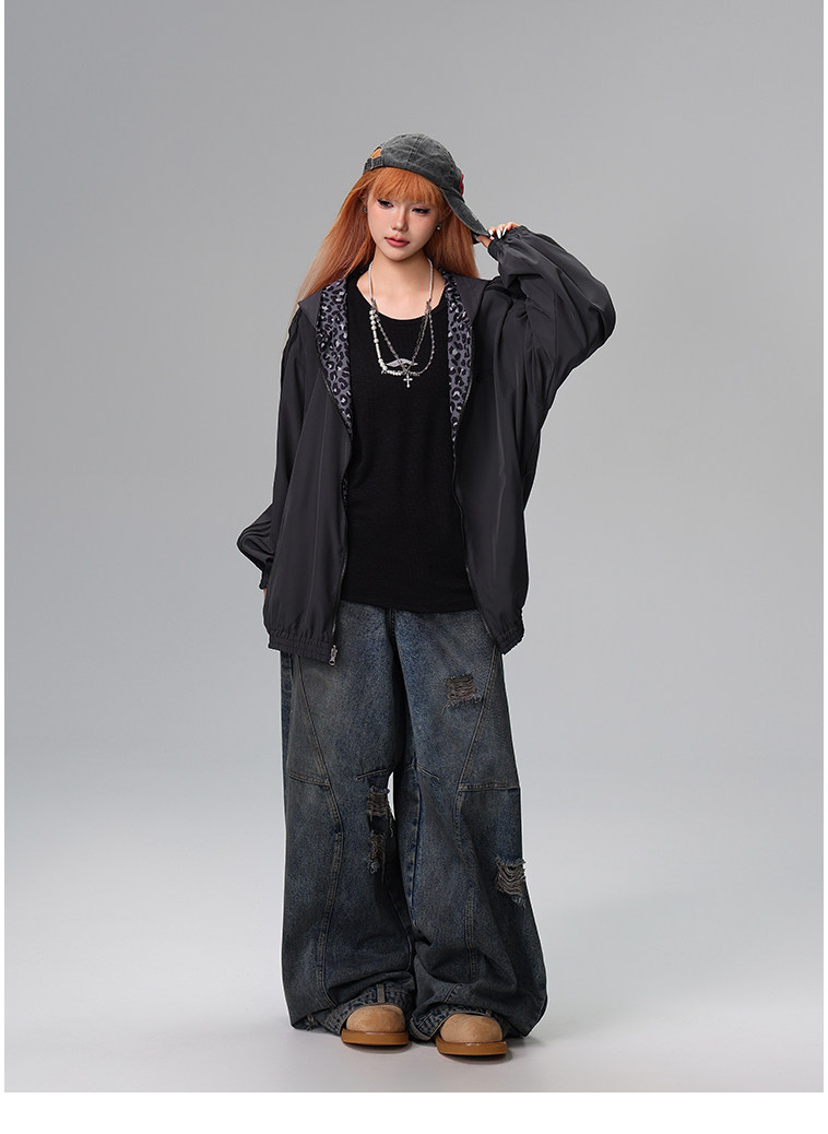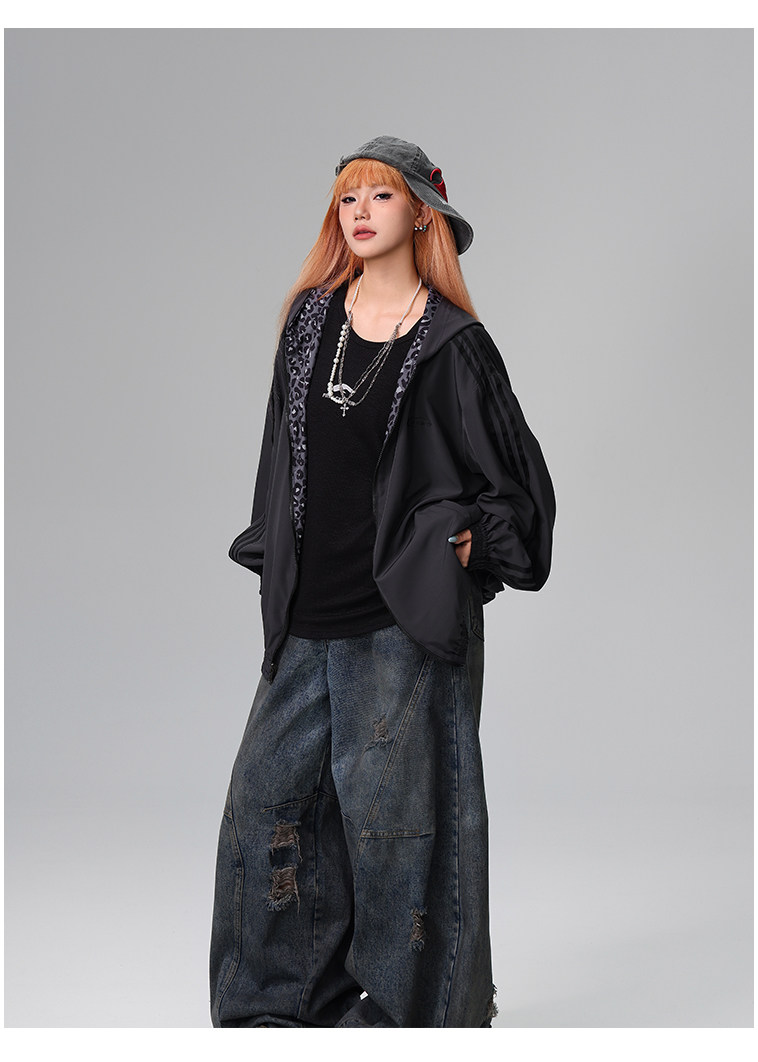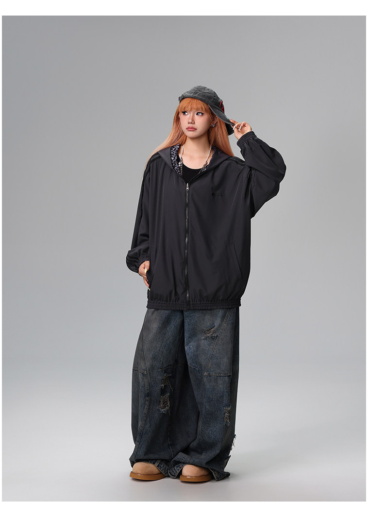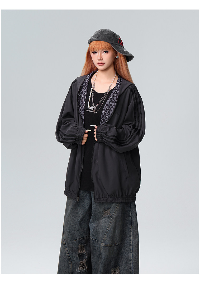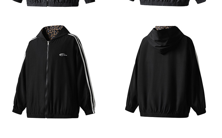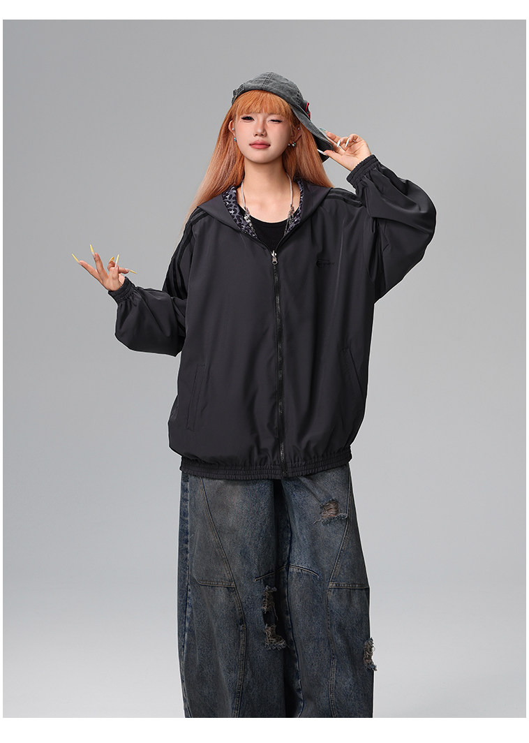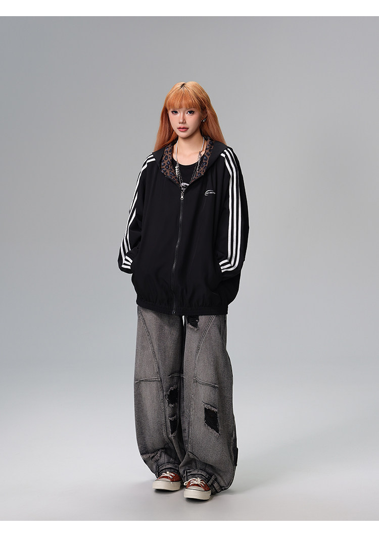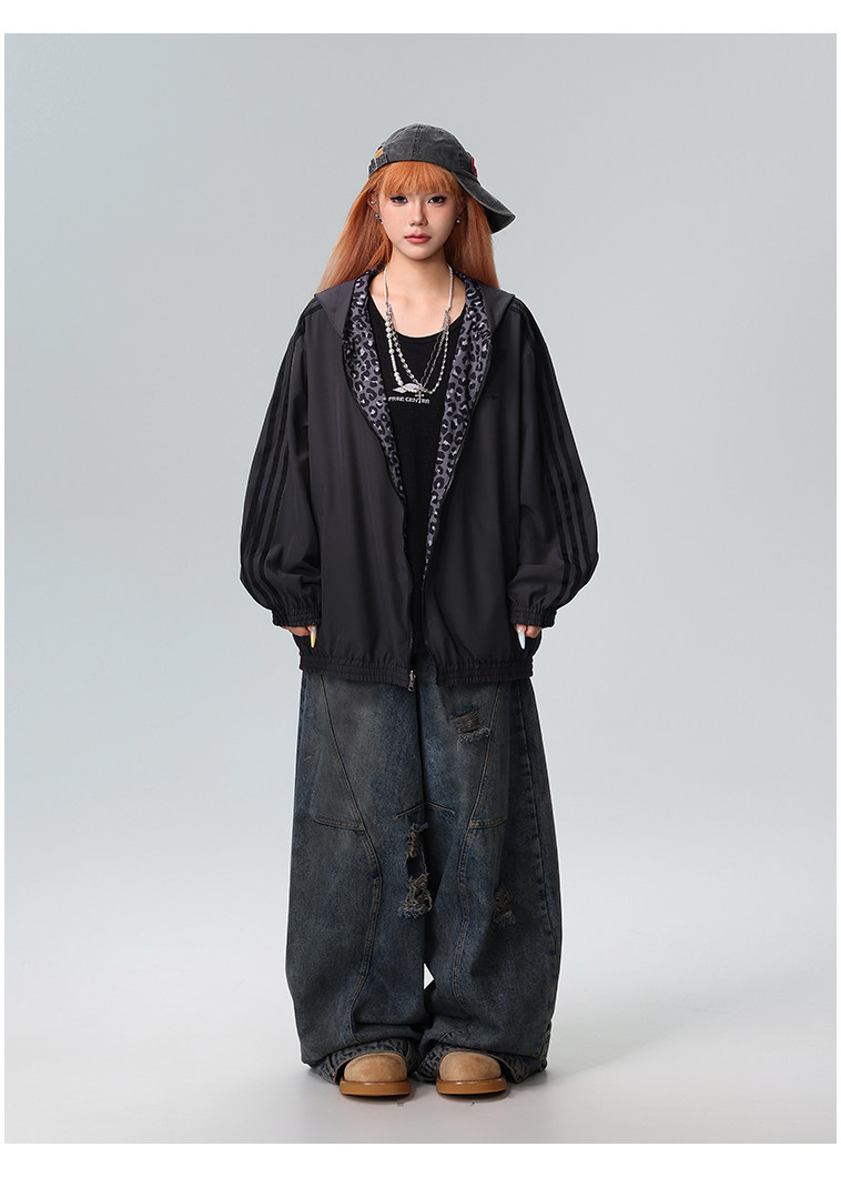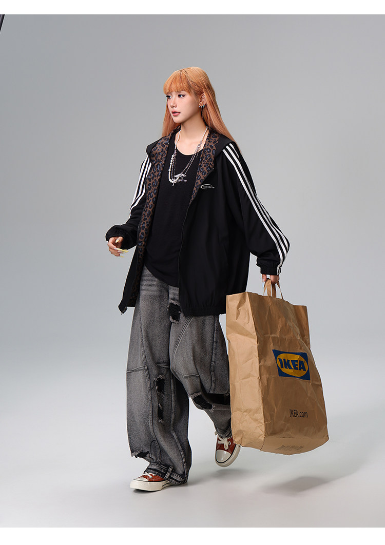 Free Center Reversible American Retro Leopard Print Jacket for Men and Women, Loose Hooded Casual Coat, Autumn Top
