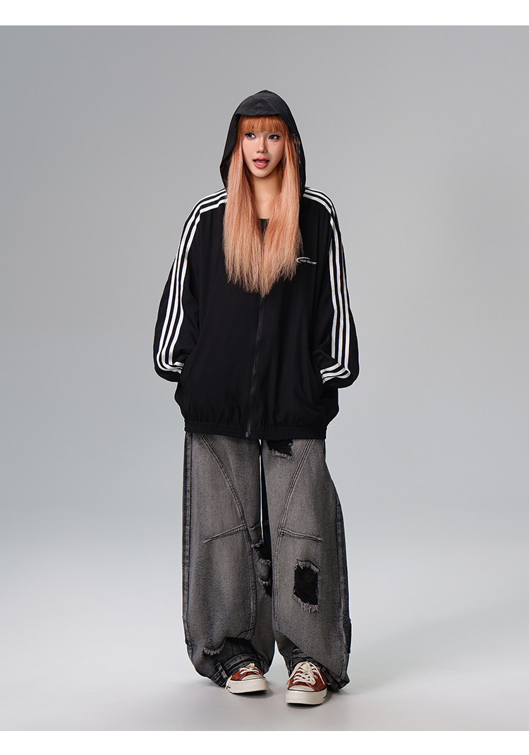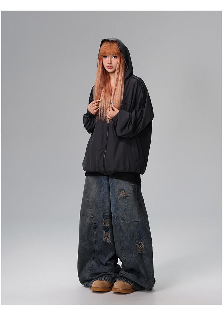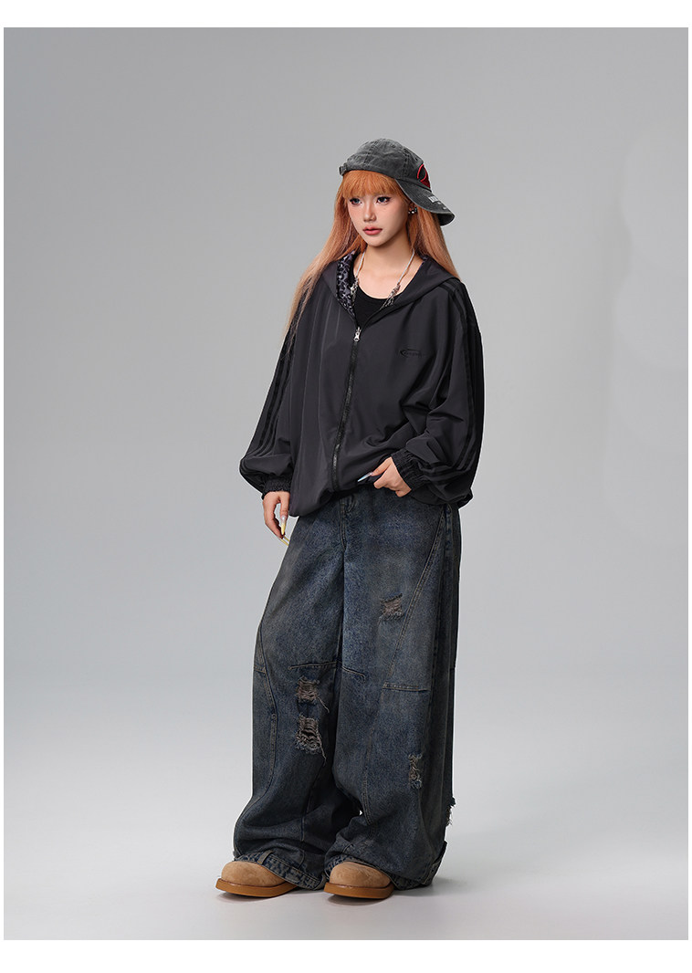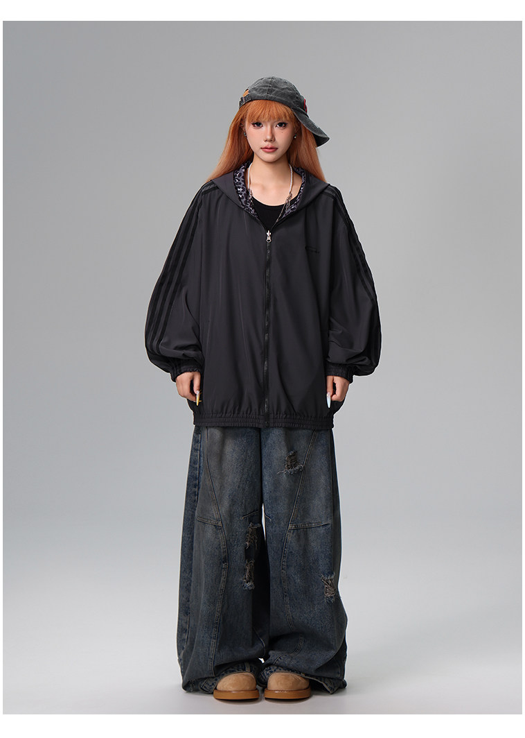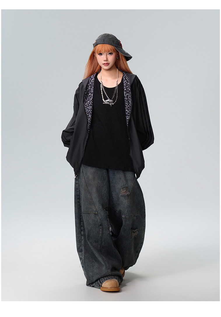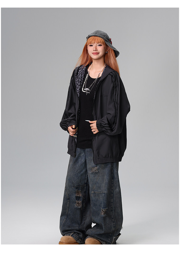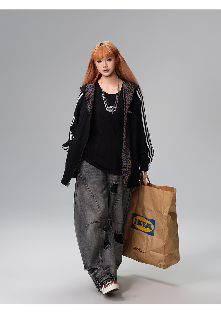 Free Center Reversible American Retro Leopard Print Jacket for Men and Women, Loose Hooded Casual Coat, Autumn Top