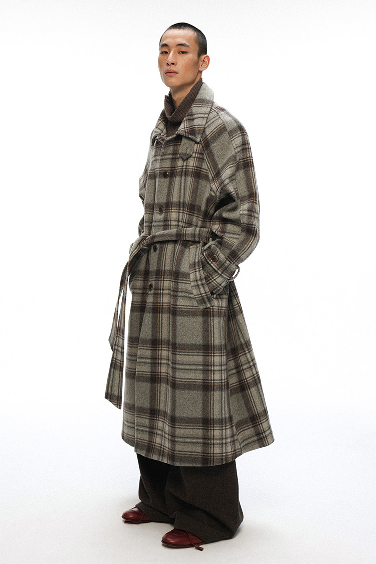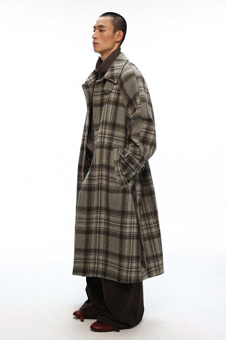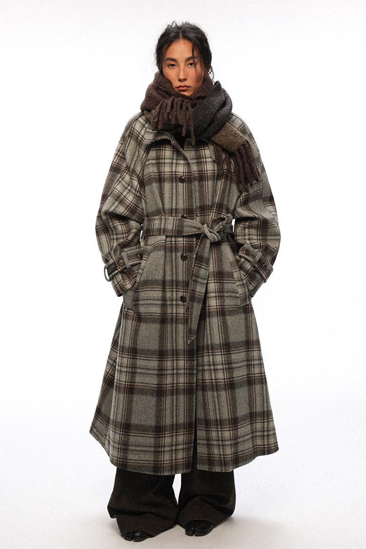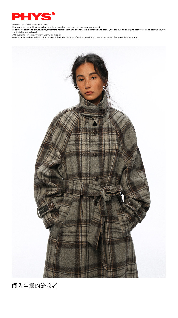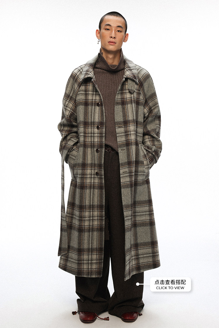 [Offline Same Style] Physics Boy "City Frostfall" Wool Vintage Plaid Raglan Square Collar Woolen Coat