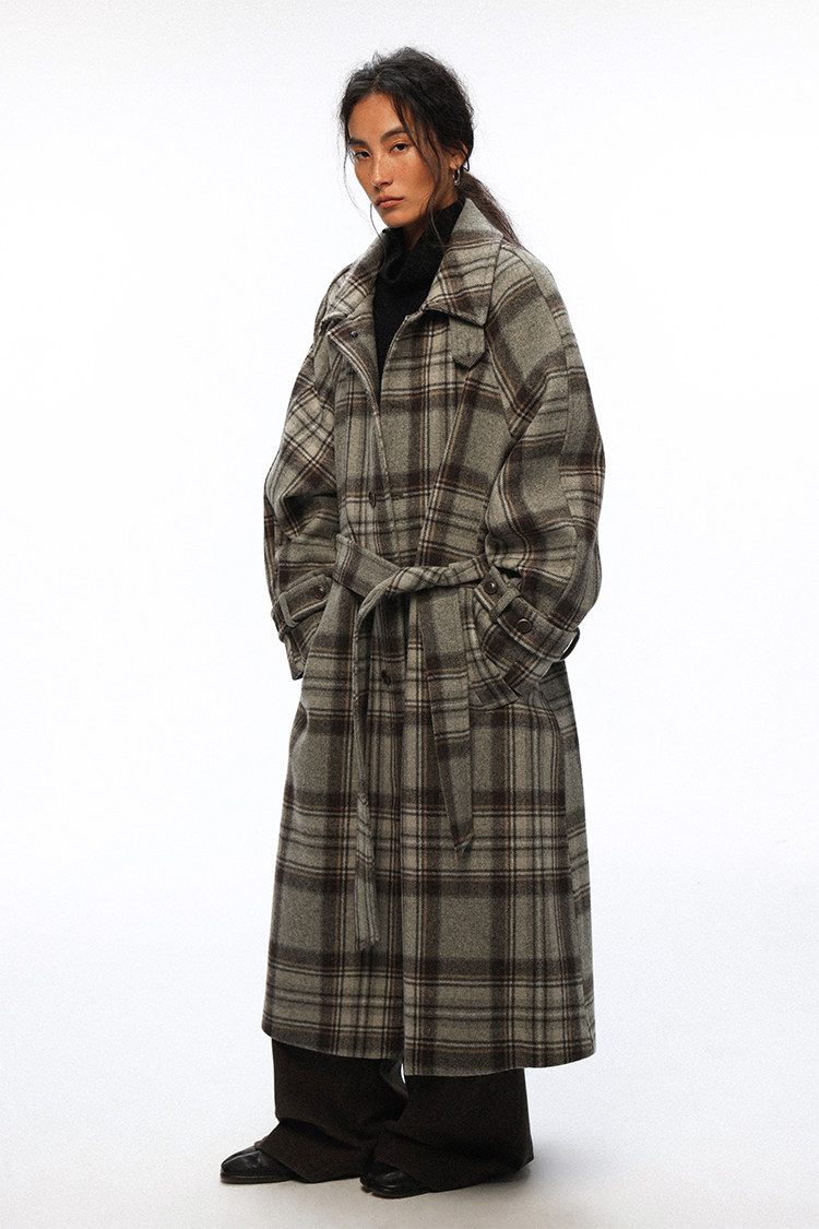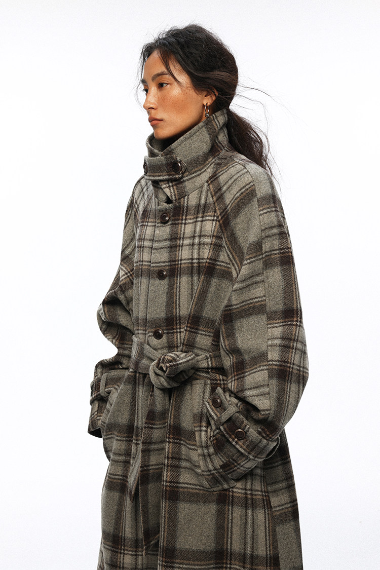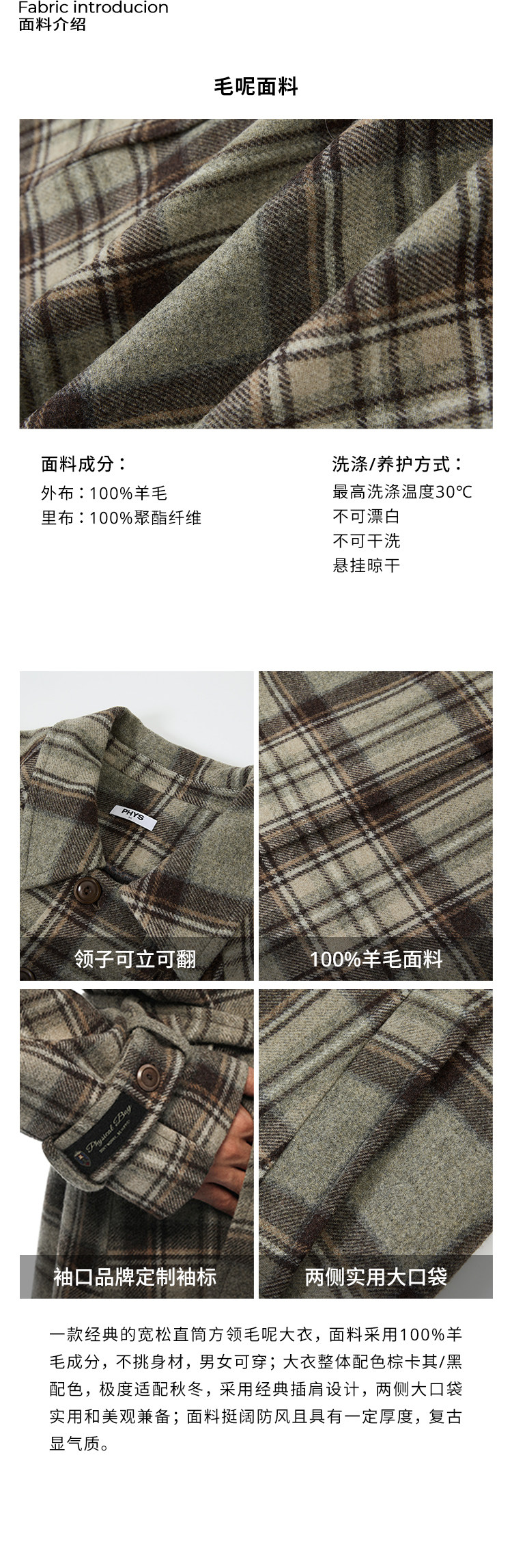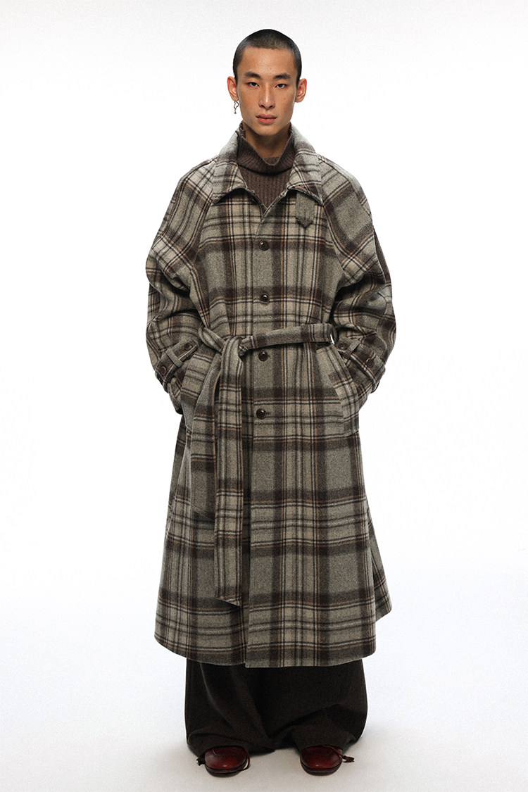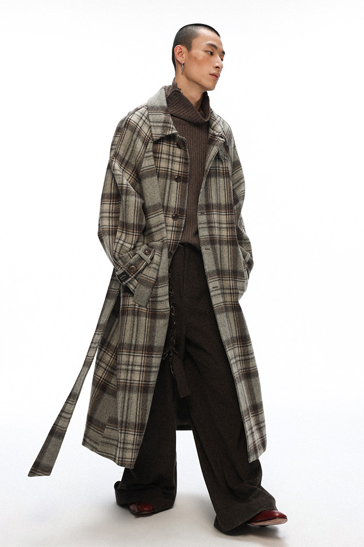 [Offline Same Style] Physics Boy "City Frostfall" Wool Vintage Plaid Raglan Square Collar Woolen Coat