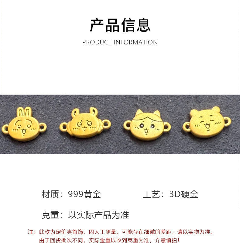 999 Pure Gold Usagi Hand Brand Gold Chiikawa Small Flying Squirrel Brand Bracelet for Gift Giving