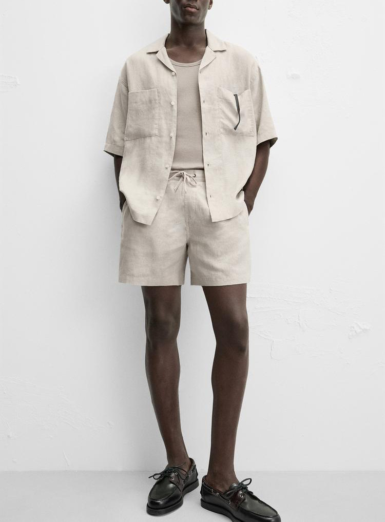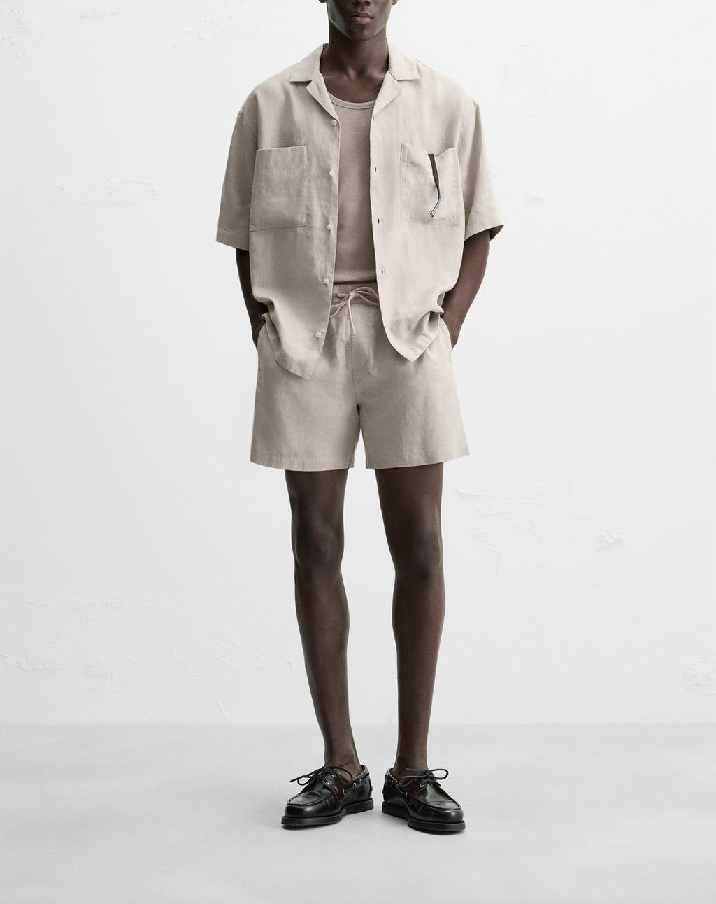 Spring New Men's Drawstring Casual Shorts 1618307 Pocket-Decorated Short-Sleeved Shirt 1618306