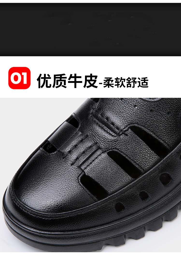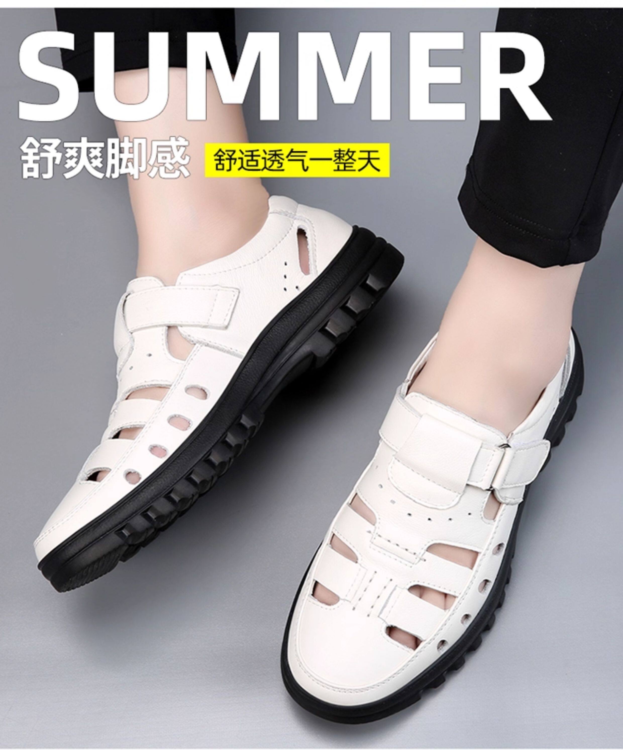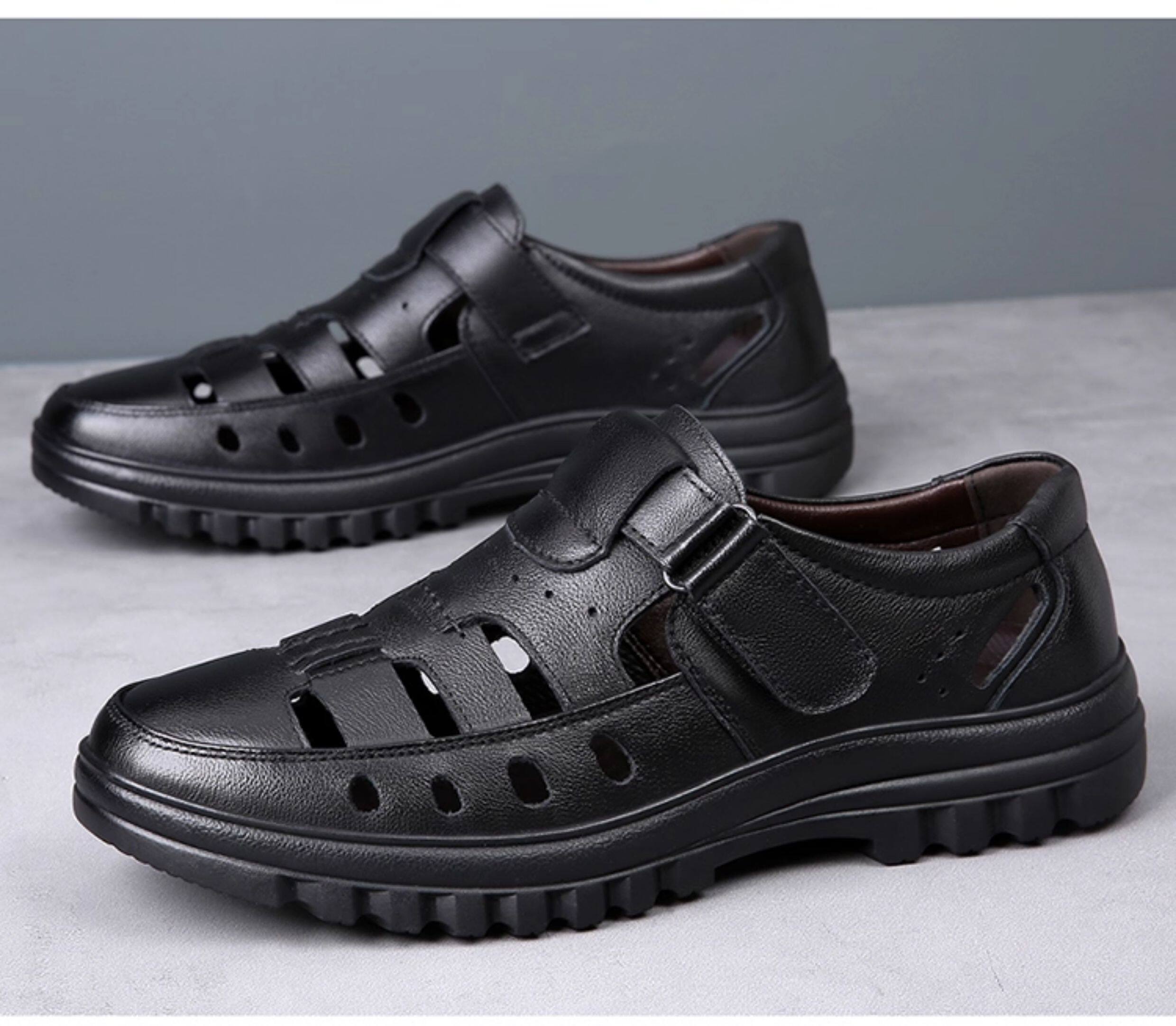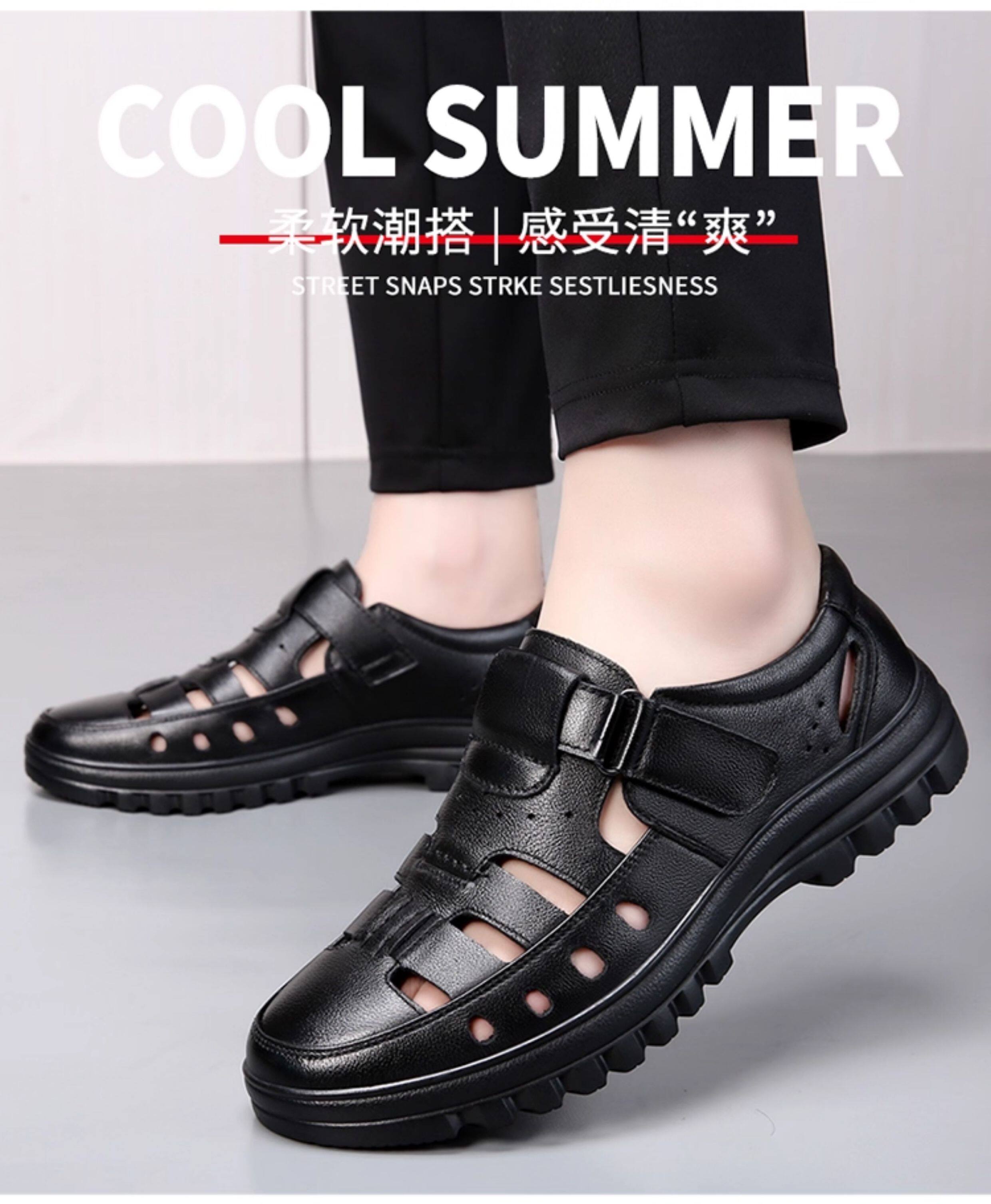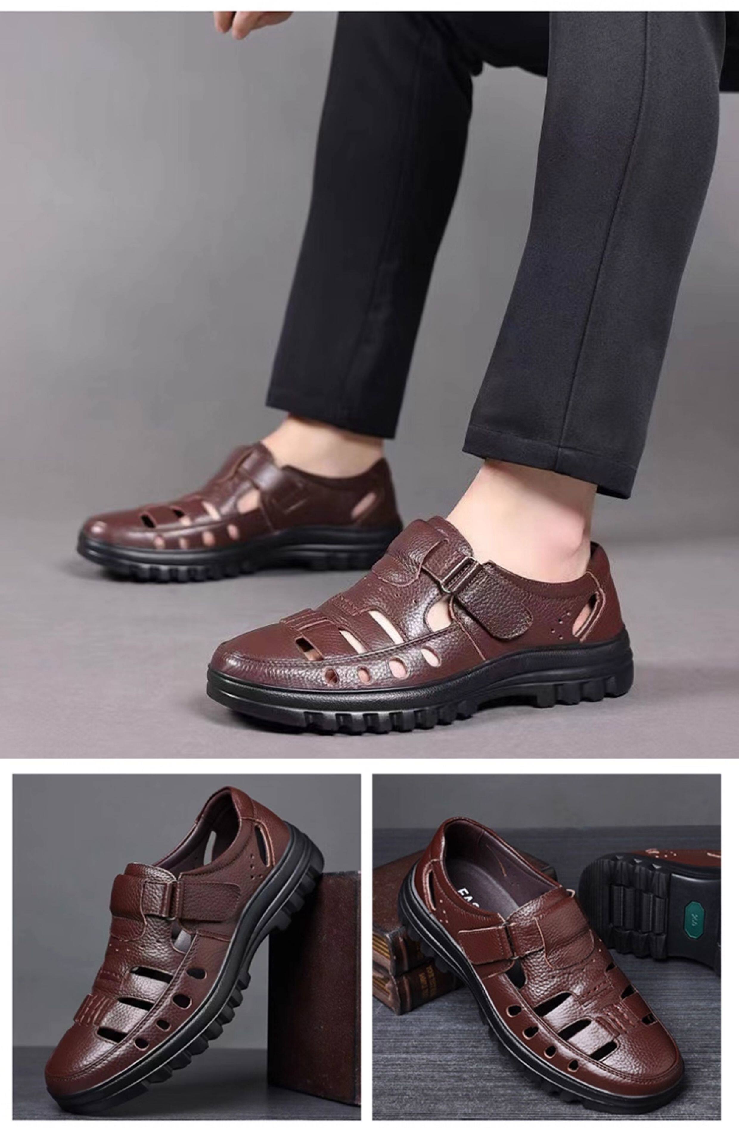 2025 Summer Genuine Leather Breathable Sandals Men's Casual Shoes Hollow Hole Shoes Non-Slip Dad Shoes Sandals