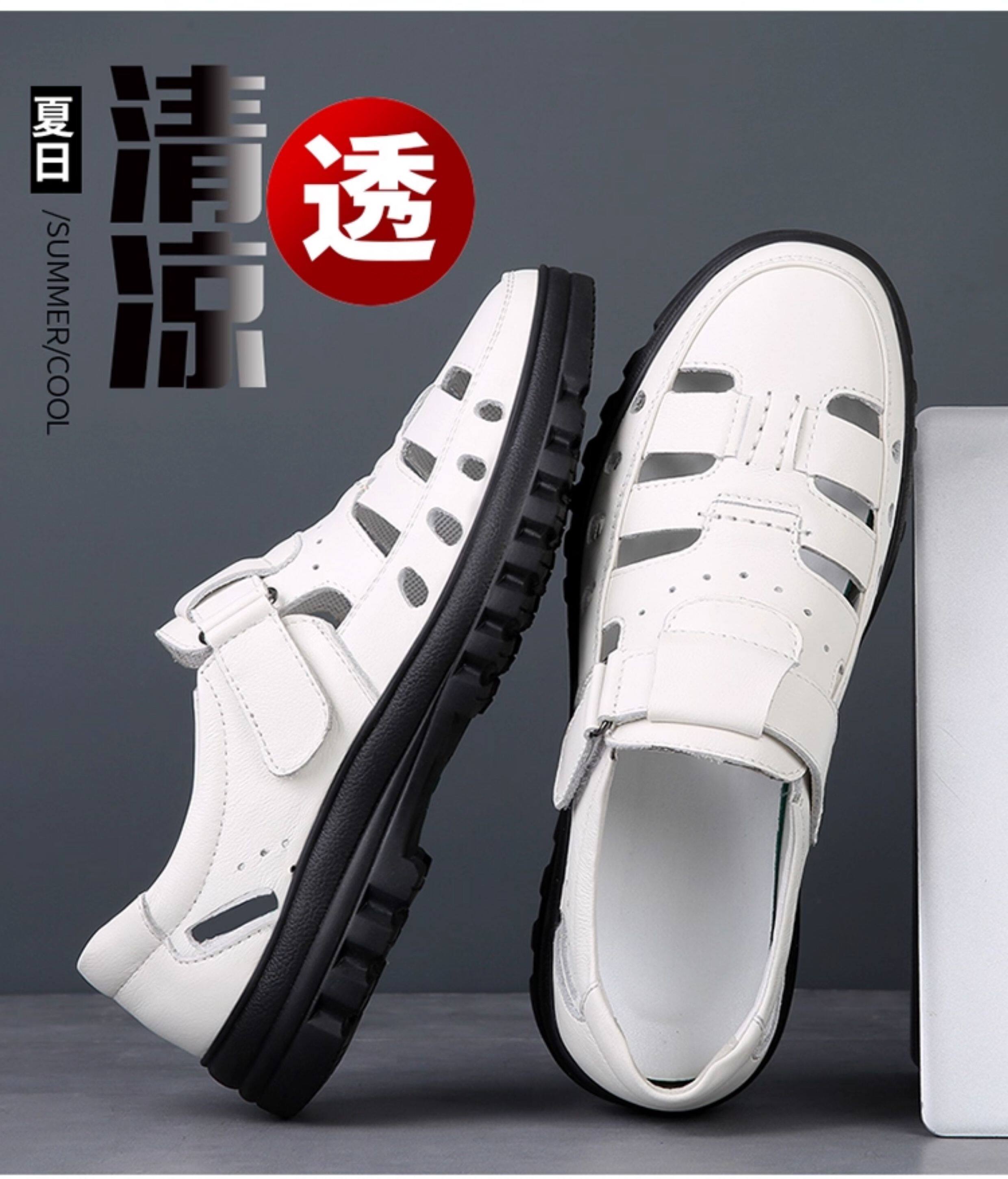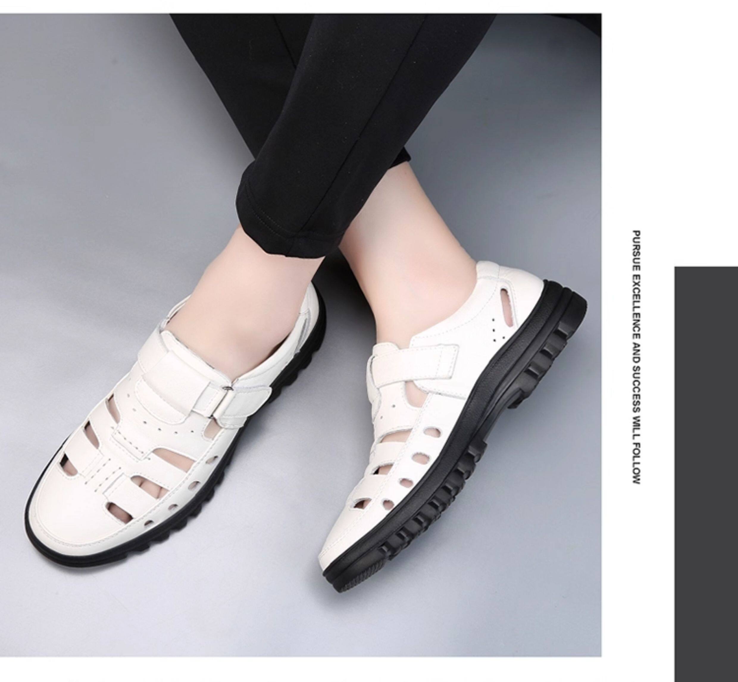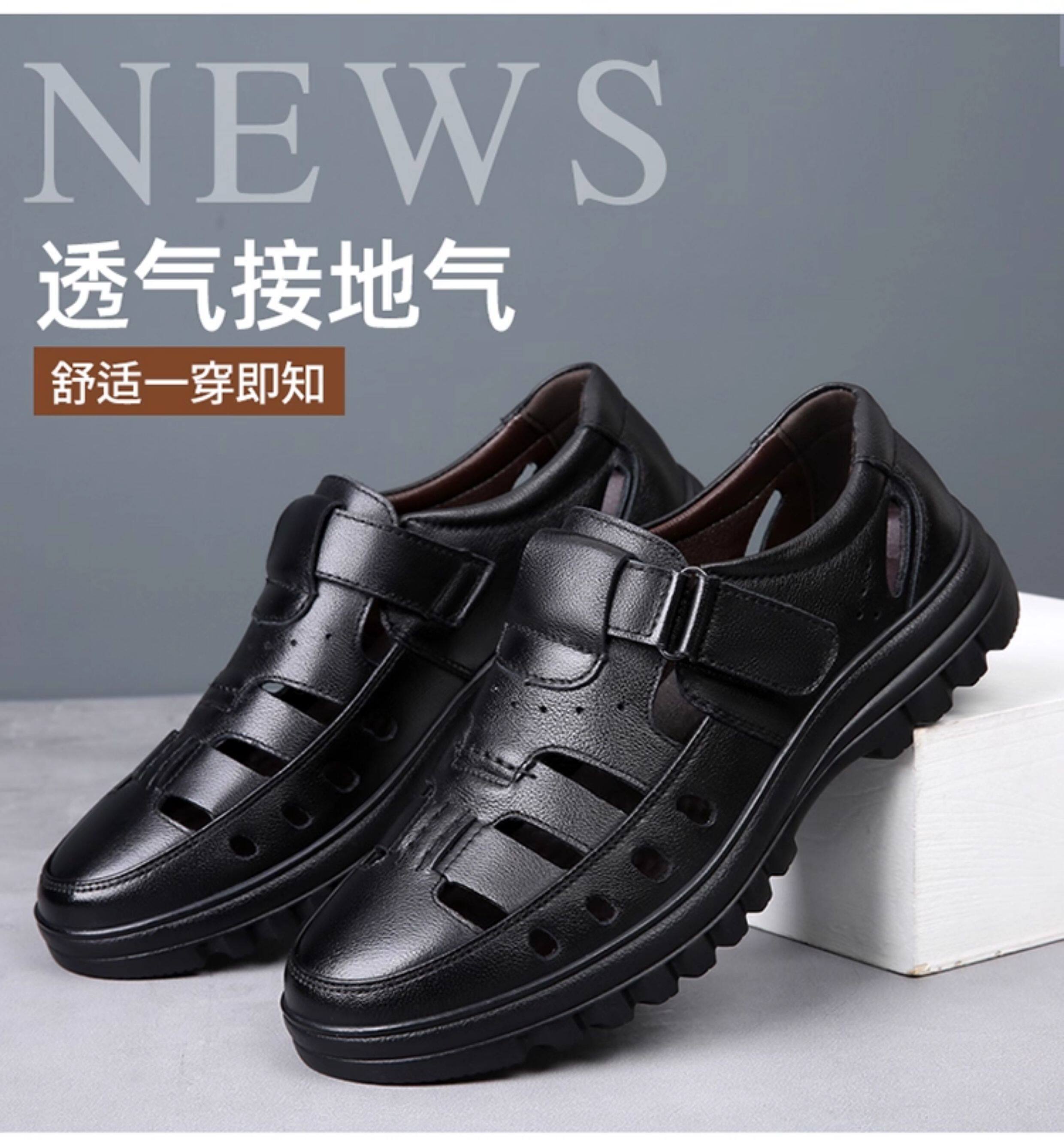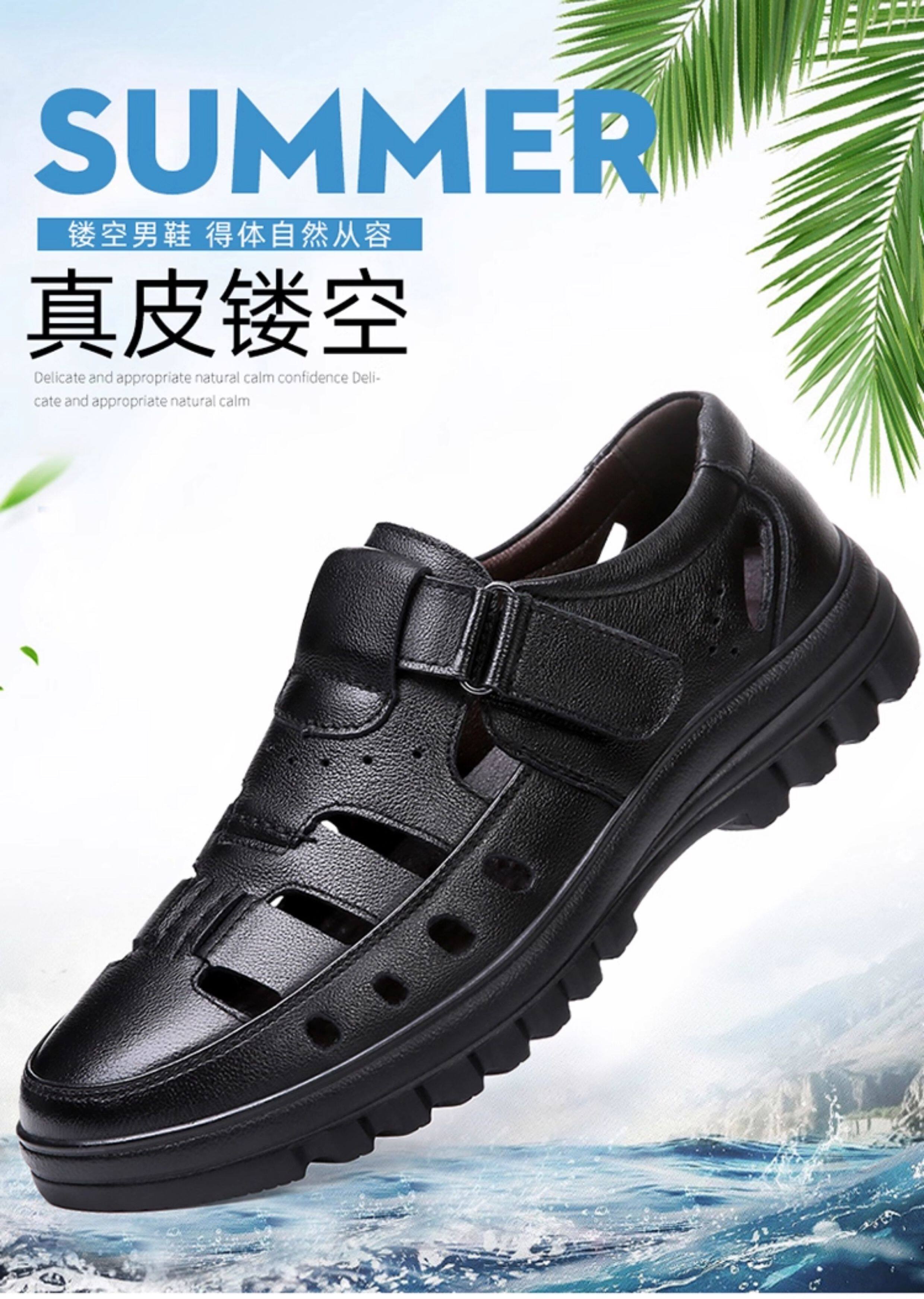 2025 Summer Genuine Leather Breathable Sandals Men's Casual Shoes Hollow Hole Shoes Non-Slip Dad Shoes Sandals